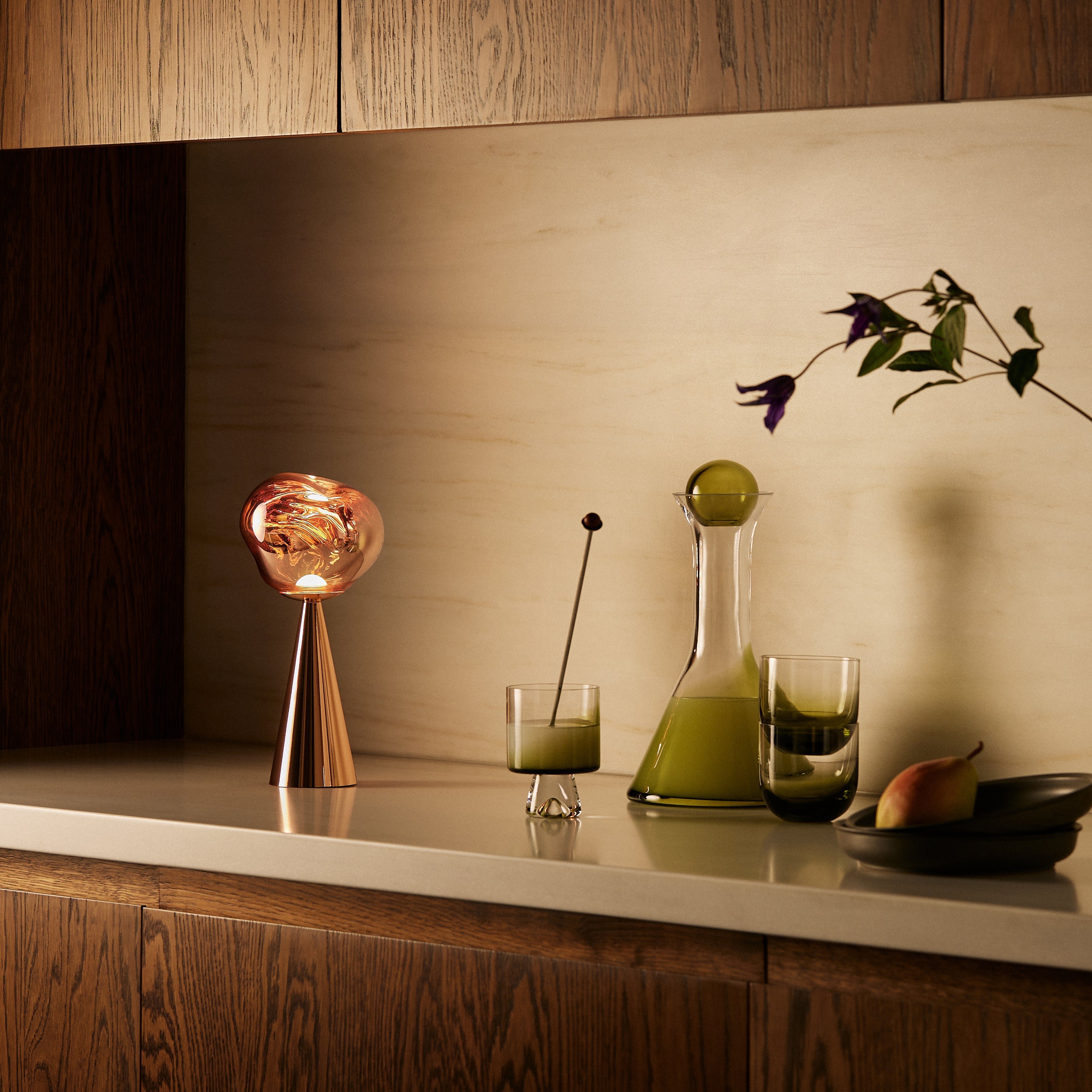 A powerful battery and an energy-efficient LED lend go-anywhere portability to Tom Dixon’s signature Melt, true to the series’ mesmerizing molten-glass effect. For desk, tabletop or even outside to the garden or patio, the lamp brings a diffused glow that lasts up to 10 hours per battery charge—while its sleek range of metallic or black finishes adds extra verve.