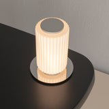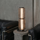 In single or double-stacked vertical segments of machine mold-blown glass cylinders, the smaller-diameter Column 175 ascends from a polished stainless-steel table base. The choice of a transparent carbon or opaque ivory finish alternately reveals the inner workings or conceals them in Lukas Peet's masterful play on a Grecian column as it softly diffuses the light.