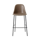 The customized luxury of Harbour's upholstered bar and counter models also comes in a side chair version in leather or a premium fabric. The molded shell seat is scaled for more compact spaces while providing ergonomically inclined comfort and the slim steel base has an integrated footrest at just the right height.