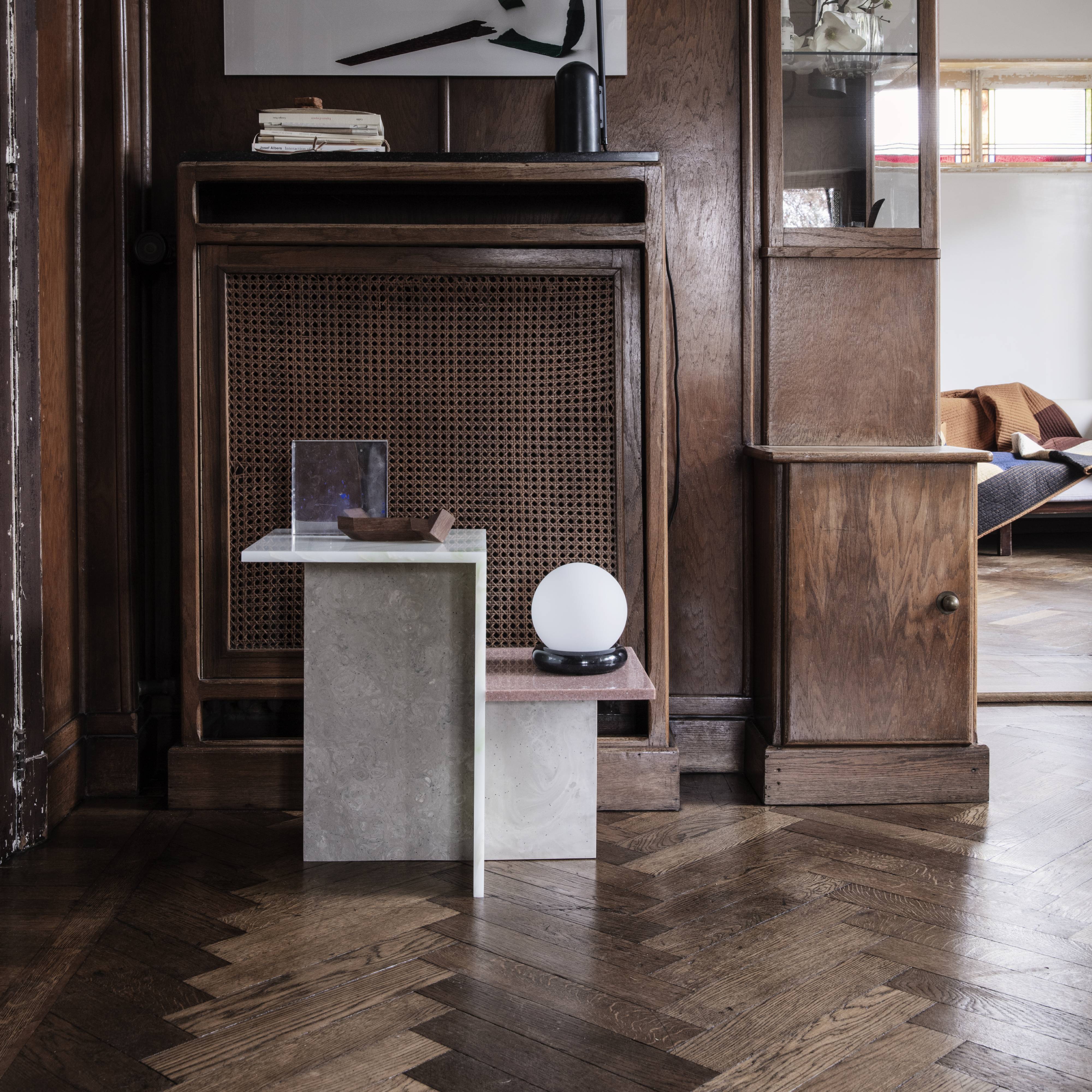 Japanese-style minimalism inspired this constructivist take on a side table from Copenhagen's Ferm Living. Flat planes fashioned in luminous acrylic stone in different but harmonious shadings play off one another in a geometric composition. Definitely a conversation piece, it's also a versatile furnishing with its varied table heights.