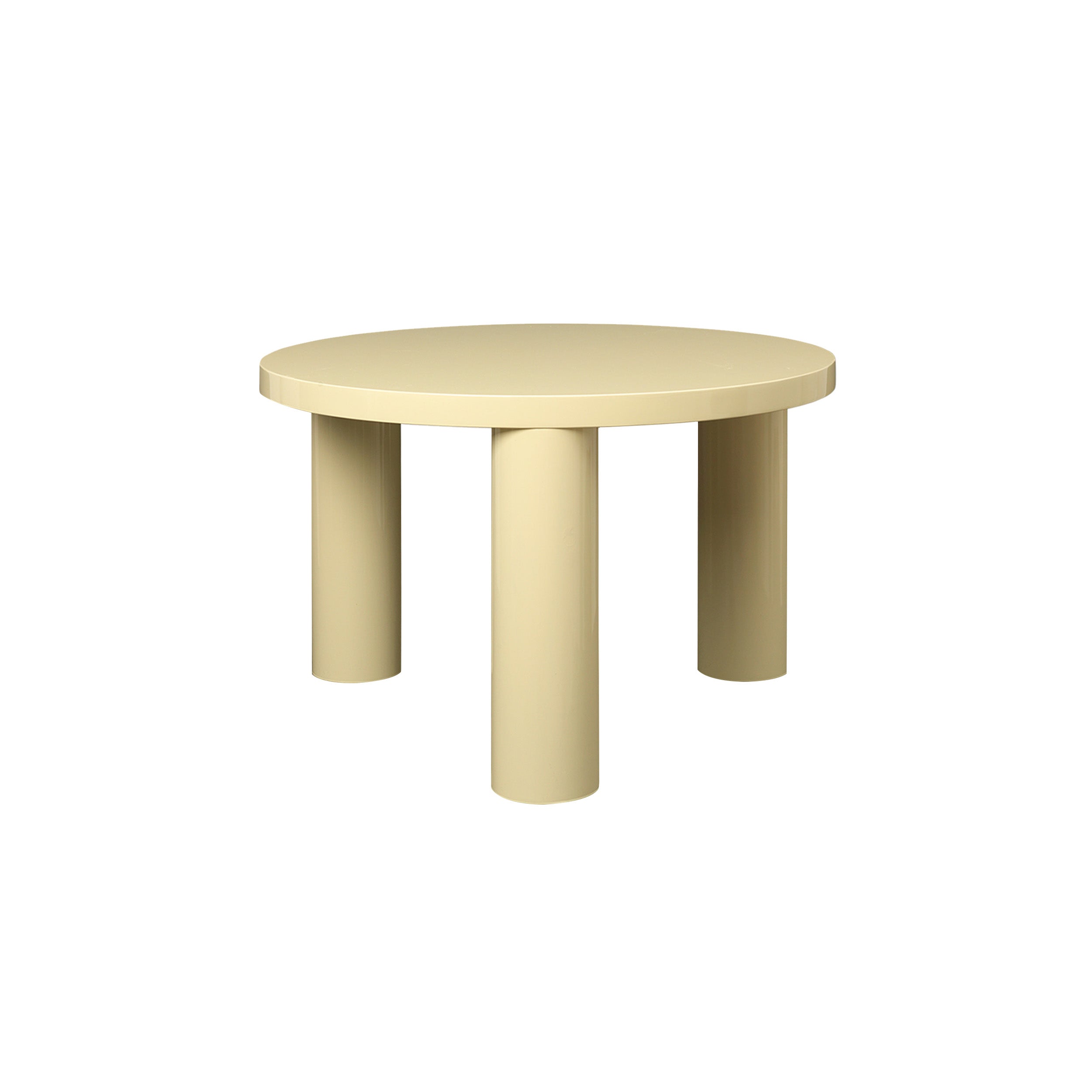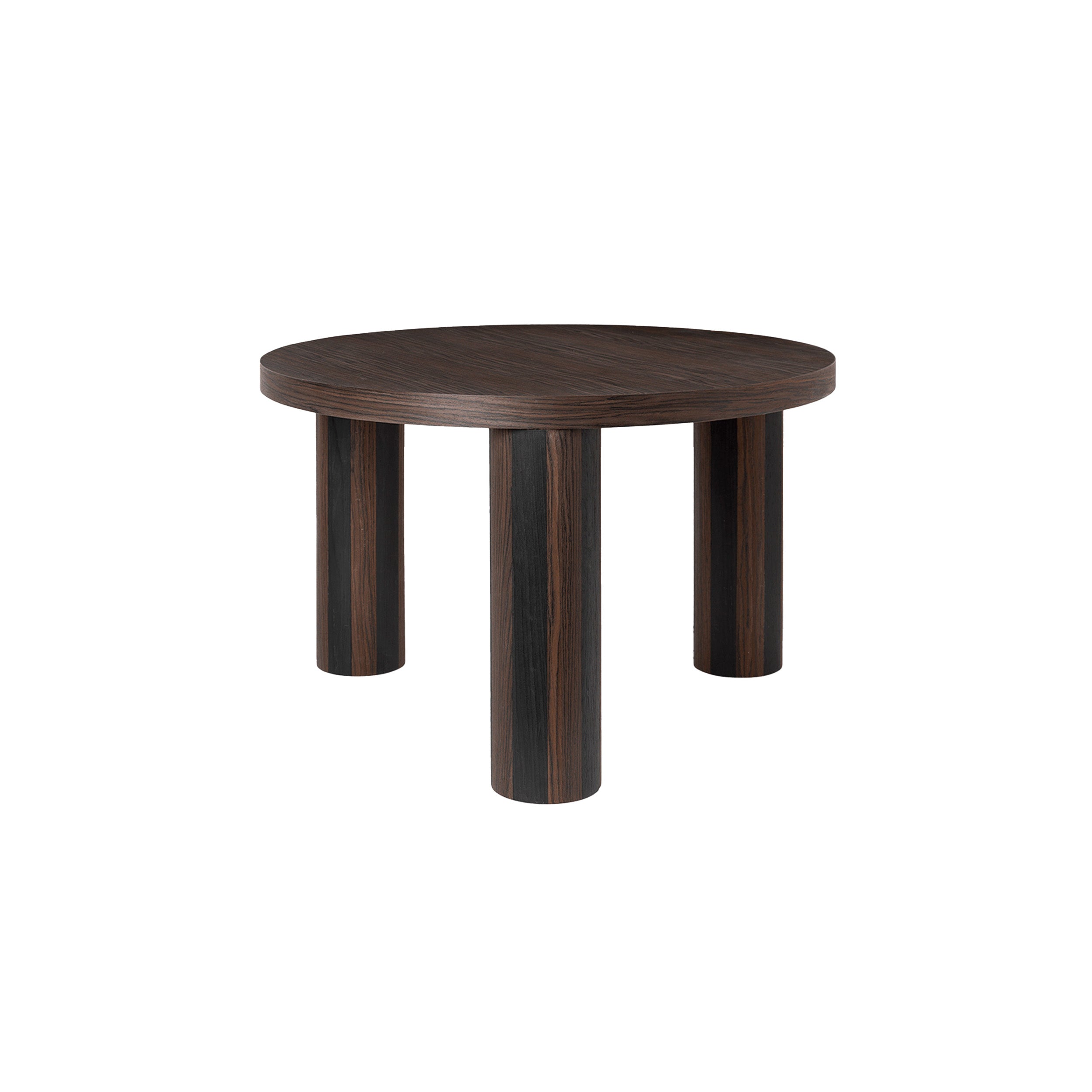 The legacy of Brutalist architecture meets Scandinavian refinement in Ferm Living's solidly proportioned wood coffee table tempered with intricate detailing. Sustainably crafted from FSC-certified timber, Post has three robust cylindrical legs and is embellished with hand-assembled inlaid marquetry. The smaller, higher model features a tabletop with a starburst pattern in spherical sectors while the larger, lower table has striped veneer marquetry legs. Each one is striking on also its own or they can be grouped in an impressive pairing.