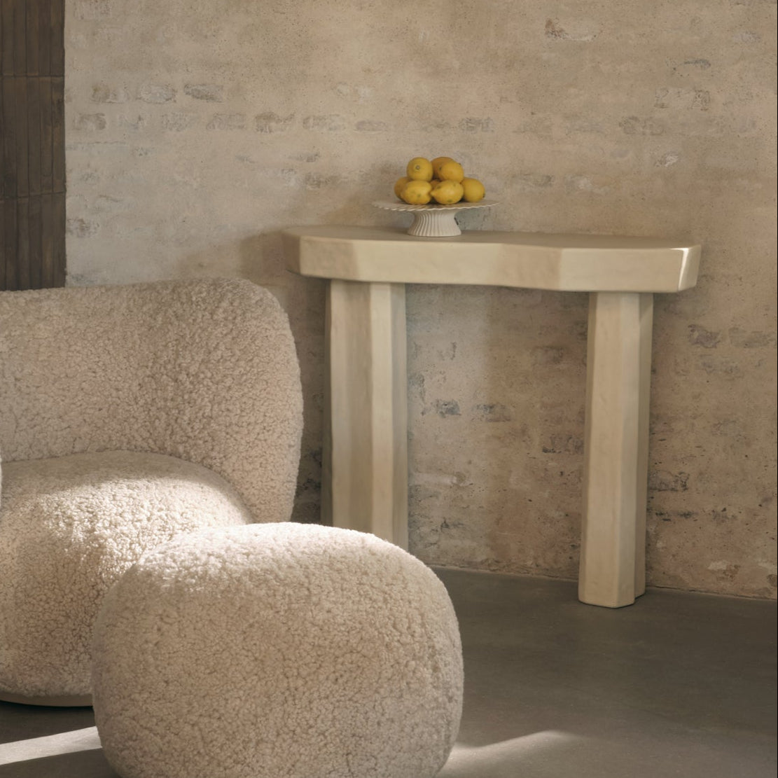 The Staffa Console Table draws inspiration from the unique volcanic rock formations of Scotland's Staffa Island. Crafted entirely from glass fiber-reinforced concrete, each piece undergoes an innovative casting process, resulting in a rugged, uneven shape that mirrors carved stone blocks. This robust construction makes the table suitable for both indoor and outdoor use, enhancing entryways, hallways, or outdoor spaces with its sculptural presence.