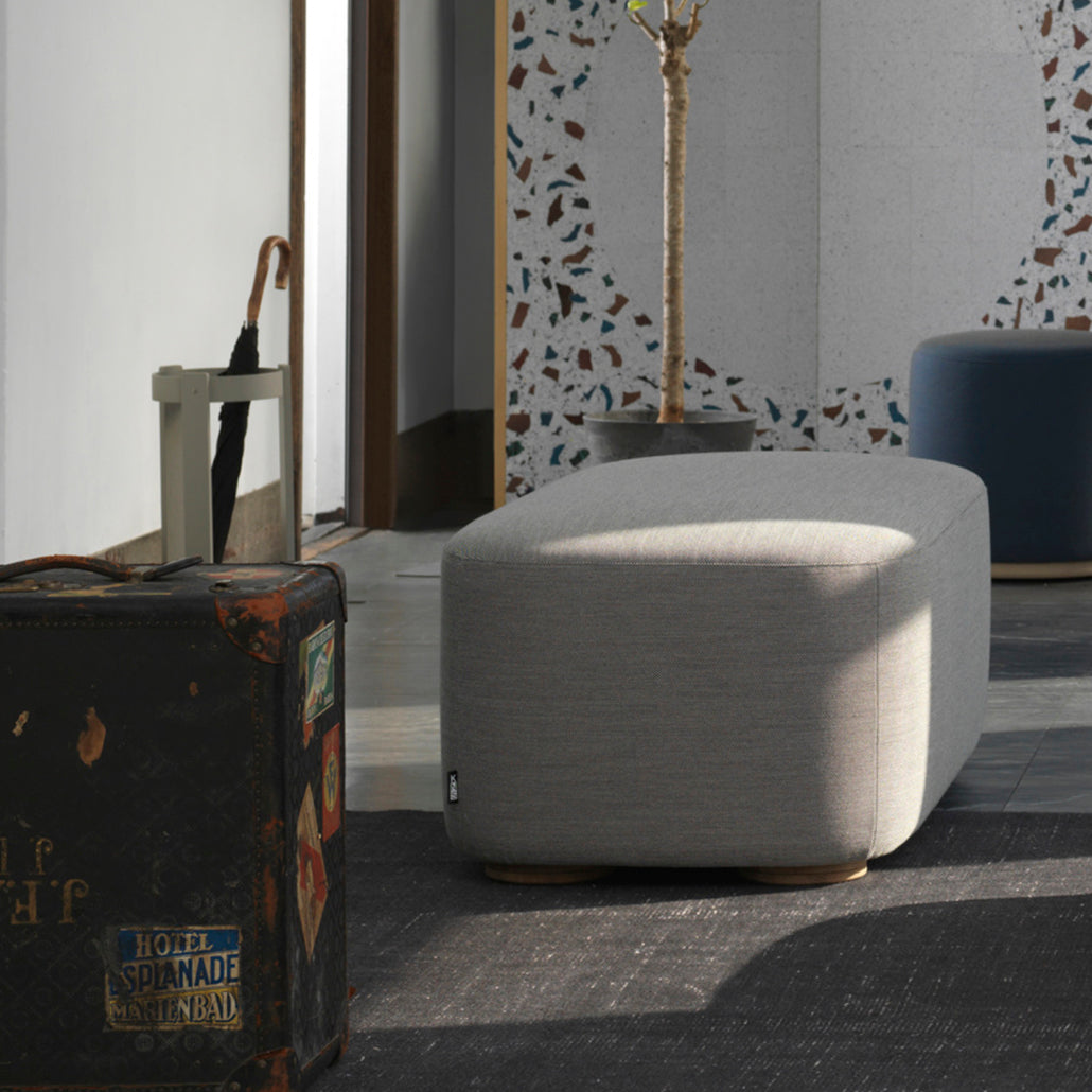 The Lounge Bench is a seating option defined by its smooth, rounded form. It is crafted to suit a range of environments, such as waiting areas, co-working spaces, museums, and shops. The bench features a slightly higher seat, promoting a more upright posture compared to the lower Polar Lounge Island.