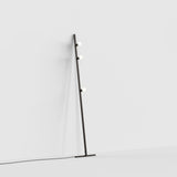 In the floor version, Lambert & Fils styles its linear Dot to lean against a wall, supported by an inverted T-shaped base. The slender lamp features exposed milk glass globes that provide an ordered sequence of gently diffused LED points of light. With a choice of brass or graphite finish, it’s completely handcrafted at the lighting maker’s Montreal atelier.