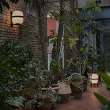 Cesta—Spanish for “basket”—with its similarly ring-shaped structure wrapping around an opal glass globe, adapts in a wall lamp that shares the same sense of offhand elegance. Miguel Milá’s iconic 1962 design, inspired by an impromptu find in the streets of Barcelona, is supported by a metal ring in matte white or black and can be used indoors or out. From its industrial origins, Cesta has become a modernist classic that provides a wonderfully diffuse and atmospheric illumination.