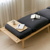 More than aptly named, Lounge Around is a handsome multifunctional daybed that's the perfect place to lie back, relax and recharge. Soren Ravn Christensen delivers a clean-lined frame in solid oak and laminated veneer with brass-plated steel accents, topped with a full-length upholstered cushion. Scaled for compact living, the daybed also beckons for an afternoon nap or even as sleeping quarters when guests come to stay. Lounge Around also features add-on creature comforts including an optional light stand, magazine rack, small table and a side pillow.