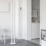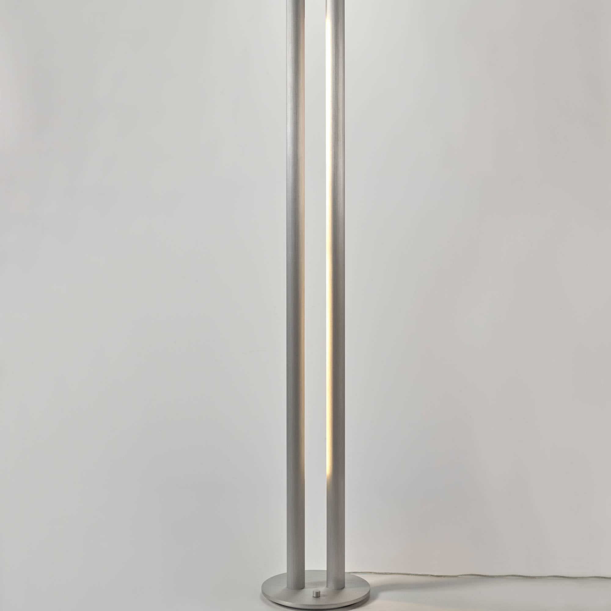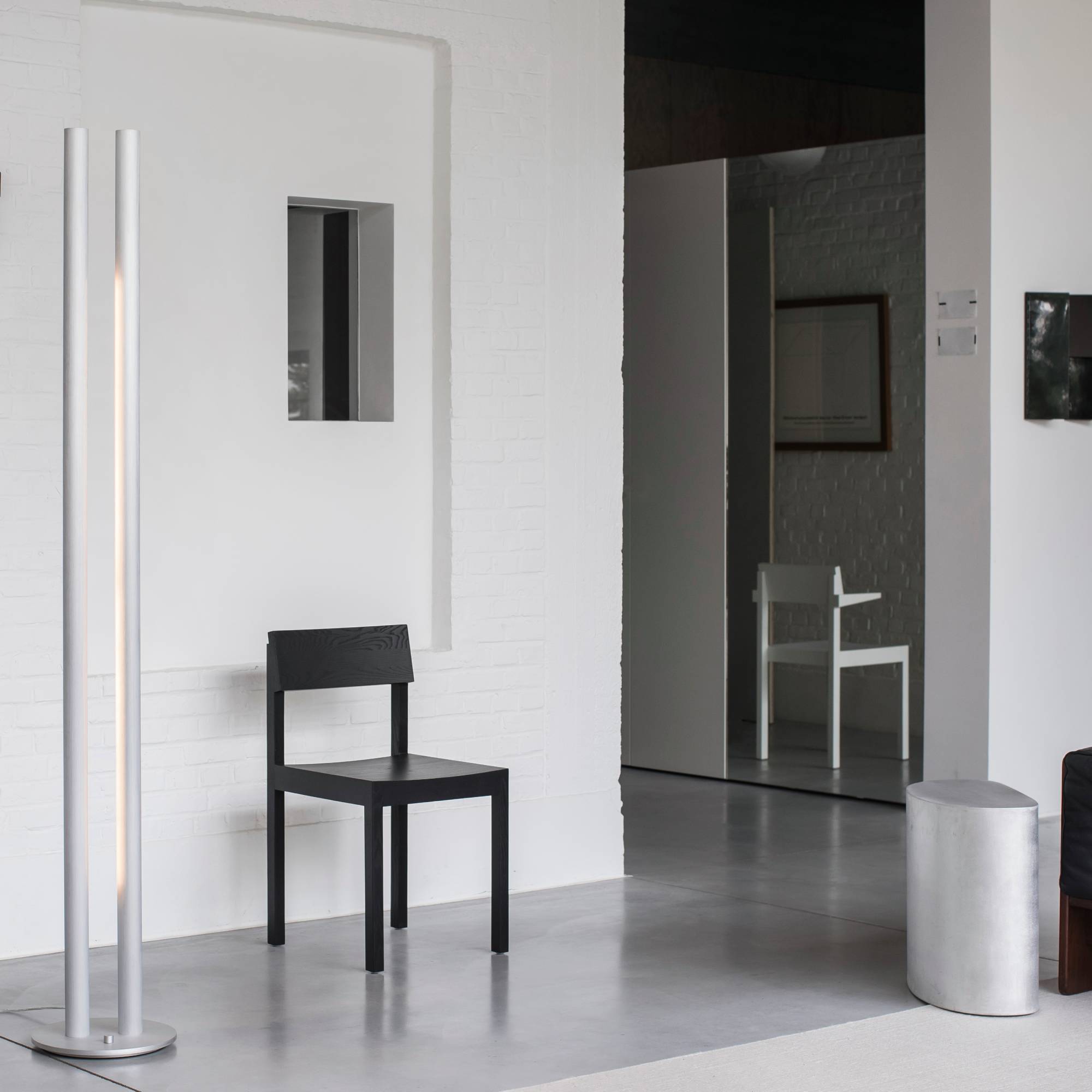 Young Belgian designer-architect Pierric de Coster is a minimalist deep in his heart, as seen in L1, his striking floor lamp for Valerie Objects composed of just 2 standing tubes. One cylinder sheds light on the other, which in turn reflects the light again—in sum, a vertical sculpture with a zephyr glow floating in the middle, created with an absolute minimum of means.