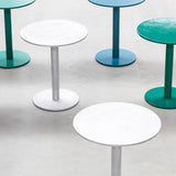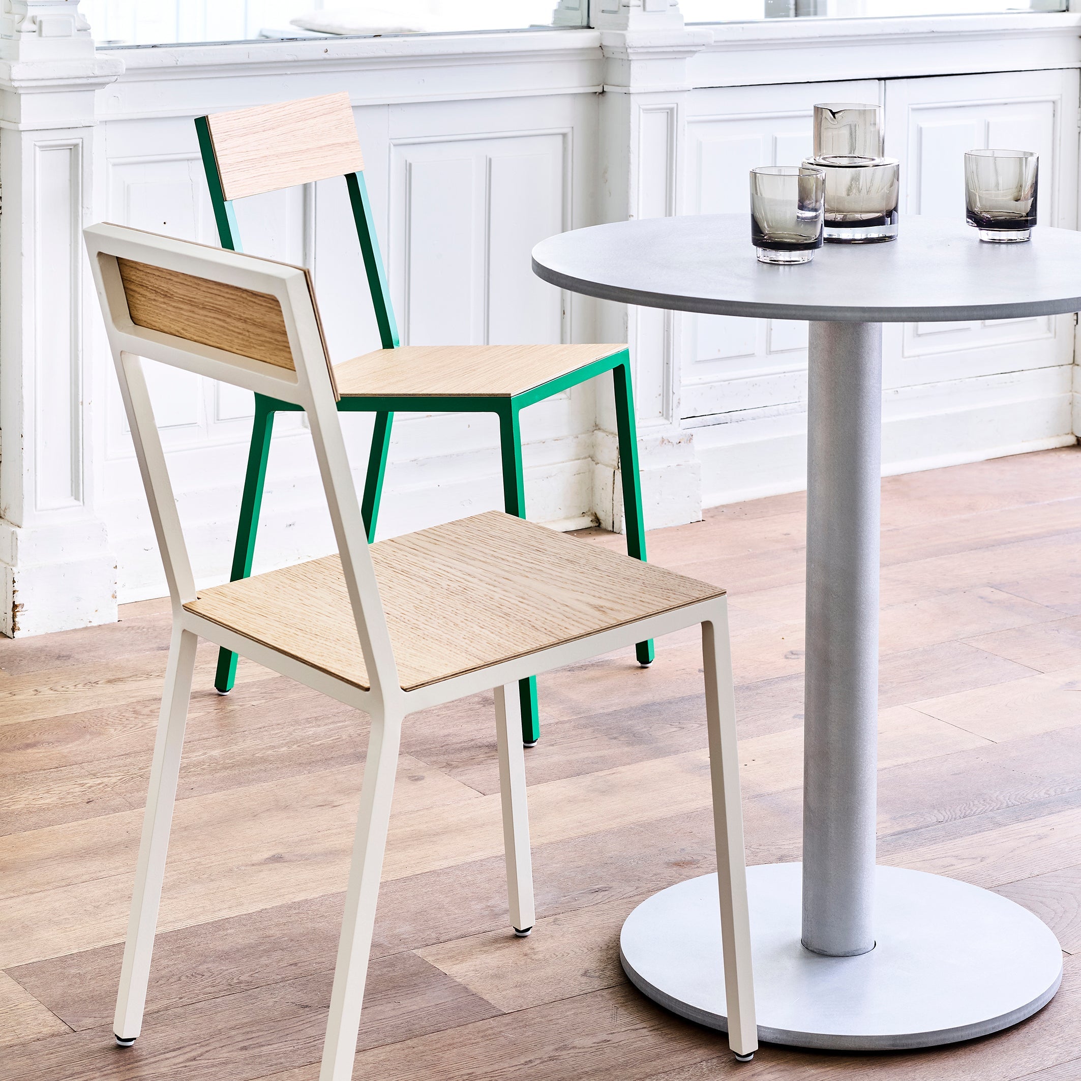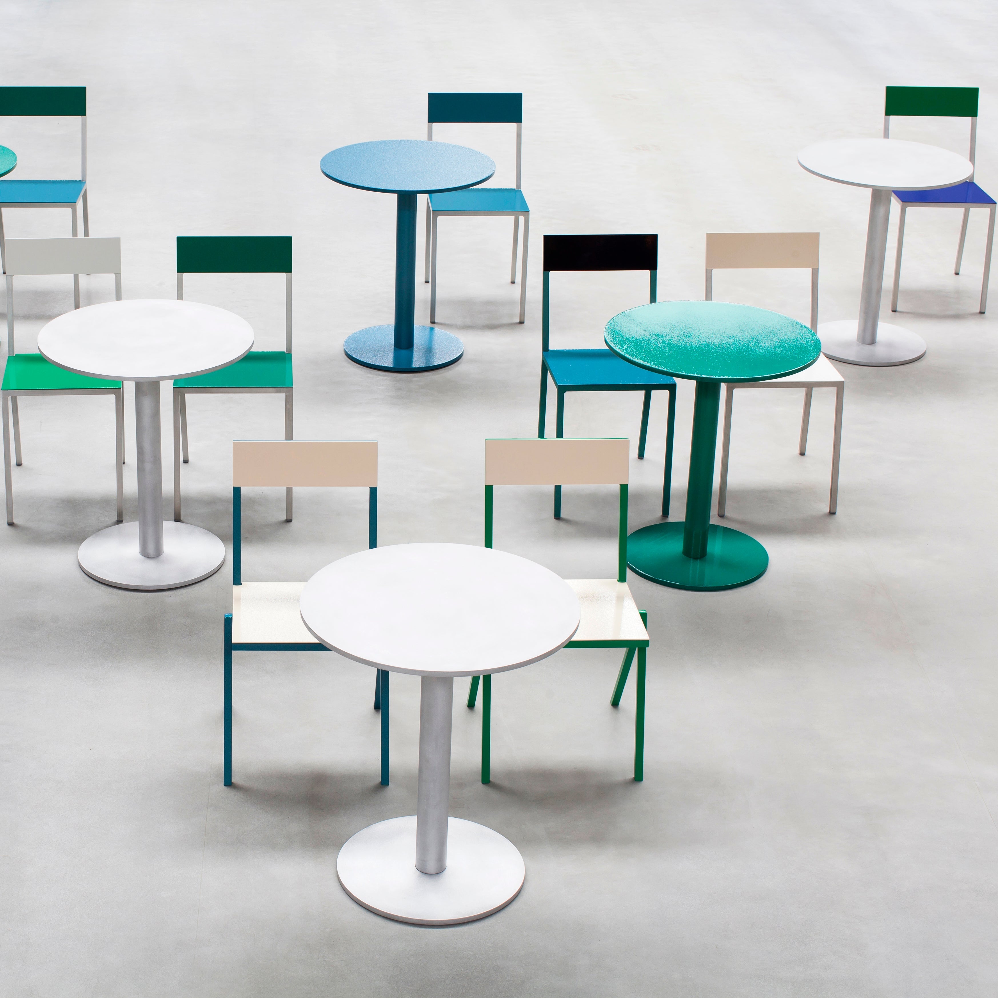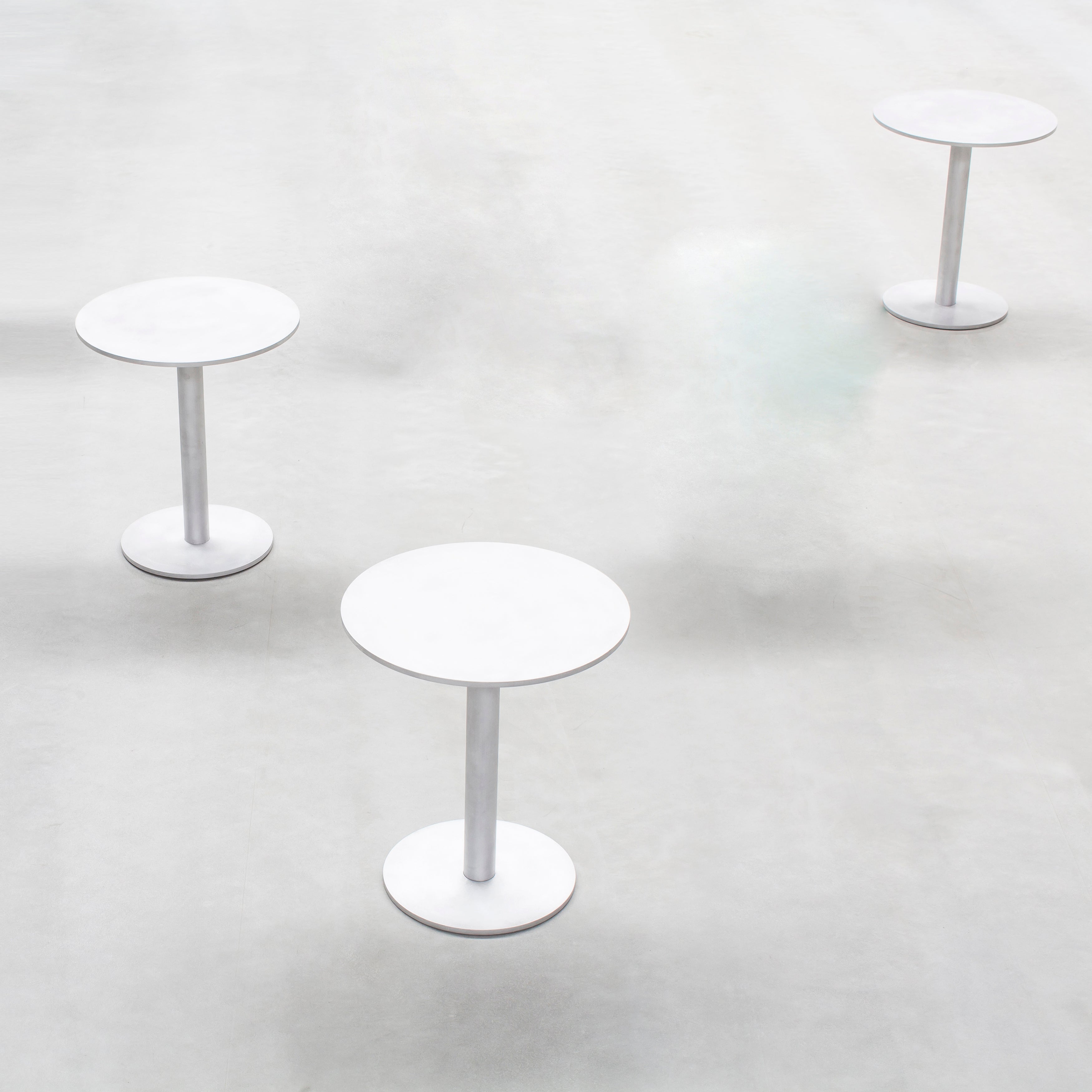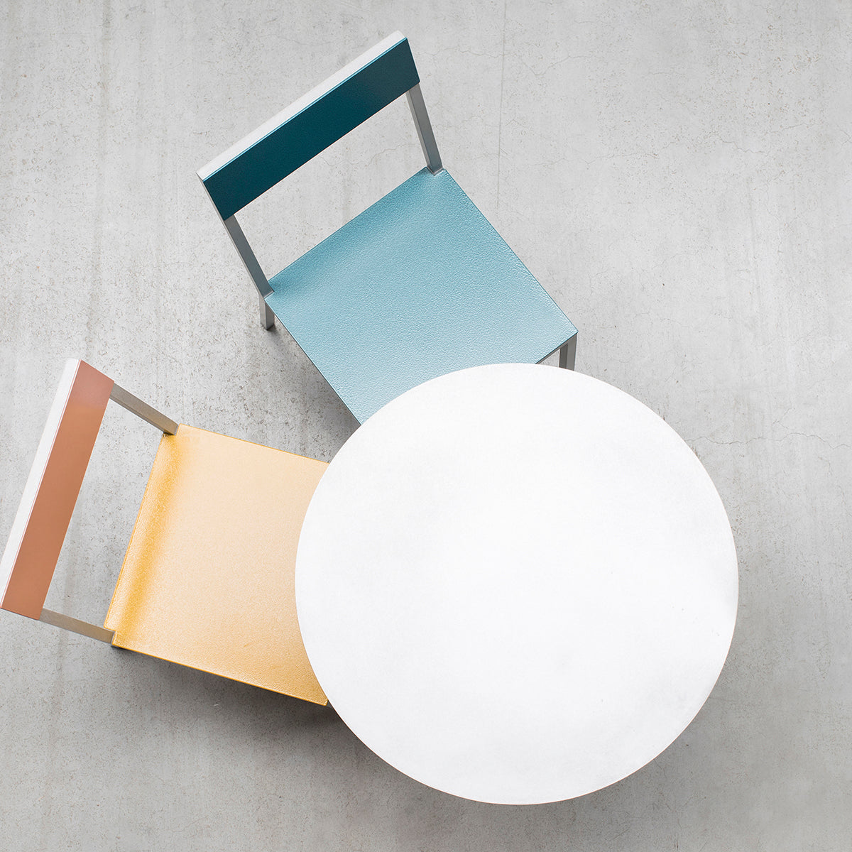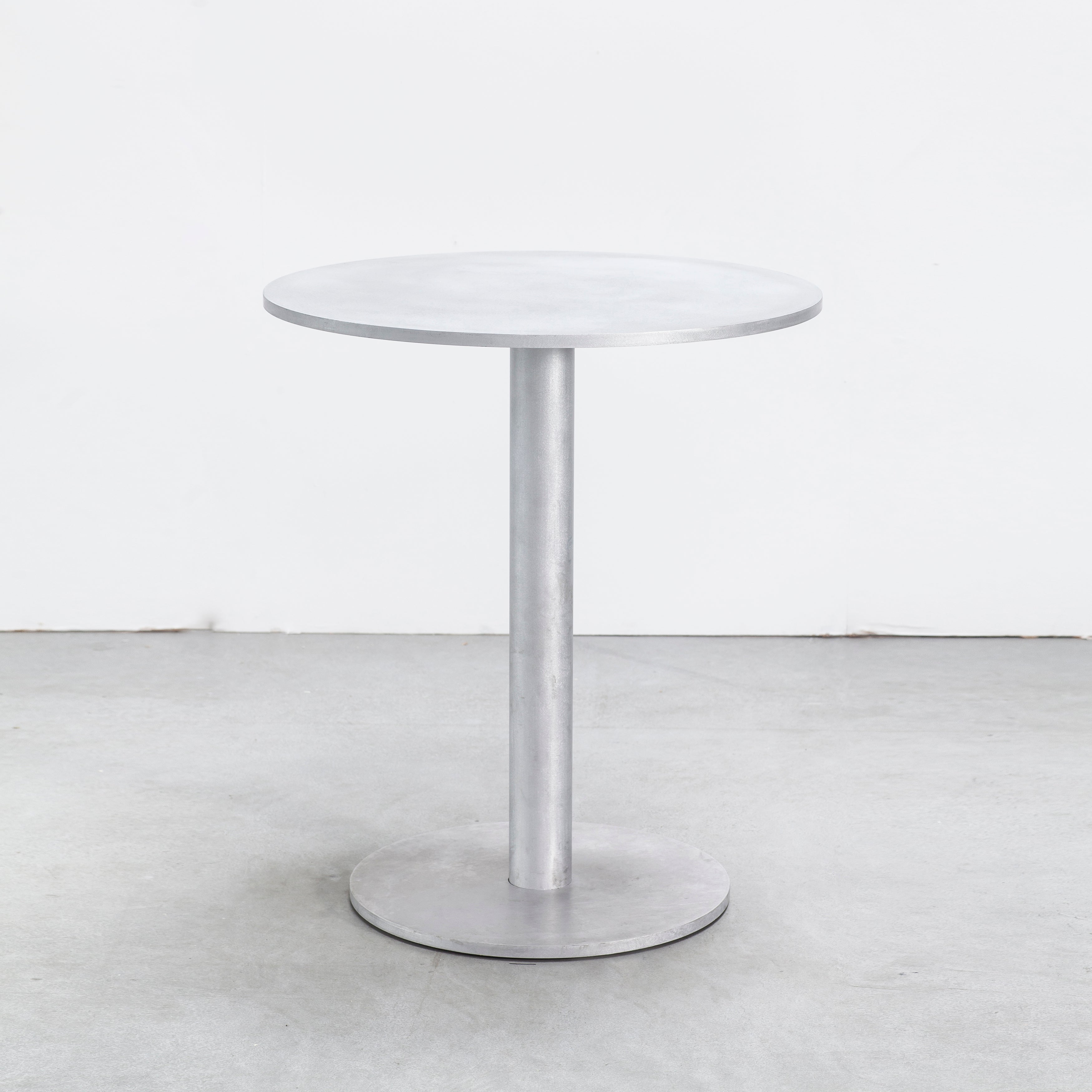 Minimalism depends on flawless craft and Muller Van Severen’s round table exhibits an unerring finish with no visible welds. Composed of just 2 circles and a tubular column, S is fitted with a solid-aluminum tabletop for an appealingly muscular presence. For use indoors or out, it’s lacquered with a hammered coating borrowed from industrial tools or a manually grinded surface protected with beeswax.