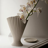 The Fountain Vase captivates with its sculptural form and soft, pleated design, reminiscent of classic fountains. Crafted from ceramic, it features a matte exterior and a glazed interior, making it ideal for displaying flowers or as a standalone decorative piece. Available in 2 sizes—small and large.