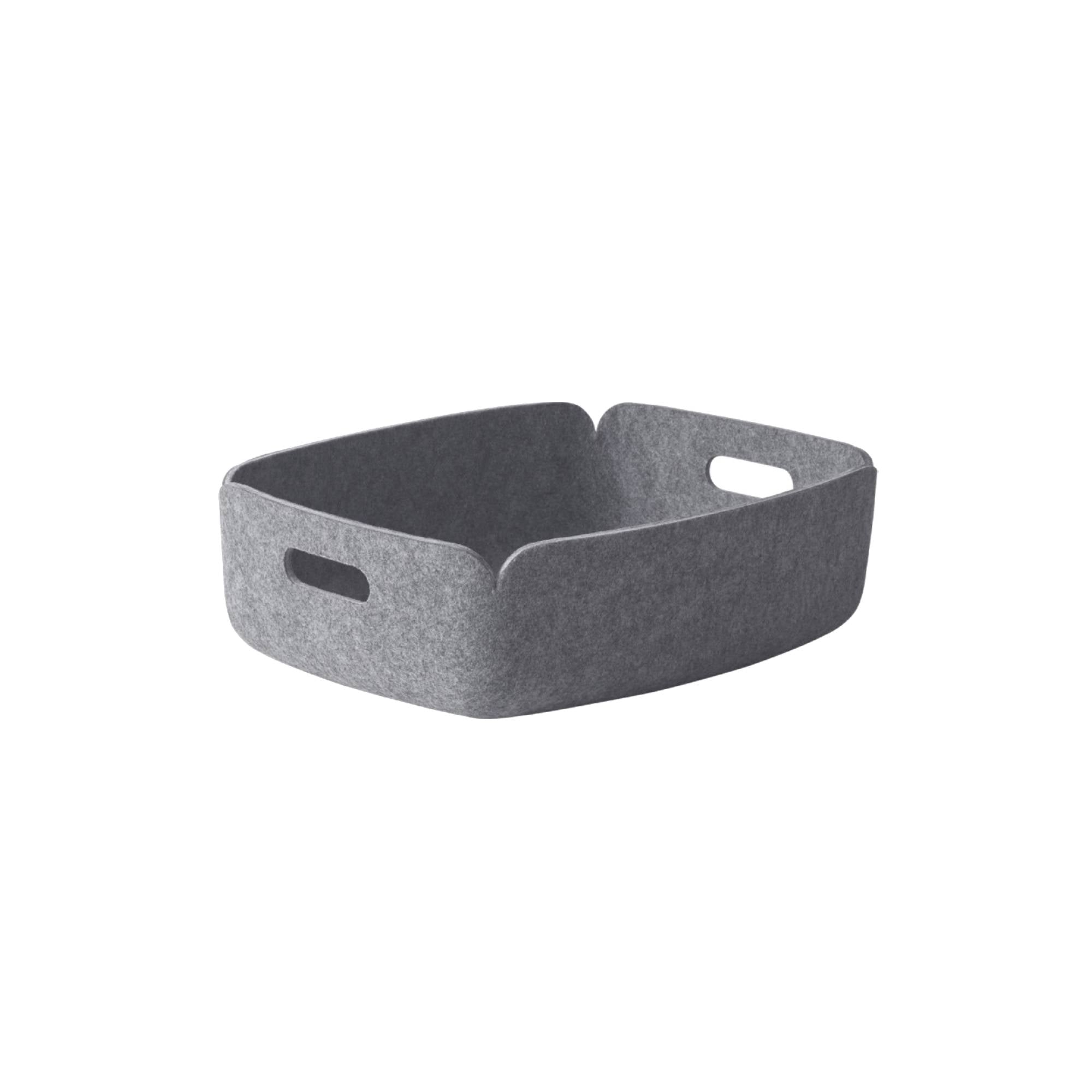 Restore a little order to things. Muuto's non-scratch felt tray, fabricated from recycled plastic bottles, expands the eco-friendly series made from PET material from Finnish designer Mika Tolvanen. Use it to hold books, magazines or electronics or to contain papers or miscellany on a table, shelf or desk. And its softly rounded, organic contours will fit in anywhere.
