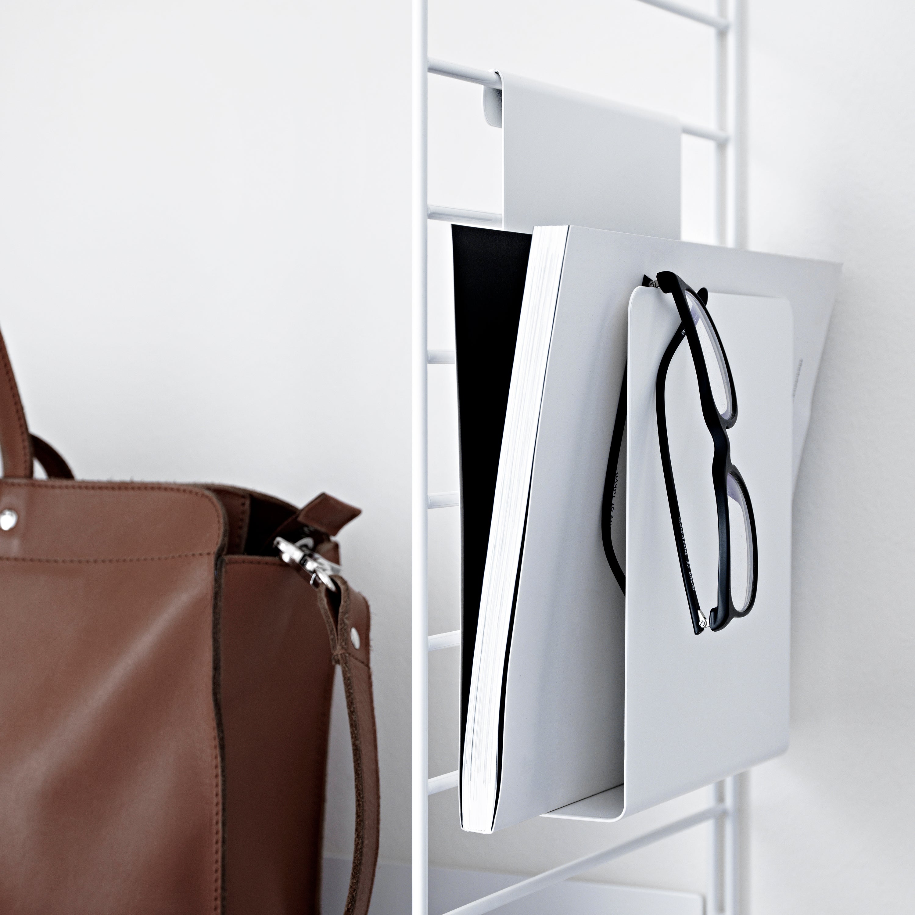 String's magazine holder accessory fits together with both the 20- and 30-cm-deep wire panels from the ever-versatile storage system. Add it to a kitchen setup to keep food magazines and recipes conveniently close at hand or use in a living room or hallway to stash books and magazines within easy reach when settling into a reading corner or alternatively heading out the door. With a clean-lined look, it's available in a choice of 3 powder-coated metal options.