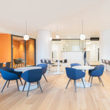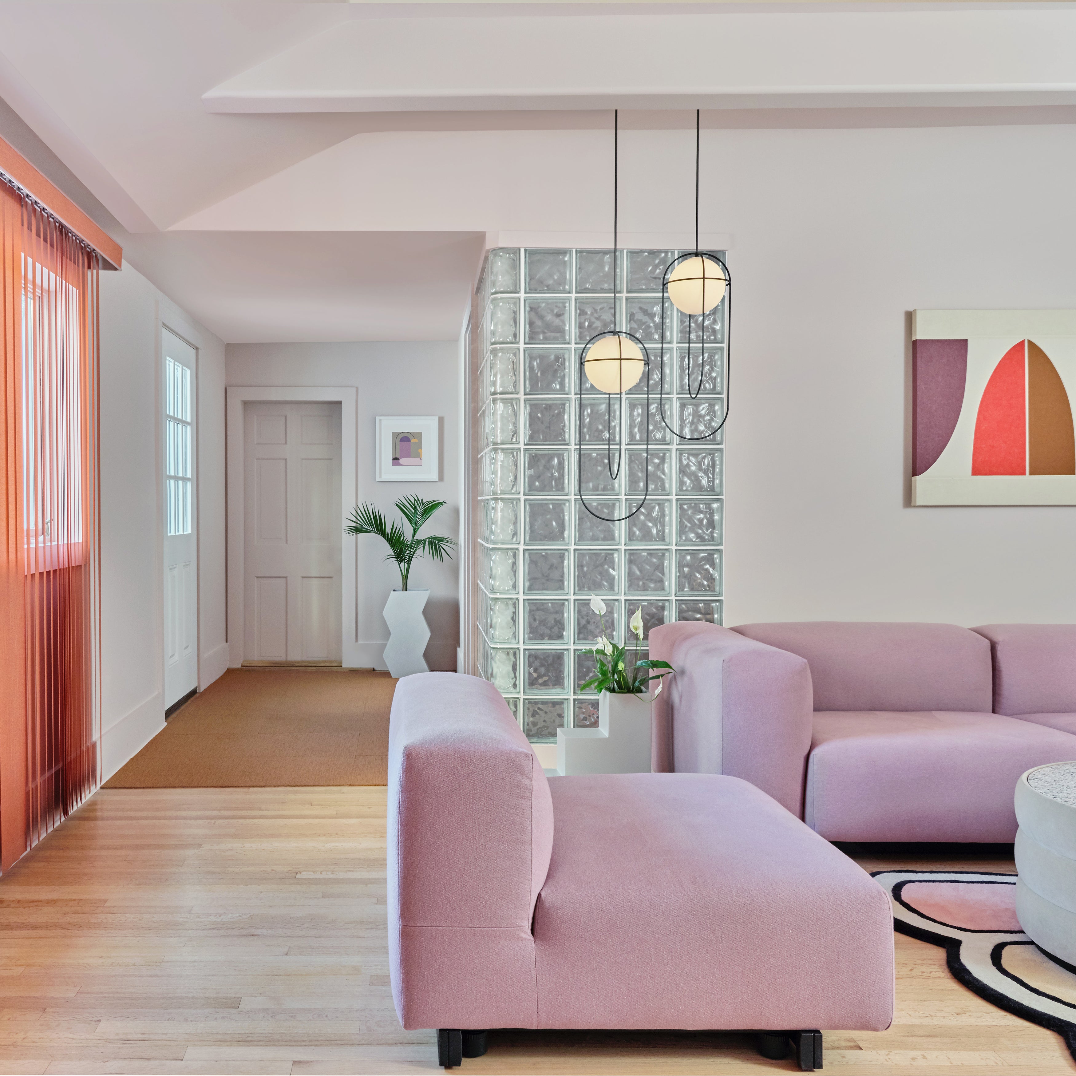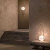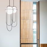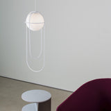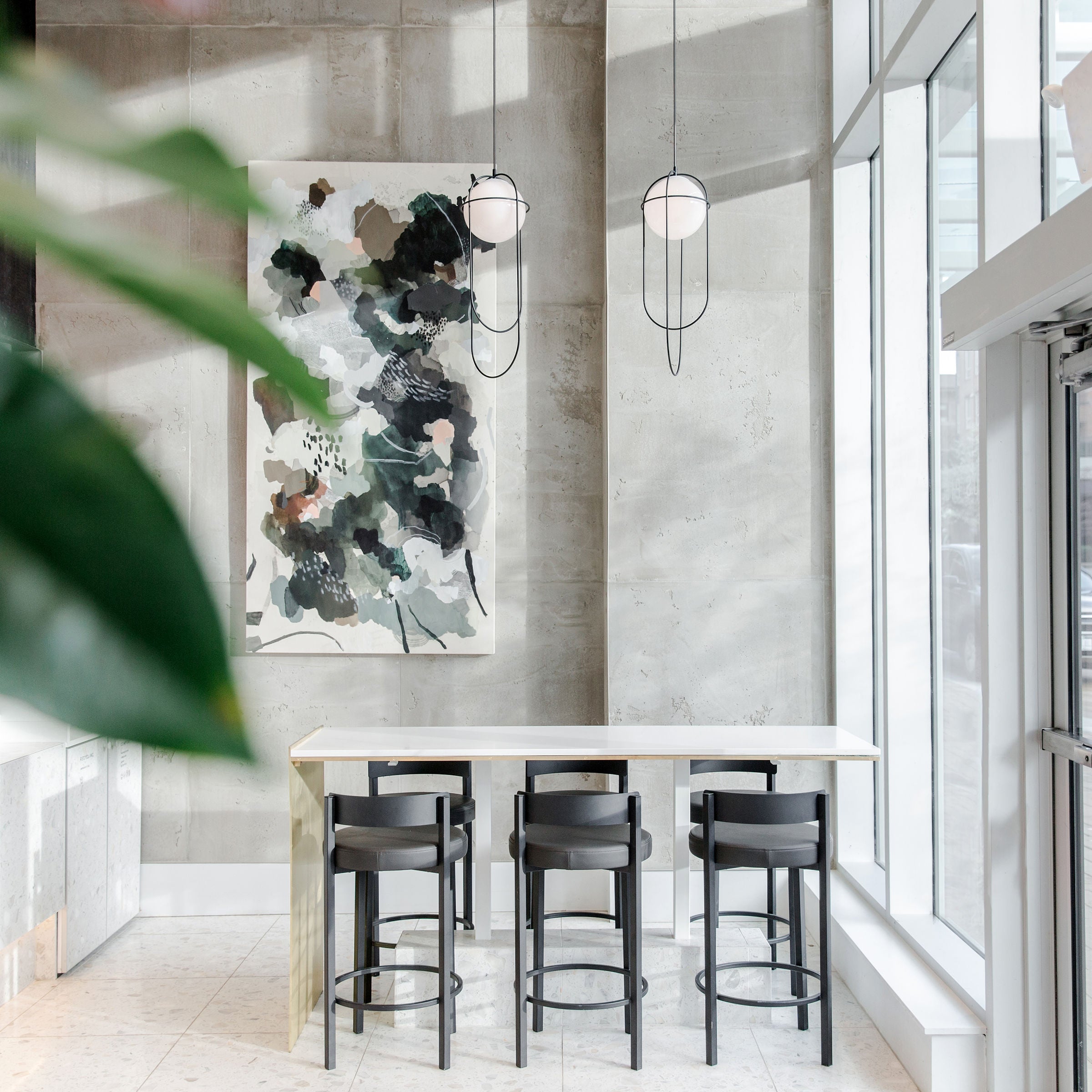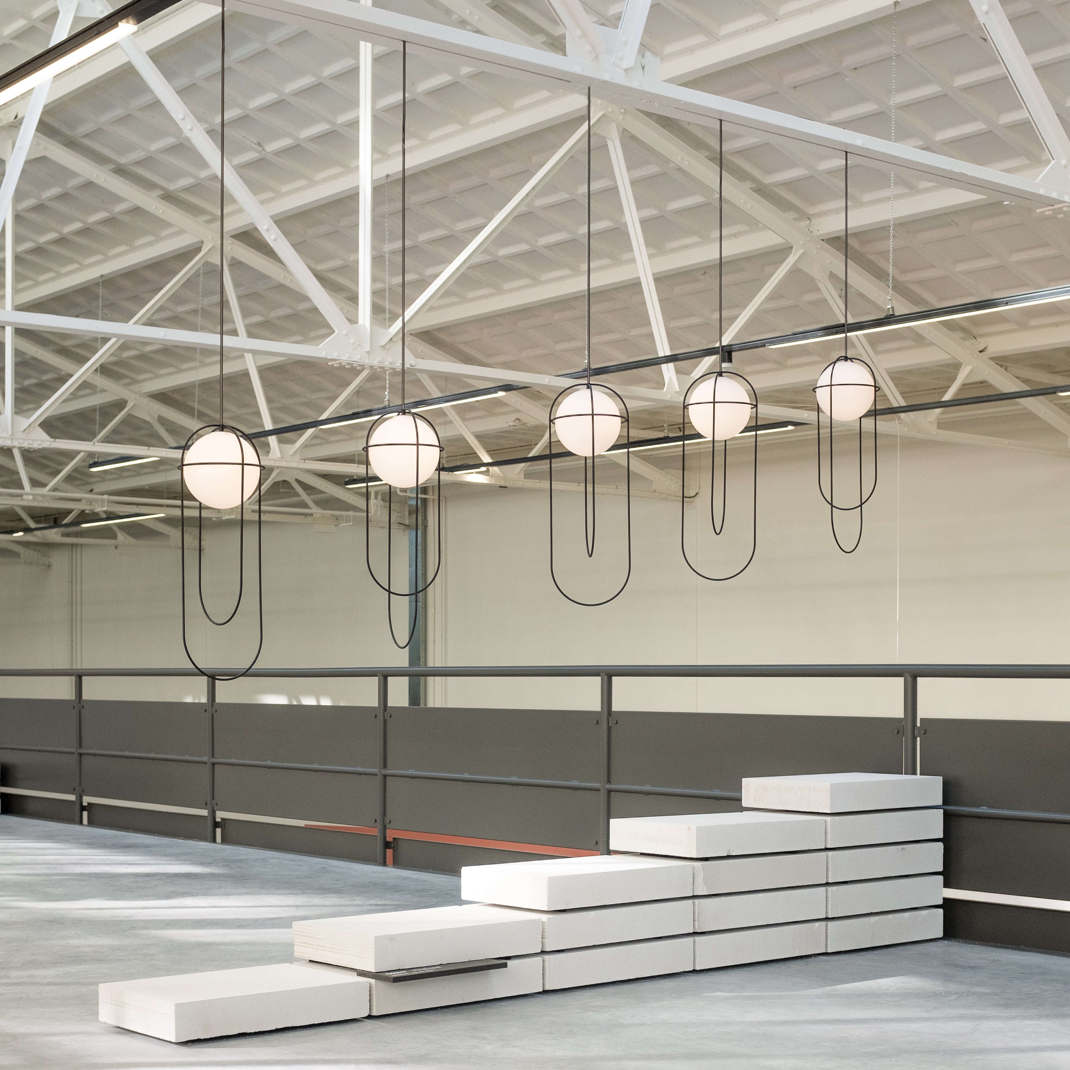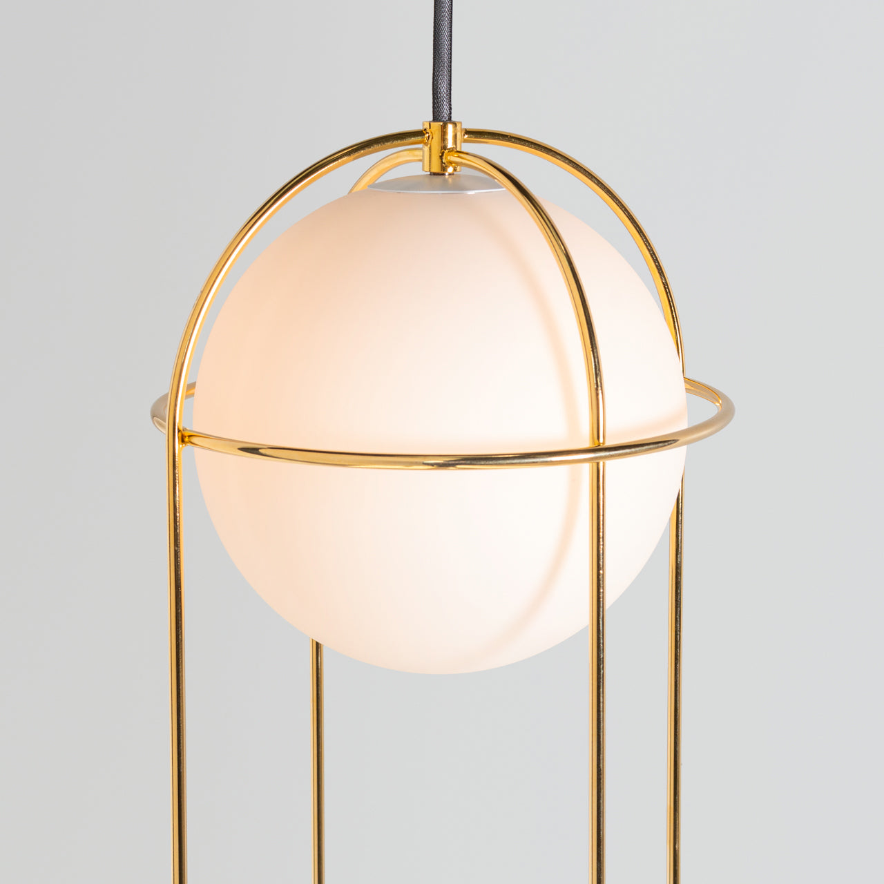 Designer Lukas Peet likens a glowing glass globe to nature’s original light source—the sun. “Orbit is a direct response,” he says, “with its metal cage functionally protecting the glass as well as referring back to the sun and our own orbit around it.” With the iconic orb rendered in opalescent glass, the pendant comes with either a black or white encircling framework.