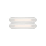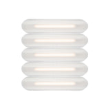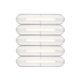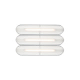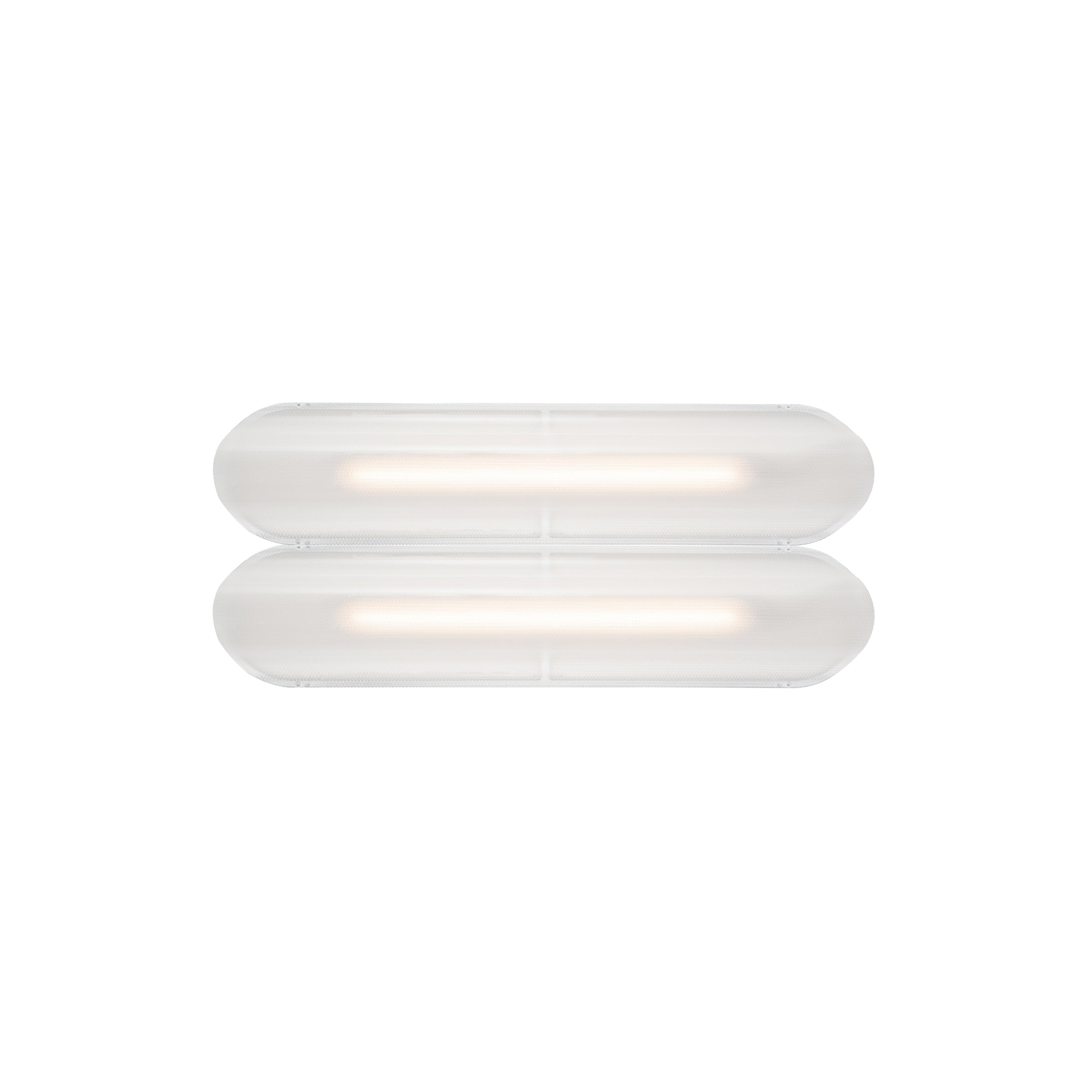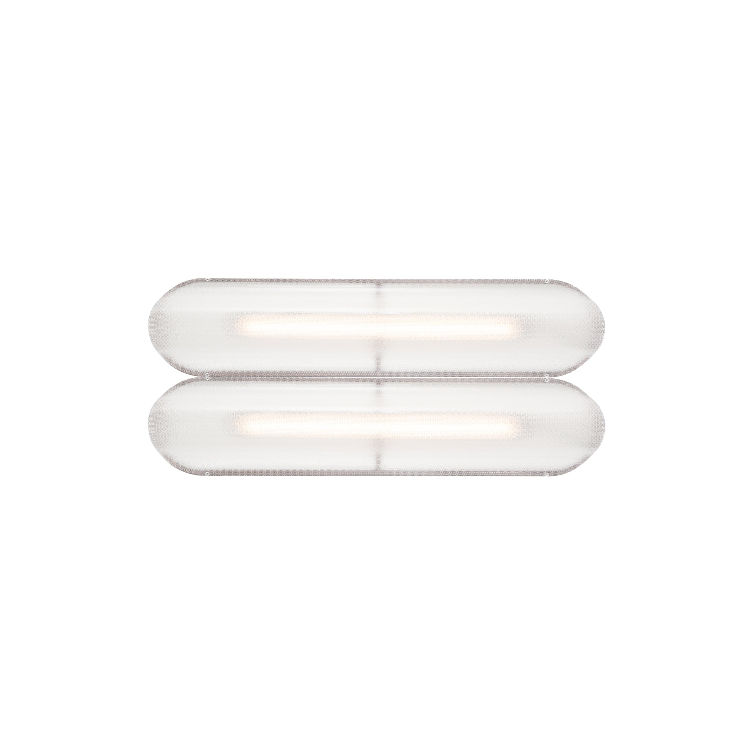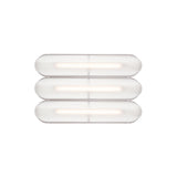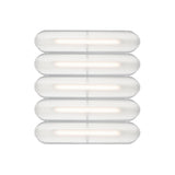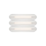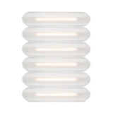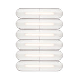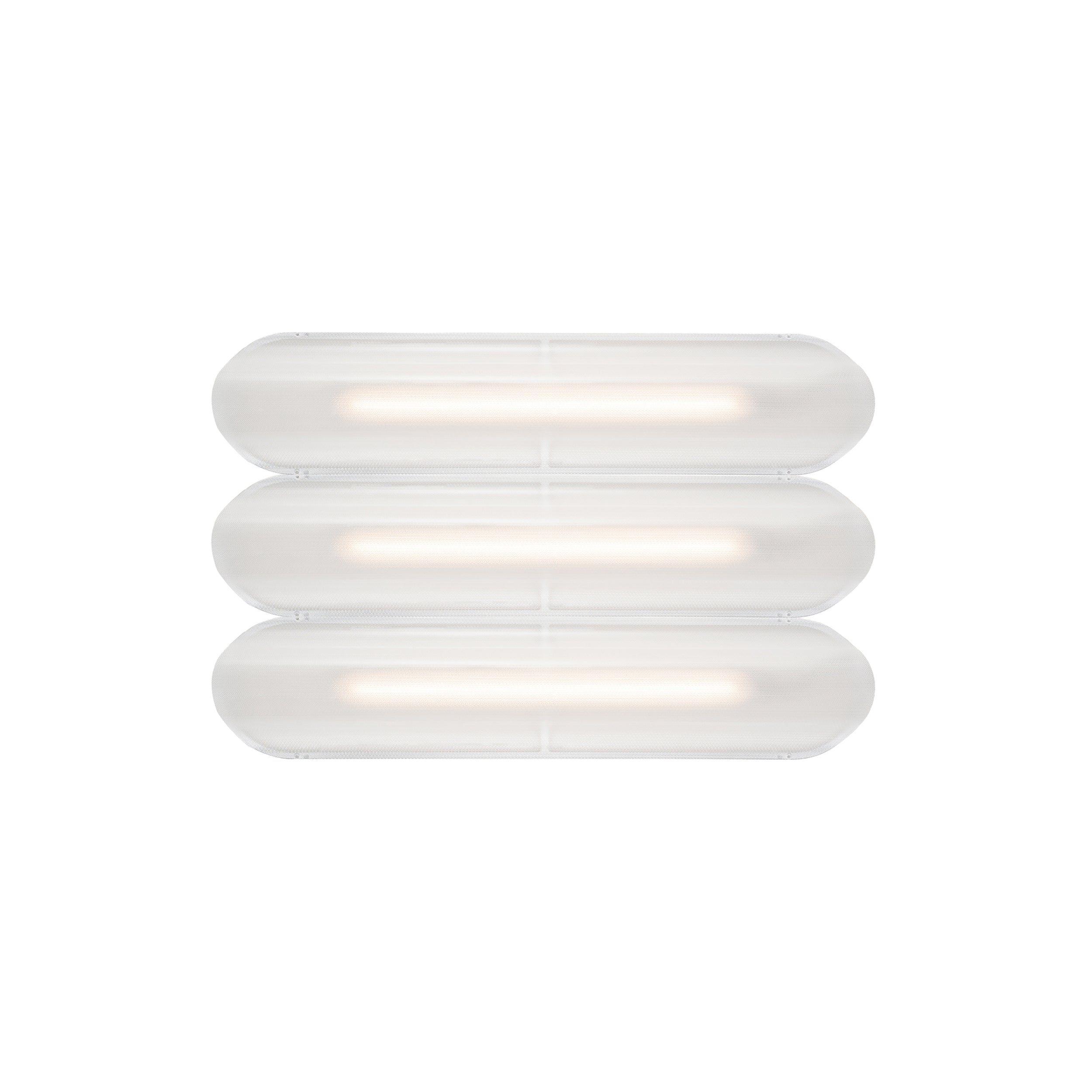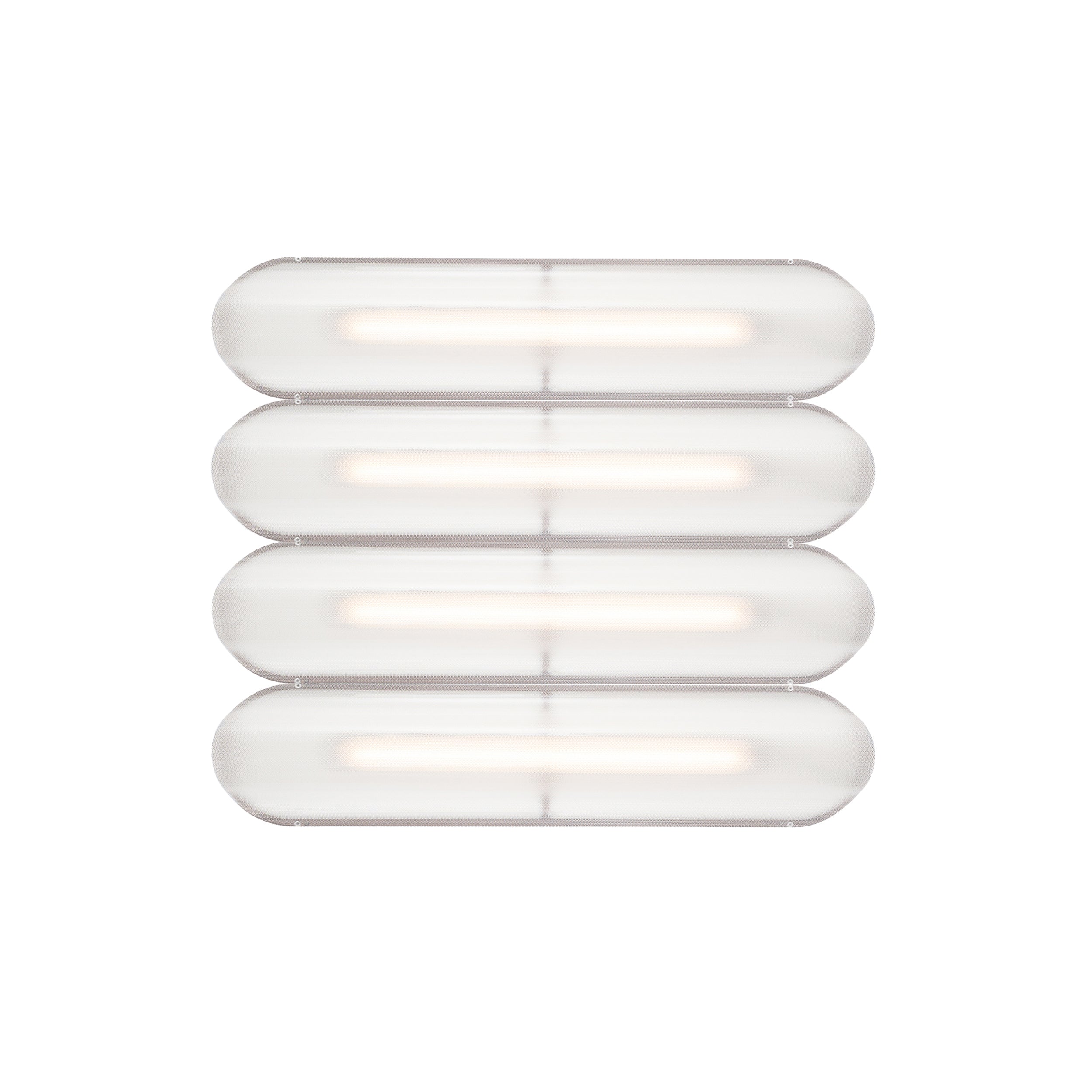 Designer Caine Heintzman's Vale System includes a horizontal version with multiples of the sculptural LED light in a stacked, side-by-side arrangement. Whether a single unit or layered up to 6 fixtures high, each flush-mounted light attaches to the wall or ceiling with a low-profile aluminum backplate in anthracite, silica, or rust finish. Fronted by a heat-molded acrylic lens with a textured surface, the prismatic effect glows with even ambient illumination.
