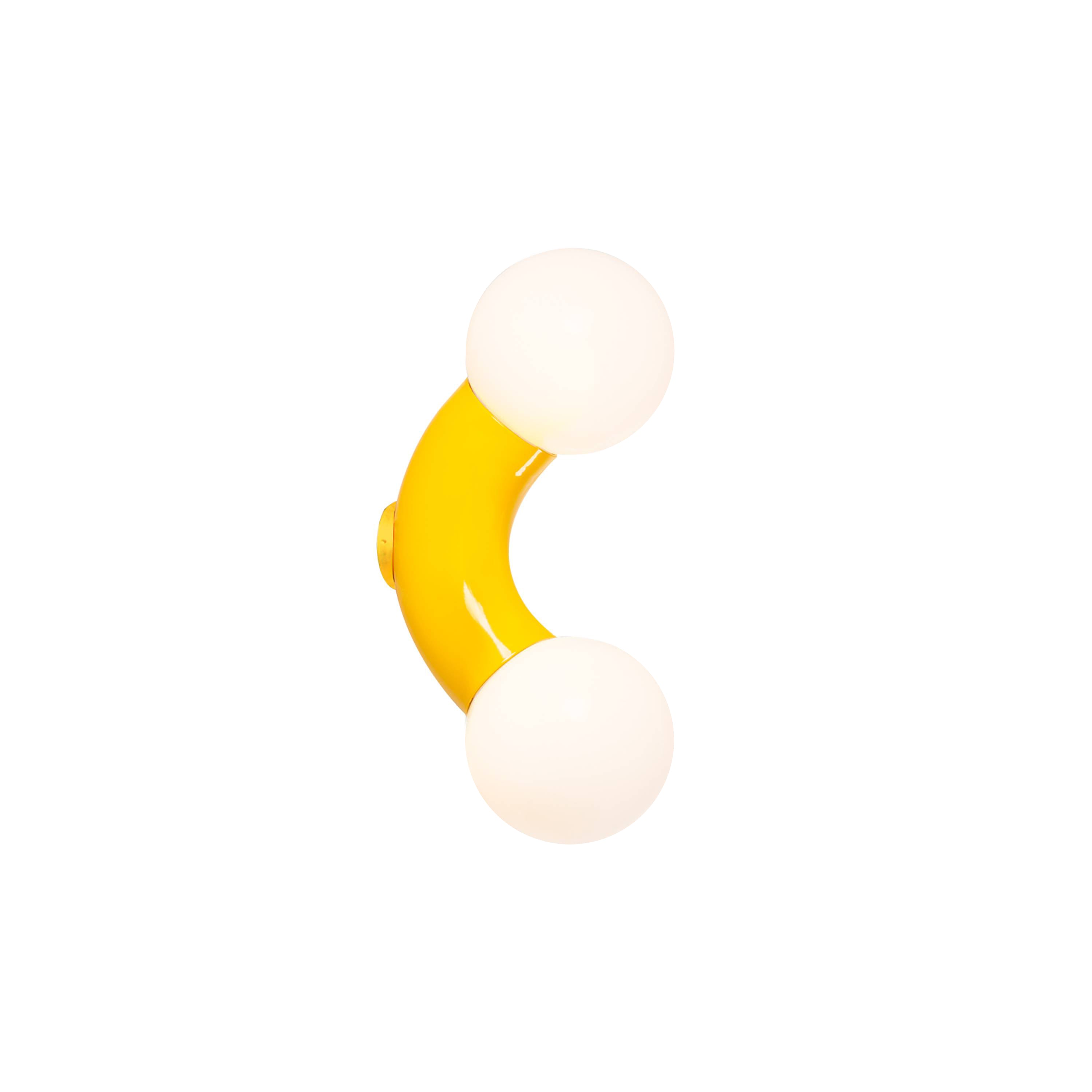 This Vine offshoot gets a blaze of cadmium yellow to pump up the drama of designer Caine Heintzman's already boldly proportioned wall-ceiling fixture. The brawny steel arc structure is bracketed by a pair of outsize opal-glass globes that glow with LED illumination. A-N-D's fixture holds its own as a single unit or it can be lined up in multiples to stunning effect—and the light can be mounted horizontally or vertically.
