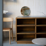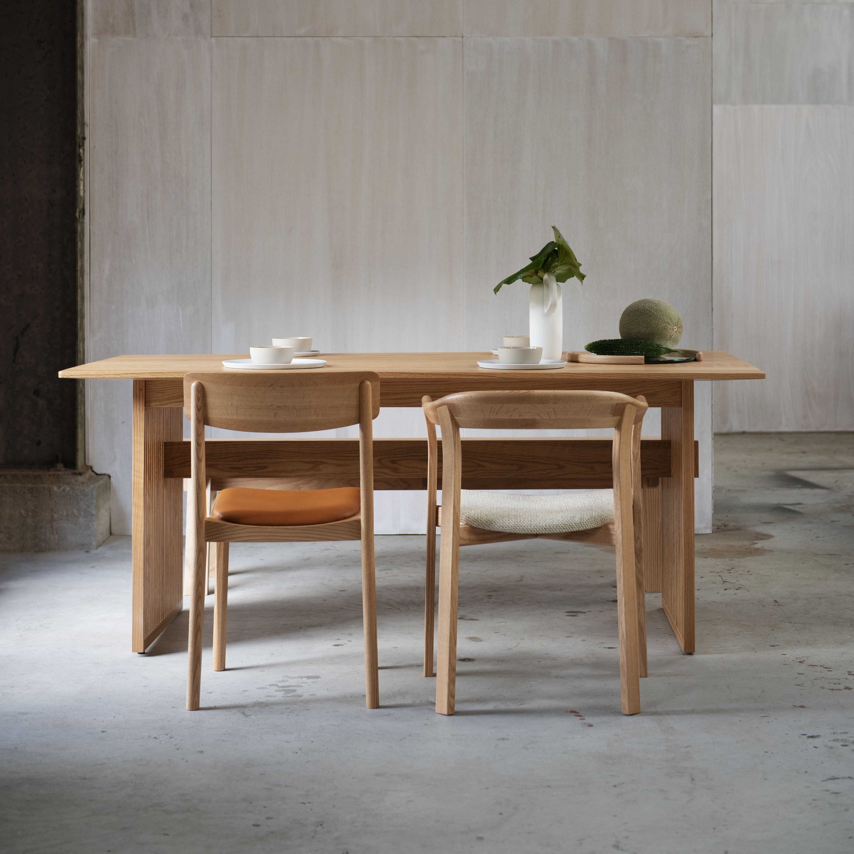 First conceived when a group of the designers gathered for an intensive design workshop that took place in the small town of Morodomi in southern Japan, the expanded collection employs tactile natural materials and rich finishes. Superbly crafted furnishings are fashioned in oak, ash, hinoki and cedar woods; buttery leather; paper cord and fine upholstery fabrics; as well as unique Japanese-inflected finishes. Each piece is crafted in Morodomi, from Mowat’s Aiizome storage cabinet painted with sumi ink, red dye and two shades of Japanese indigo, to Ashizawa’s evocative plumply cushioned Raft platform sofa, to Anderssen & Voll’s sculpted-wood Blest side chair with its curved back reminiscent of a sail.