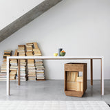 A small storage unit completely rendered in oak veneer and equipped with hidden wheels, Pile makes for a perfect combined book table and storage cabinet, a small nightstand or sofa table. Additionally, Jessica Signell Knutsson's versatile piece comes in a choice of stained oak, white stained oak or black walnut oak. Asplund's furniture is completely produced in Sweden, observing ethical and environmentally friendly manufacturing processes.