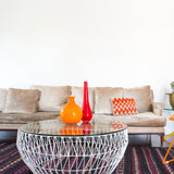 Around the Bend is a bright and happy place to be when speaking of the cool iron wire furniture from Los Angeles' own Bend Goods. In true Southern Cali style, these corrosion-resistant pieces with their pop of powder-coat color can easily meander from indoors to outside. Sculptor, designer and entrepreneur Gaurav Nanda perfected the signature process he calls "bending"—shaping and spot welding the wire by hand—to achieve intricate patterns in Bend's furniture, lighting and accessories.