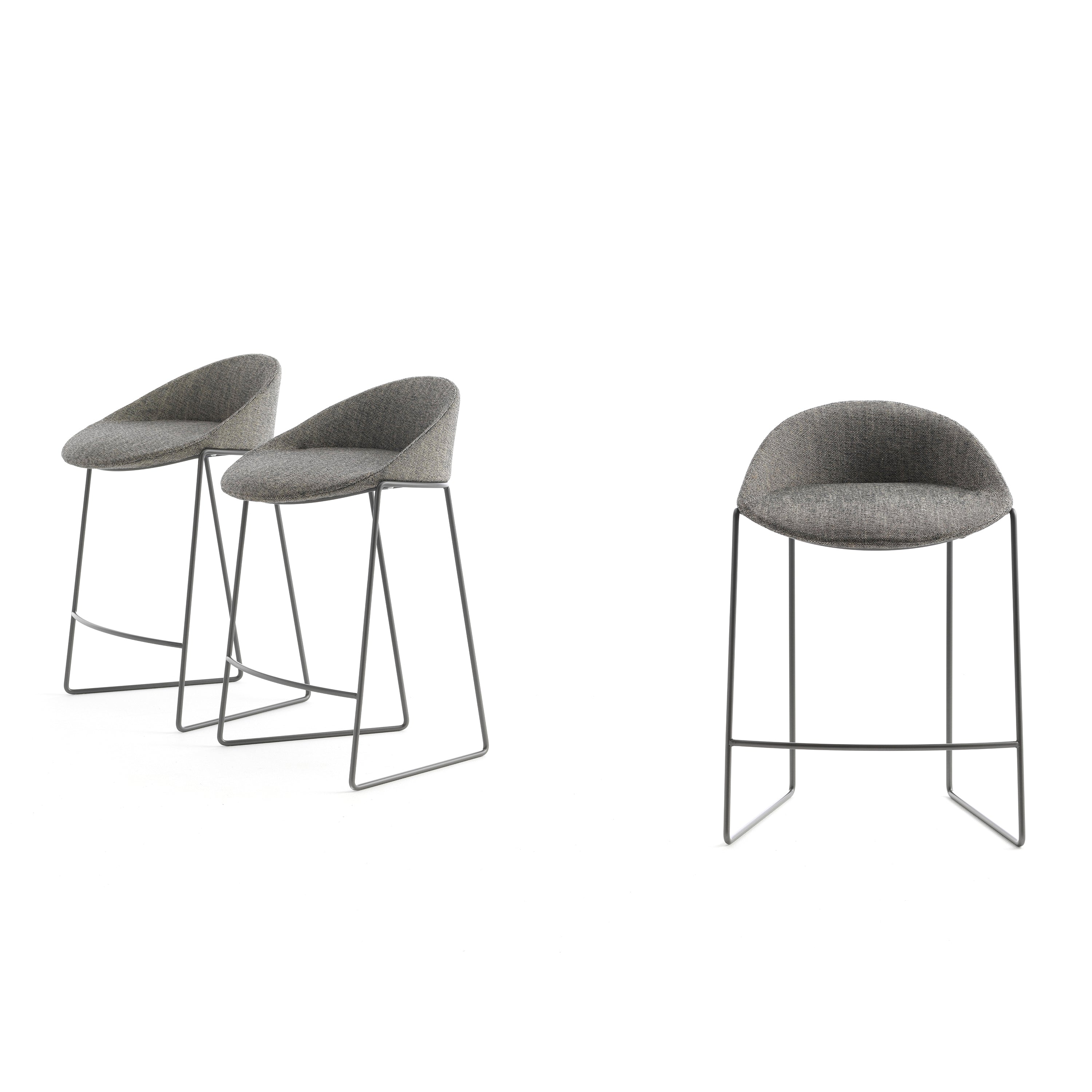 In a choice of bar or counter height, Bensen’s low-back stool offers roomy contours and a supportive footrest incorporated into its wire frame. Superbly crafted in Italy, the seating is plumped with quality foam and has an integrated webbing structure for lasting ease. With myriad seat upholstery selections in fabric and leather, the steel-rod base is available in complementary plated, brushed or powder-coated finishes.