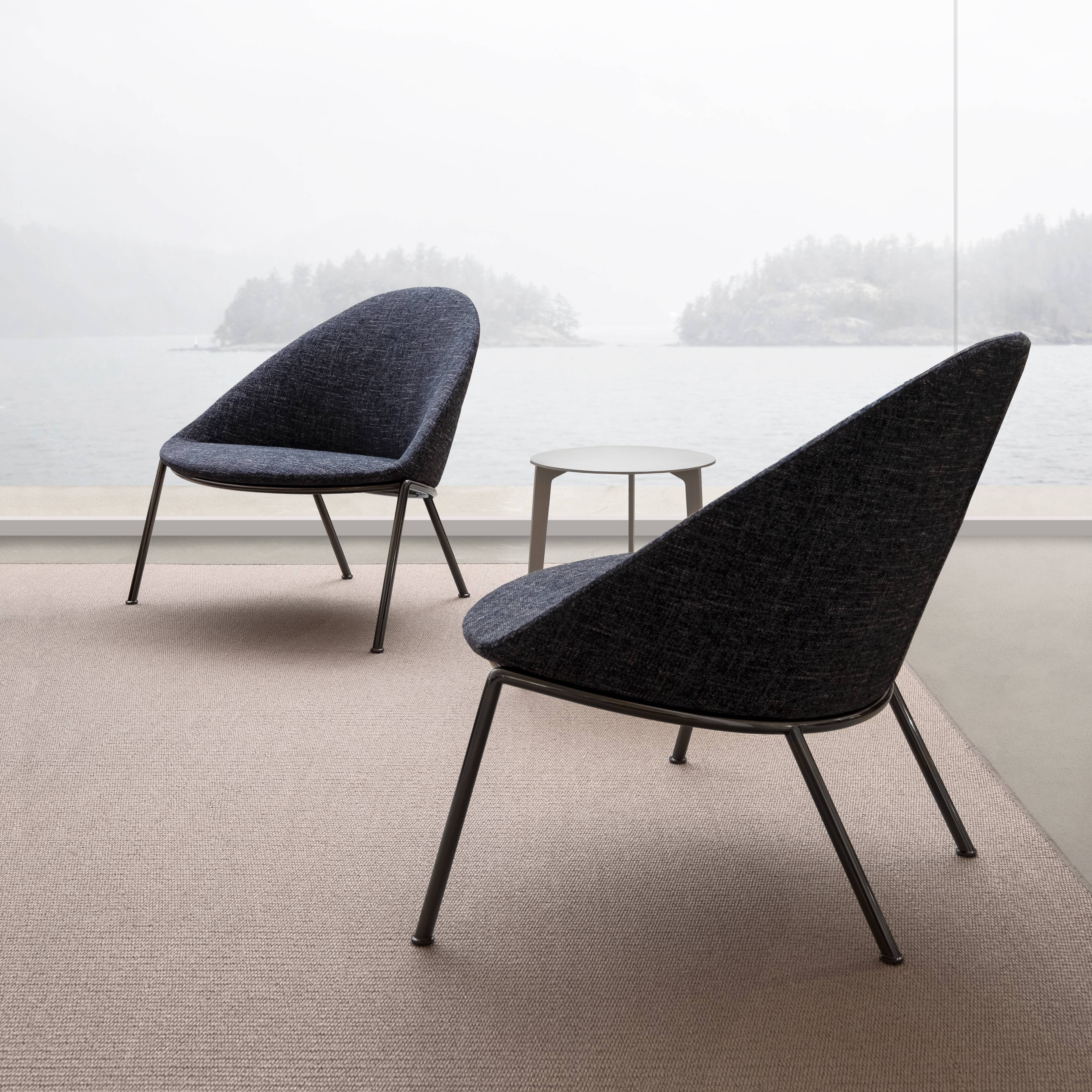 Circa’s flowing shape envelops the body and provides impressive comfort within a small footprint in the expanded lounge chair. A responsive webbing seat is concealed within the formed foam and cradles the sitter, sturdily ensconced on an angled steel base in a choice of finishes. Handsomely made in Italy, the distinctive arc silhouette and waterfall seat cushion are defined by a sumptuous range of upholstery textiles and leather.