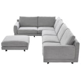Just as the collection's sectional comes in a choice of seat depths, Elle's companion ottoman is available in 2 sizes, Standard or Deep. Top cushion is engineered with a layered foam core and wrapped in a generous amount of feathers and down. Fabric cover attached by velcro and easily removable for cleaning or replacement.