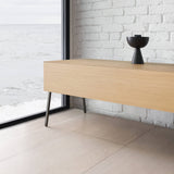 Elevated on slender metal legs, the geometric Into drawer cabinet floats serenely above the floor surface. Canadian-based Bensen’s superb made-in-Italy craftsmanship shines as the top woodgrain wraps around the sides for a continuous visual effect. Available in a variety of curated finishes, the cabinet comes in a choice of sizes—to use by the bed, as a side table or to combine as a larger storage setup.