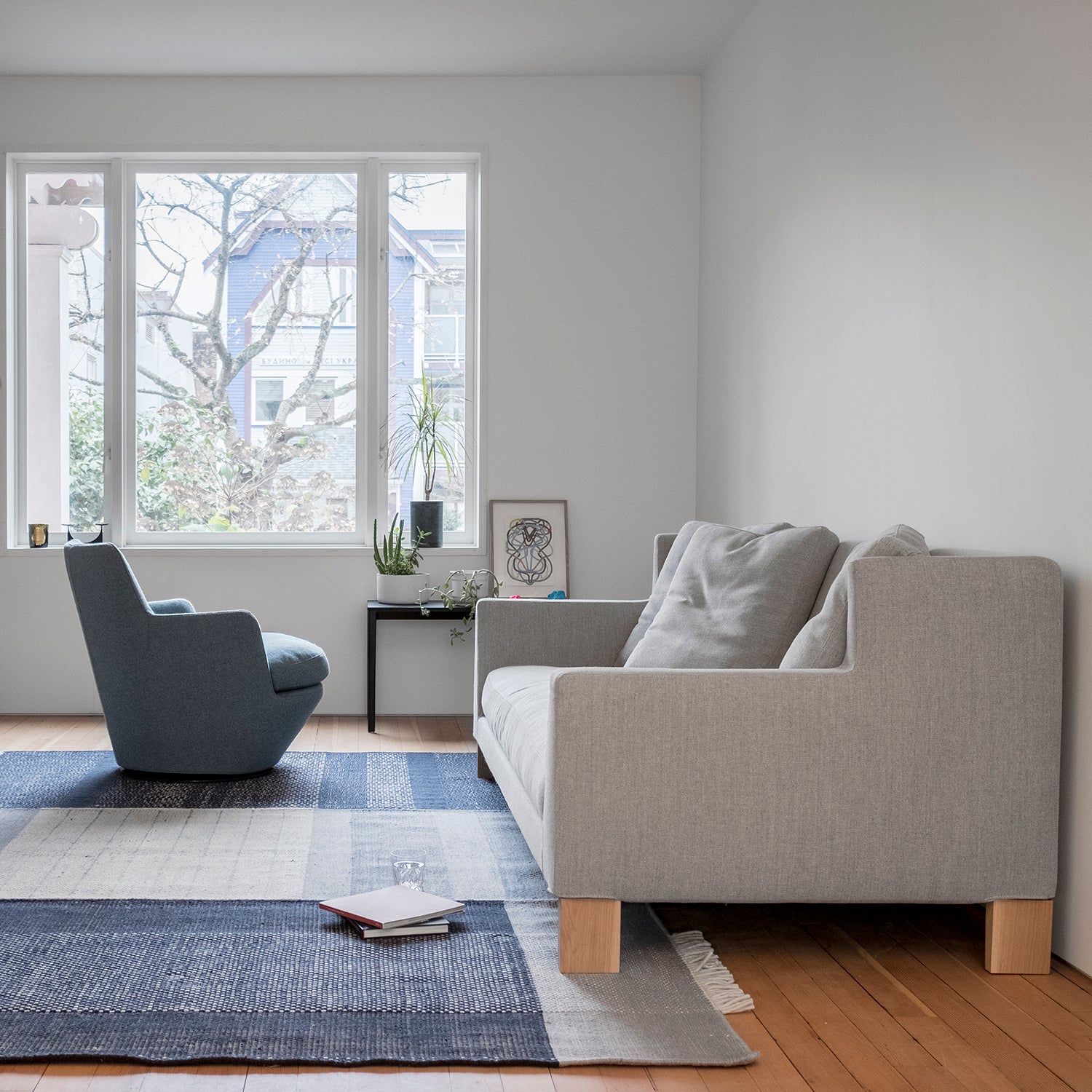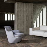 With this low-back armchair, Bensen adds another contender to the U Turn family. Lo Turn swivels smoothly for an entire 360 degrees (available with or without self-return mechanism) and its inviting arms are mated with a comfy down seat. The readily tailored look of the seating starts with an internal steel frame layered with injection-molded cold foam. Fabric covers are velcro-attached and easily removable for cleaning or switching out.