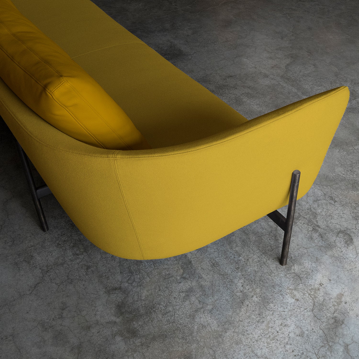 Loft throws a handsome curve into a space, be it residential or a contract setting. With cleanly tailored lines and the simplicity of the integrated seat cushion, the sofa is inviting and engineered for comfort. Destined to be a new classic, the design floats on metal legs in either chrome or bronzato. And a choice of optional back cushions adds a dash of extra personality.