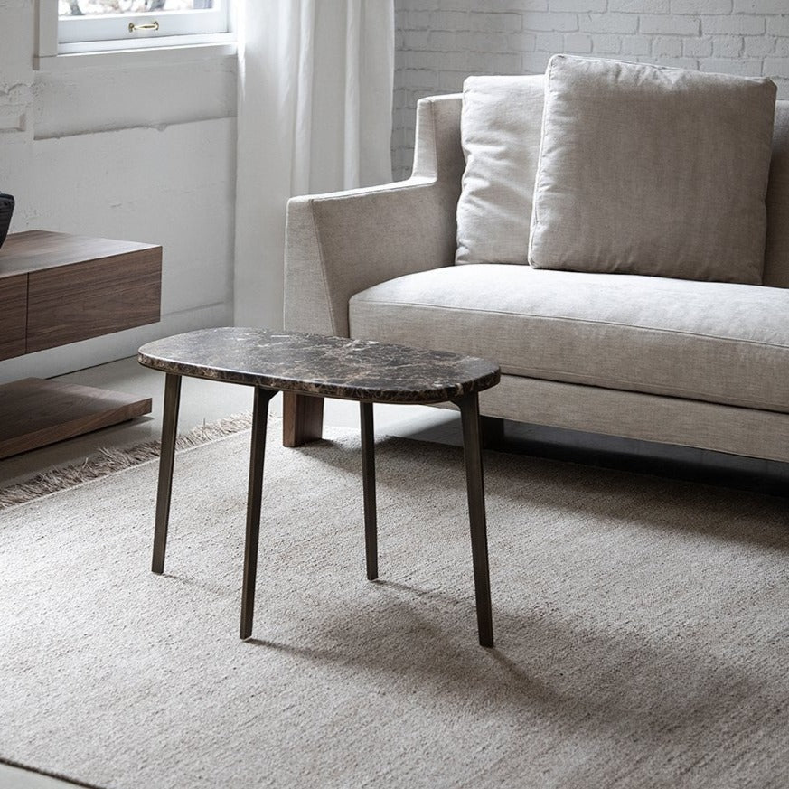 This well-scaled table with its rich marble top brings a subtly elegant presence to any room. Side, as it is called by modernist maker Bensen, comes in 4 different shades of the luxe stone, reveling in its marvelous veined surface. In sleek-lined metal, the accompanying frame is available either chromed or finished with a bronzato tone.