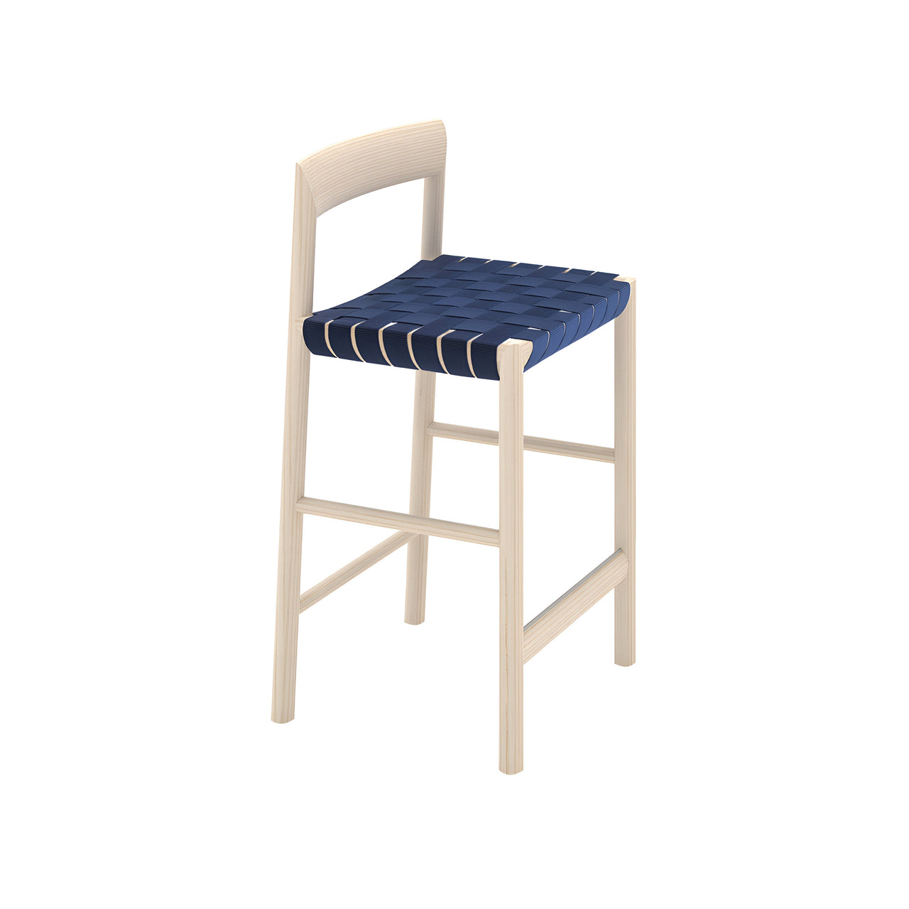 In a timeless and durable alternative to upholstery, this version of Bensen's solid-wood stool in bar features a slung seat in woven webbing. Designed in Canada and fashioned in Italy, Stax features mitered corners at the comfortably curved backrest to create the illusion of a continuous grain. With a selection of solid-wood finishes, the seating is designed for both residential and contract use and is available in both bar and counter heights.