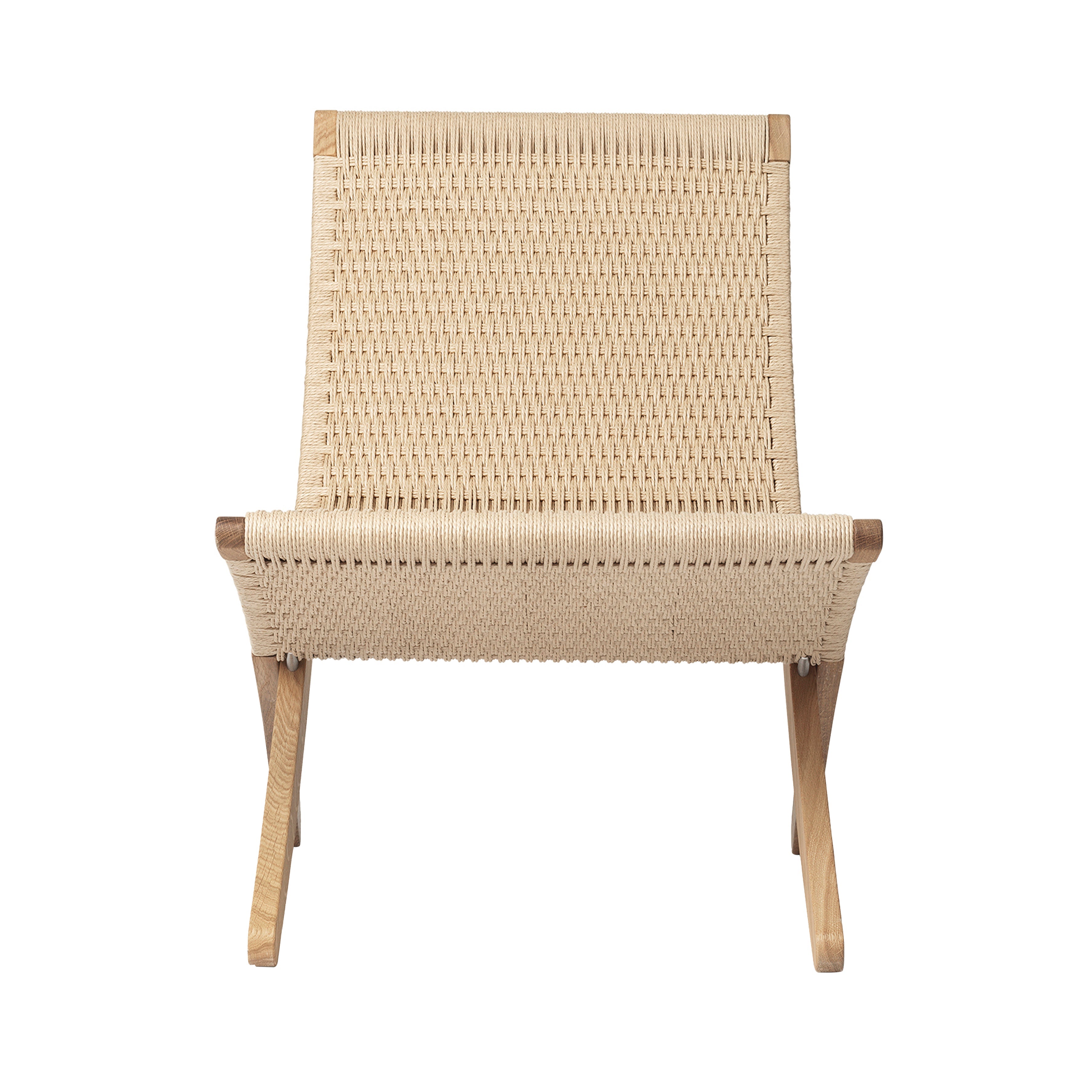 Designed in 1997, Morten Gøttler's elegant folding Cuba Chair now gets a variation with the seat and back in paper cord, for an even lighter and more refined expression. Featuring a solid-oak frame, the chair’s characteristic gentle curves provide excellent support as they gently follow the body’s contours. With fine craftsmanship and close attention to detail, the foldable lounge chair serves as either permanent or impromptu seating, and it can easily be hung on a wall or placed on a floor stand when not in use.
