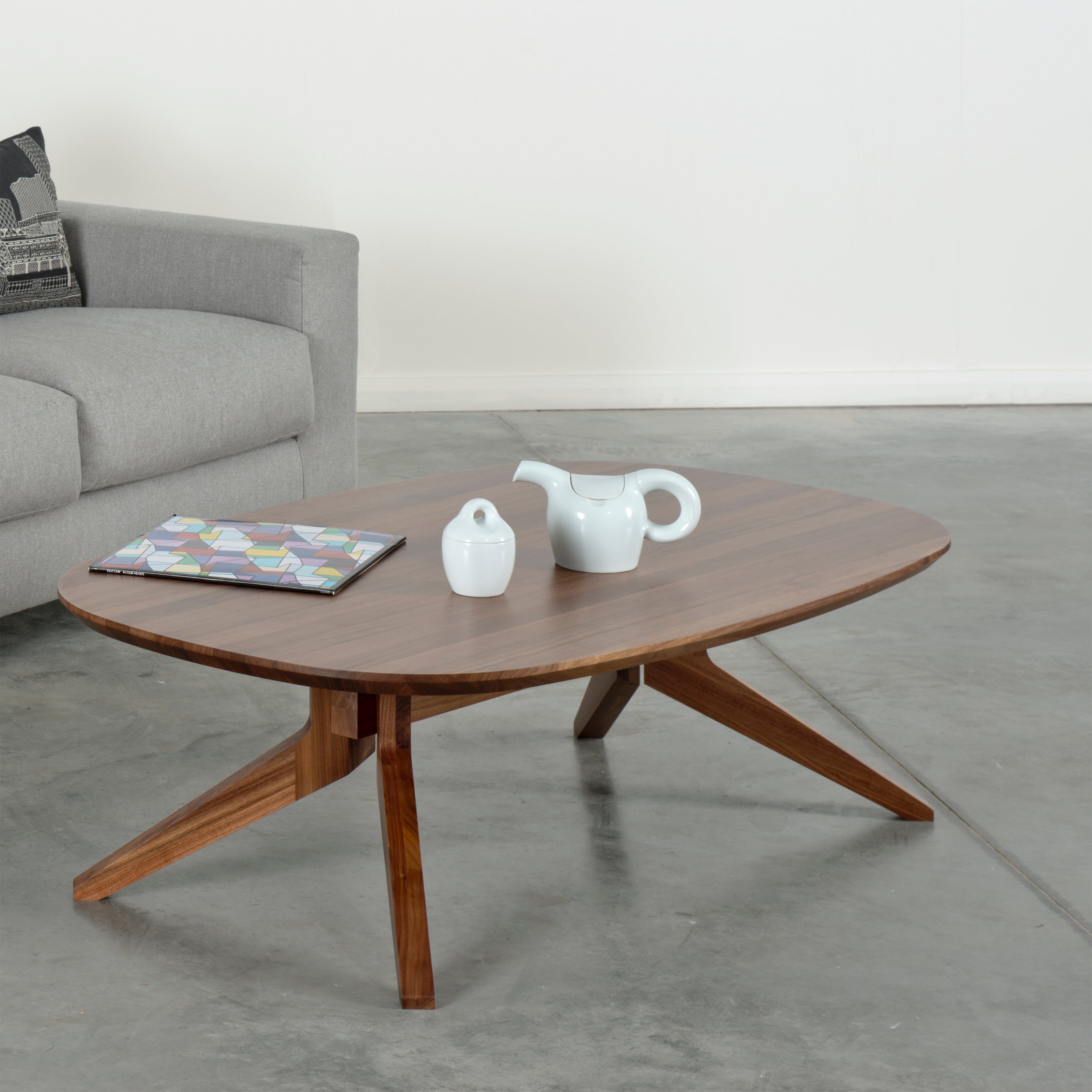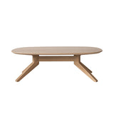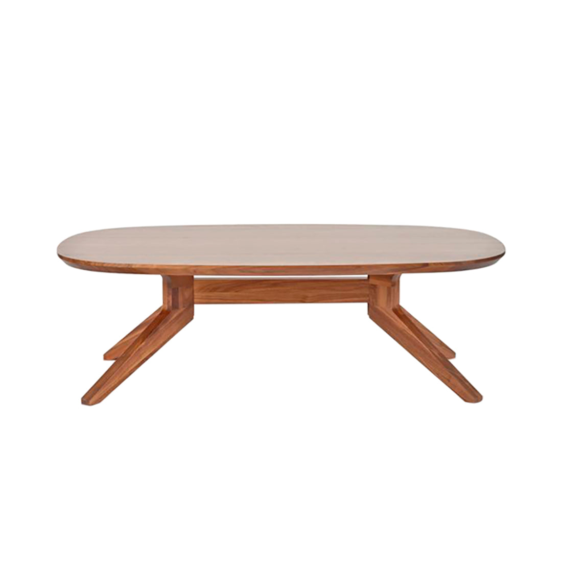 With an elongated rounded surface, Matthew Hilton augments his Cross series with an oval coffee table with a distinctive trestle-style base and angled legs. Fashioned in solid oak or walnut with a veneered top, the clear lacquer finish enhances the warmth of the wood while assuring low-maintenance care for this timeless piece.