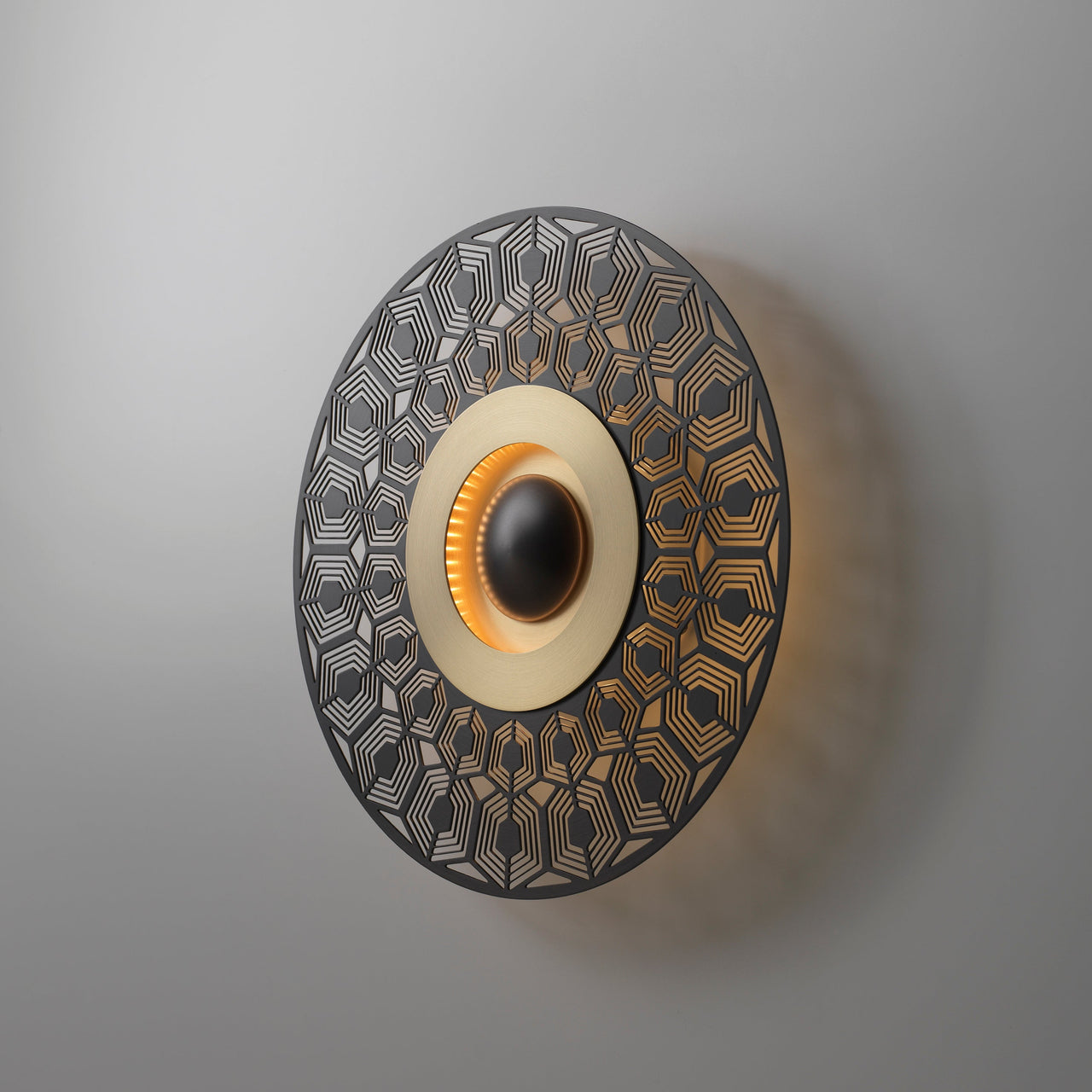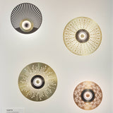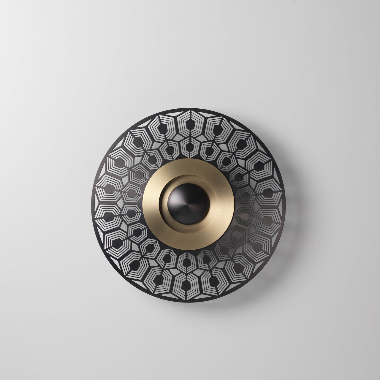 Fine metal openwork that alludes to France's illustrious legacy of Art Déco style surrounds the illuminated center of Turtle, from the wall light series Earth. Artisanal maker CVL handcrafts the fixture in solid brass, to radiate an intricate pattern on the wall behind and soften the warm illumination from the LED light source. Designer Émilie Cathelineau often takes inspiration from the past for her chic contemporary renditions for the French lighting firm, located in the Loire Valley for over 50 years.