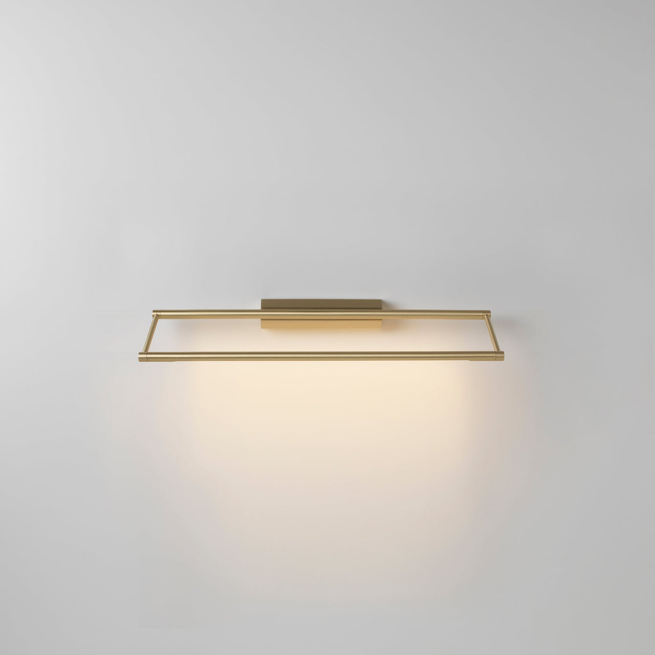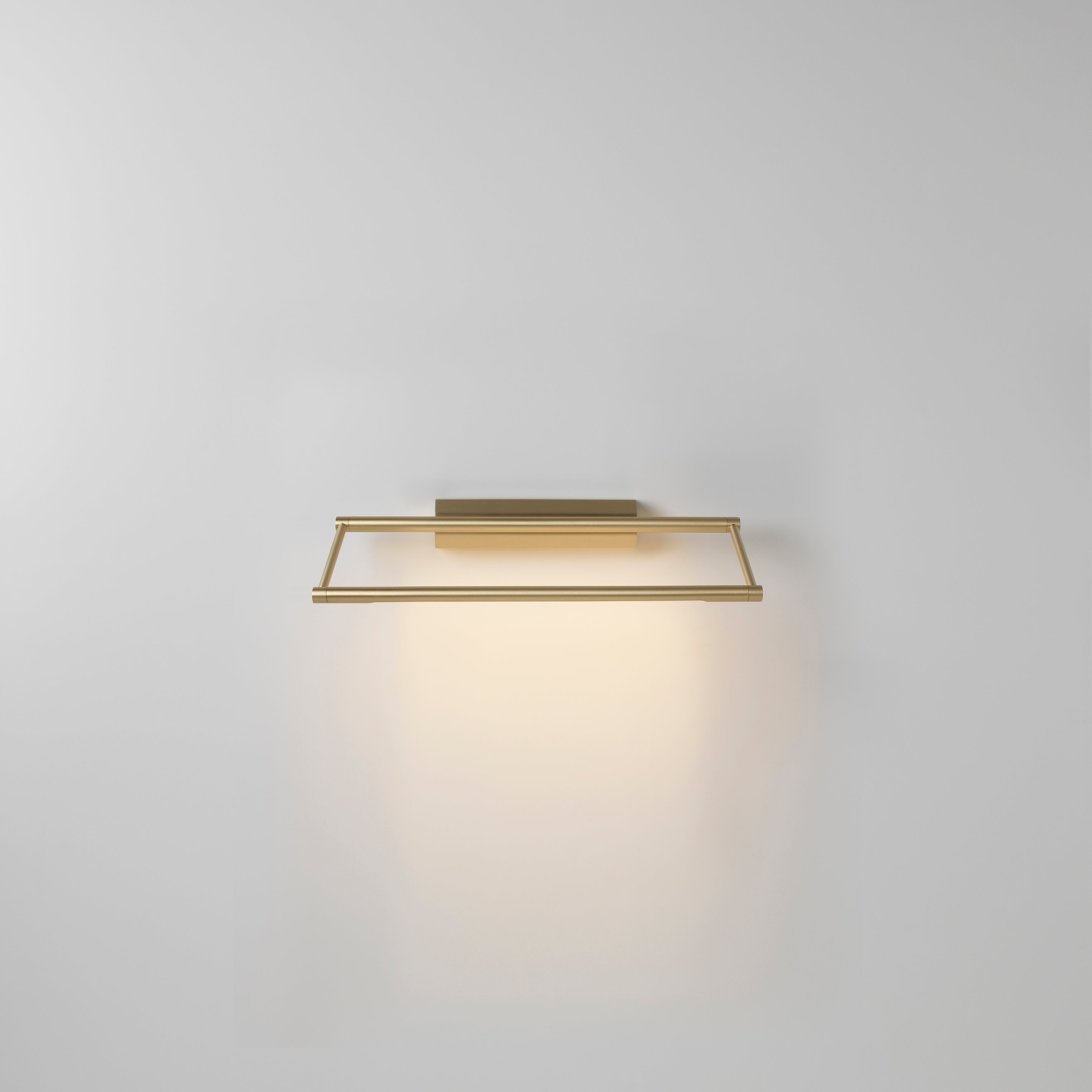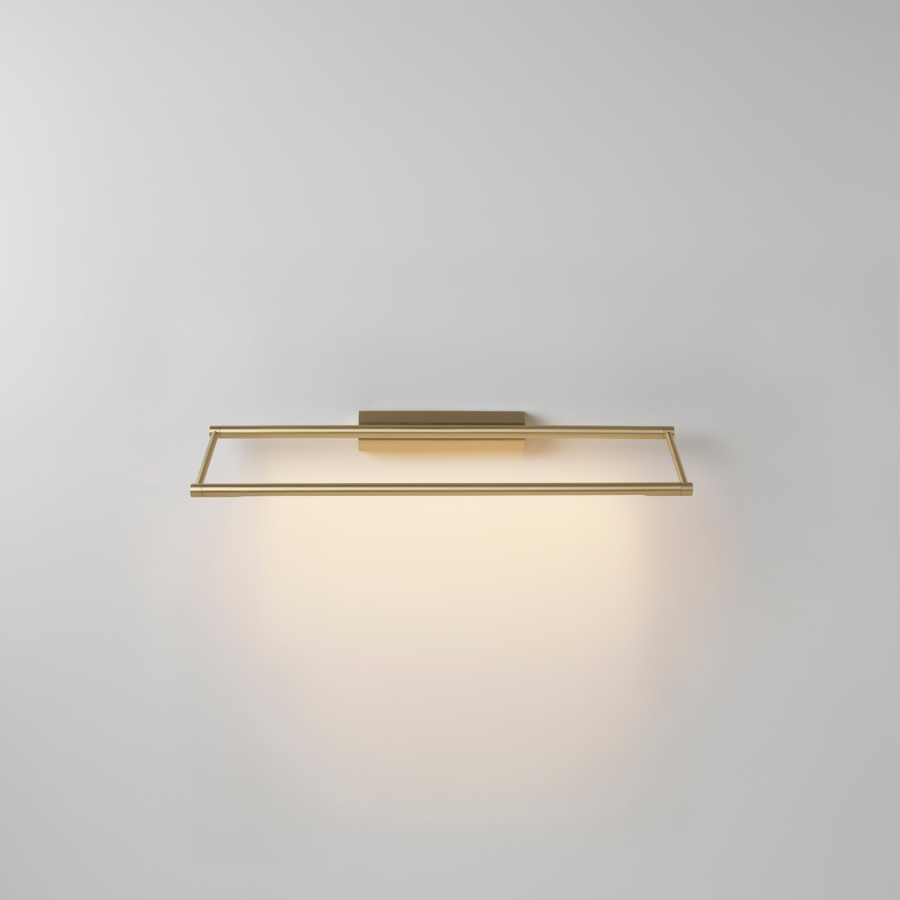 Resembling a picture frame, this gleaming wall light provides a strikingly demarked pool of light. Link's rectilinear form can be mounted either vertically or horizontally and also pivoted away from the wall behind to direct the illumination. An integrated LED light source is fully dimmable and the handcrafted brass armature is available in a range of sizes and choice of refined satin-finish metals.