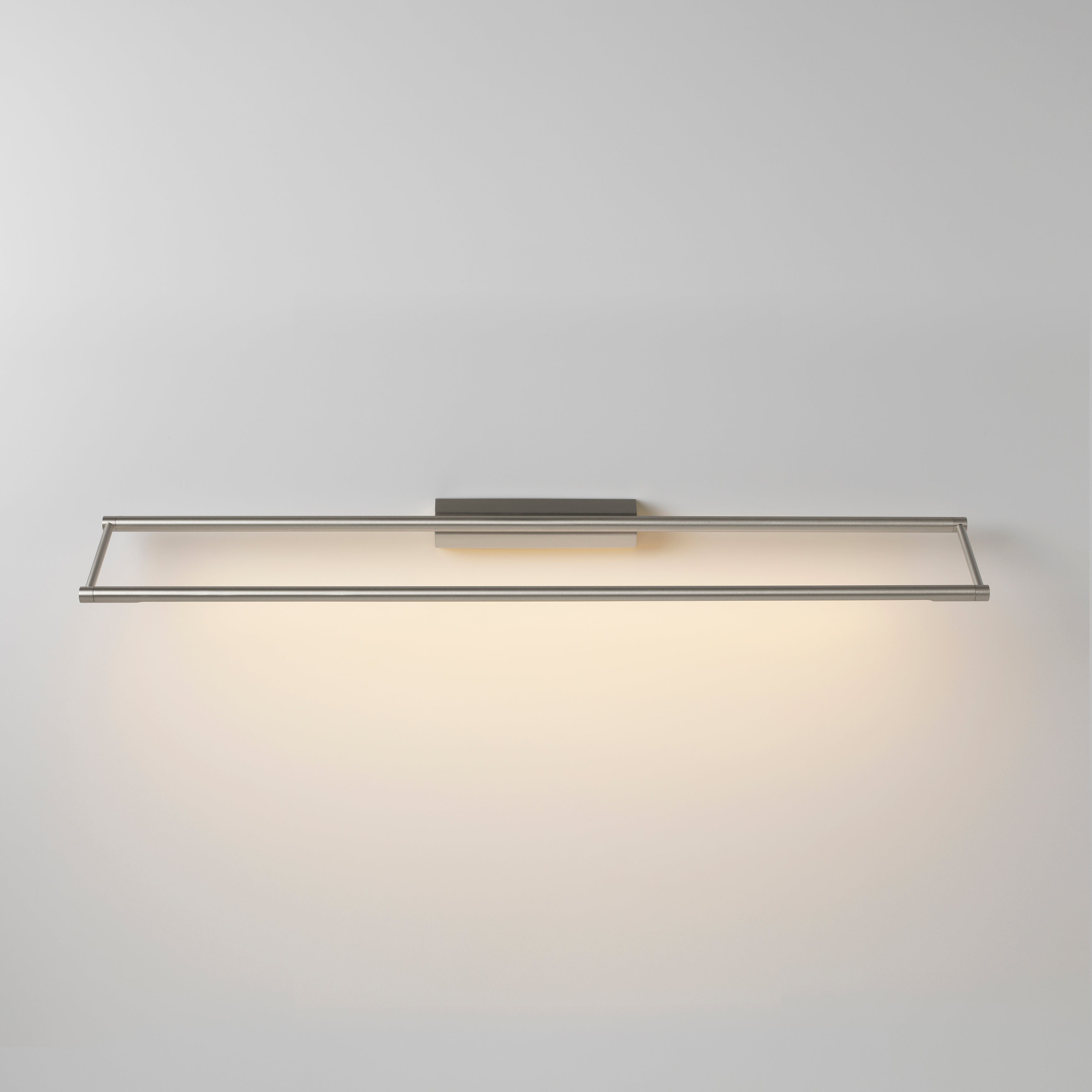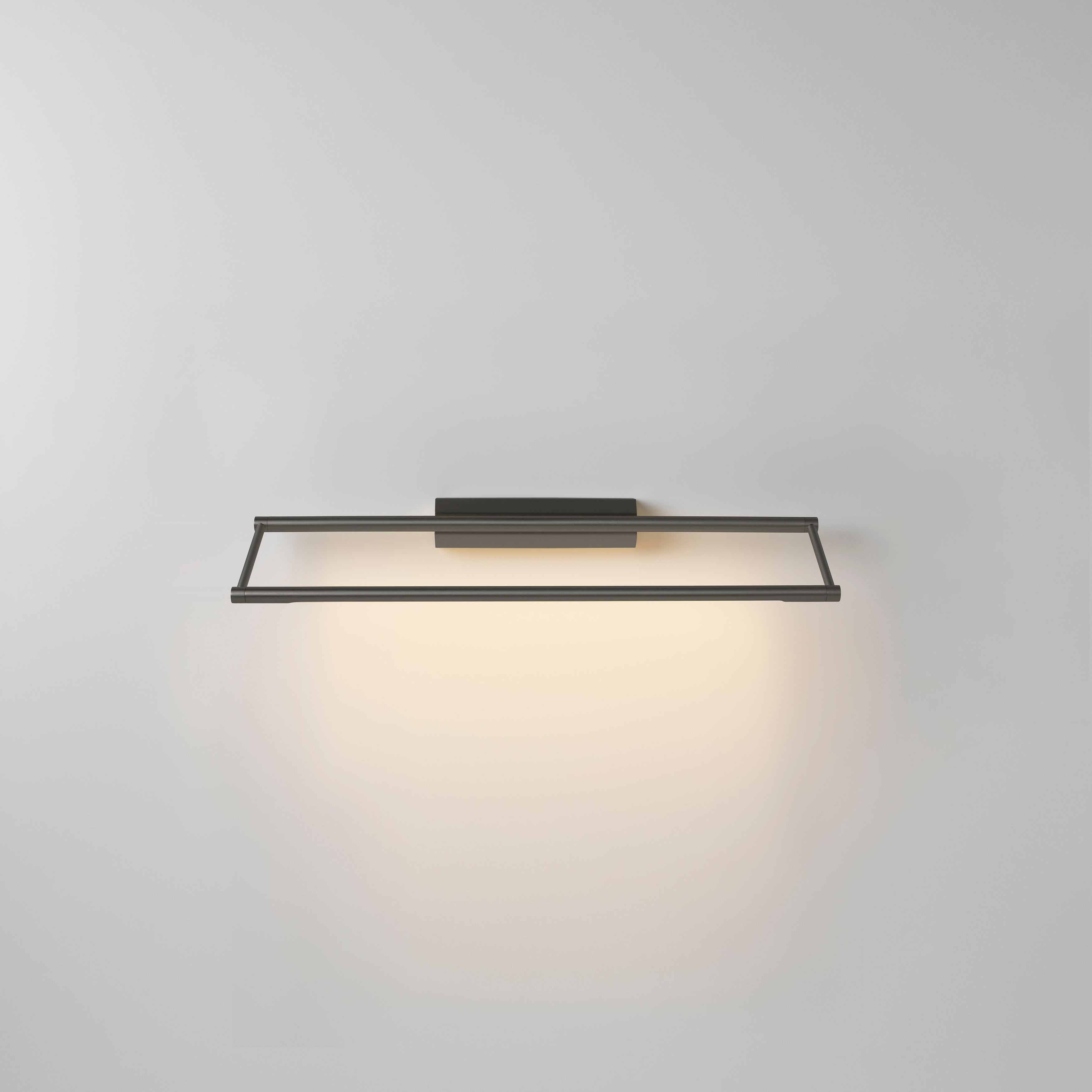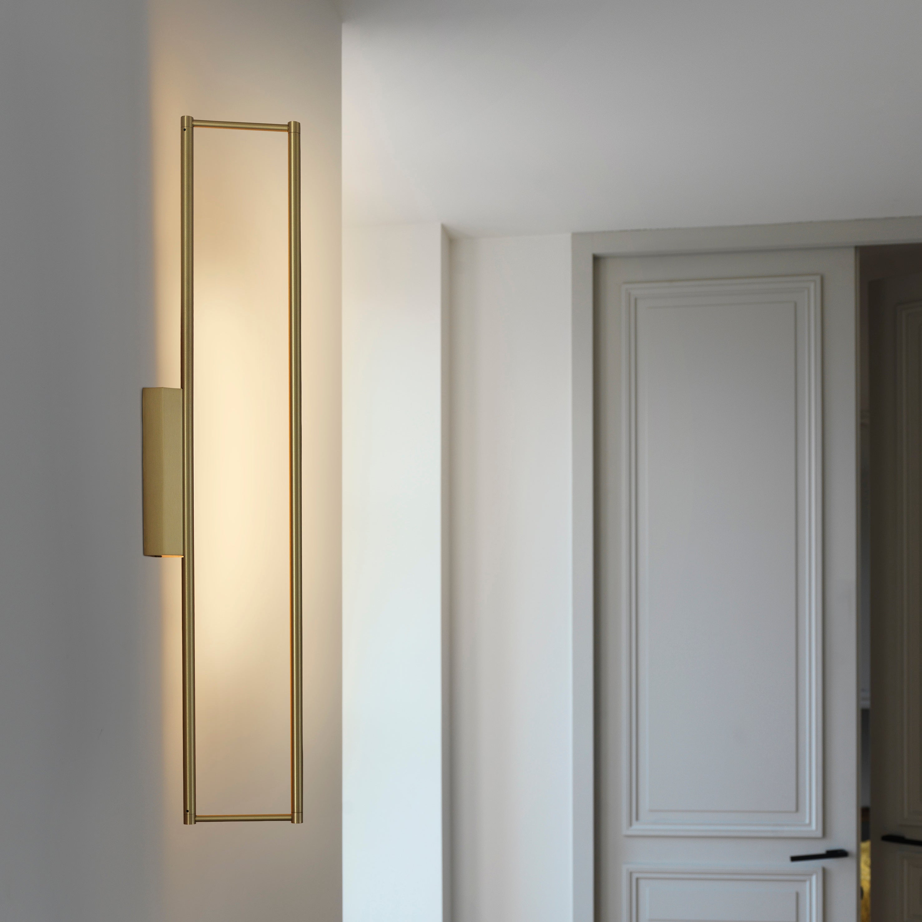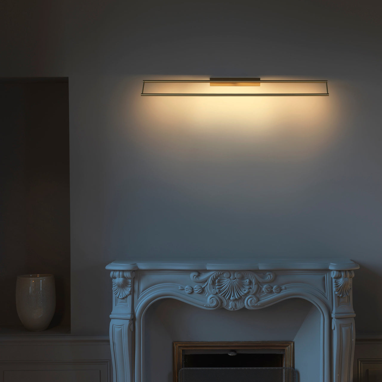 Resembling a picture frame, this gleaming wall light provides a strikingly demarked pool of light. Link's rectilinear form can be mounted either vertically or horizontally and also pivoted away from the wall behind to direct the illumination. An integrated LED light source is fully dimmable and the handcrafted brass armature is available in a range of sizes and choice of refined satin-finish metals.