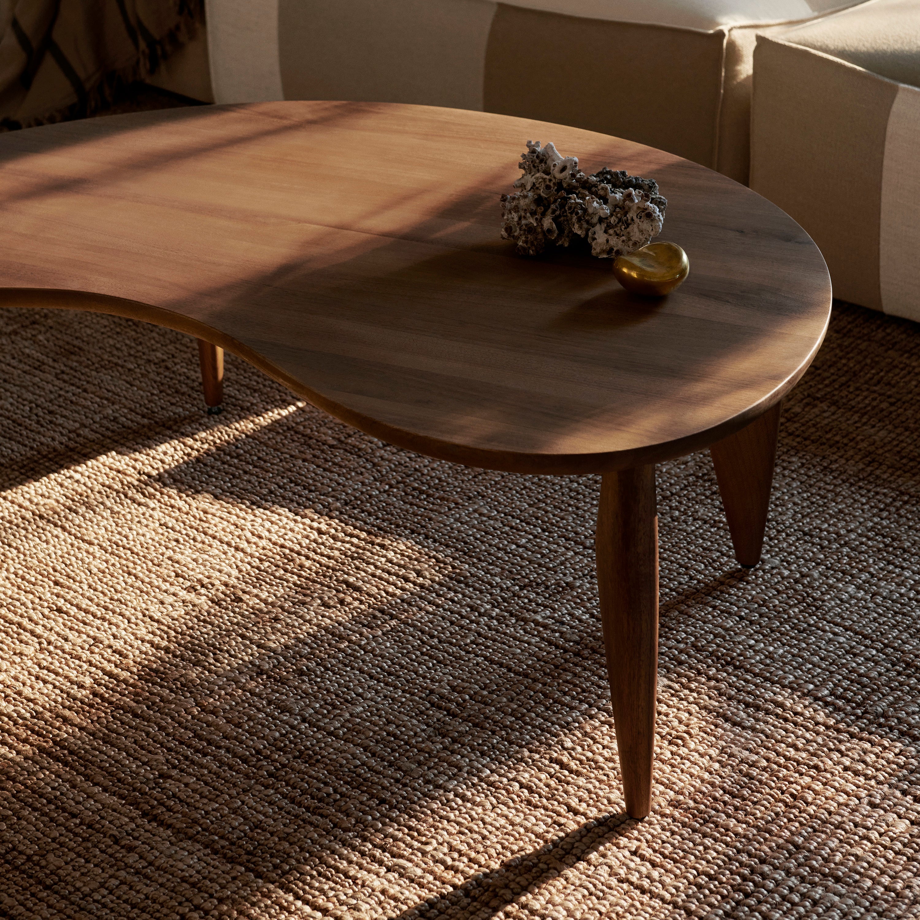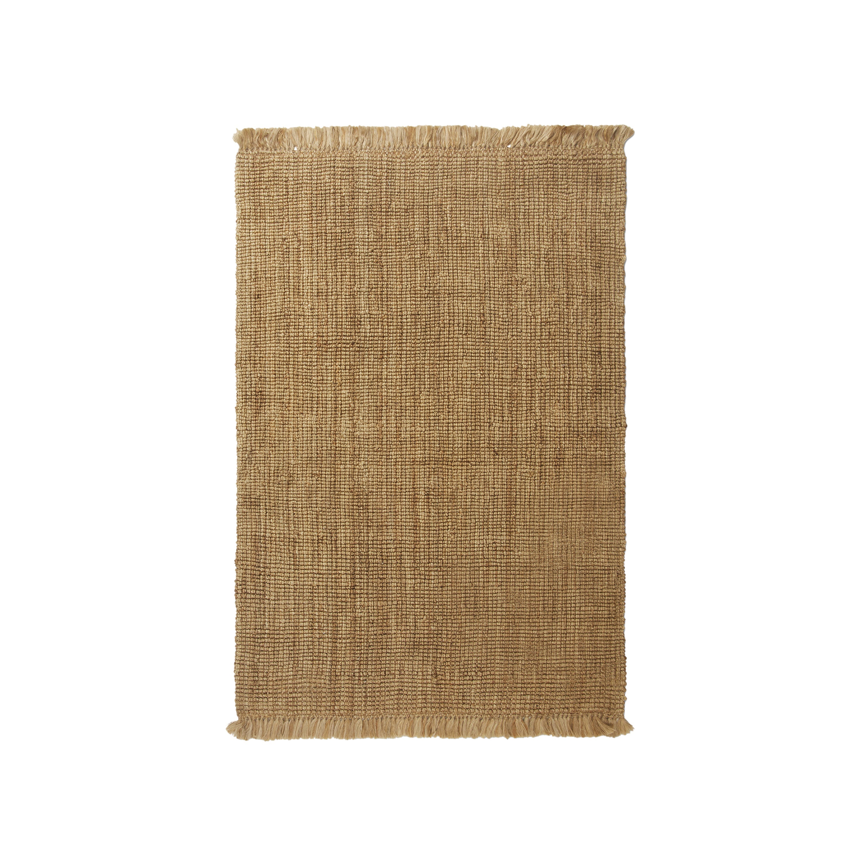 Handwoven entirely from jute, this rug takes inspiration from traditional floor coverings used to soften Mediterranean stone interiors. The soft, full fringing enhances its relaxed character. Suitable for living rooms, bedrooms, or any area that benefits from a grounded, inviting feel, it comes in a natural finish and is available in three sizes.