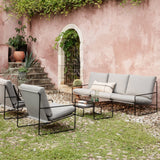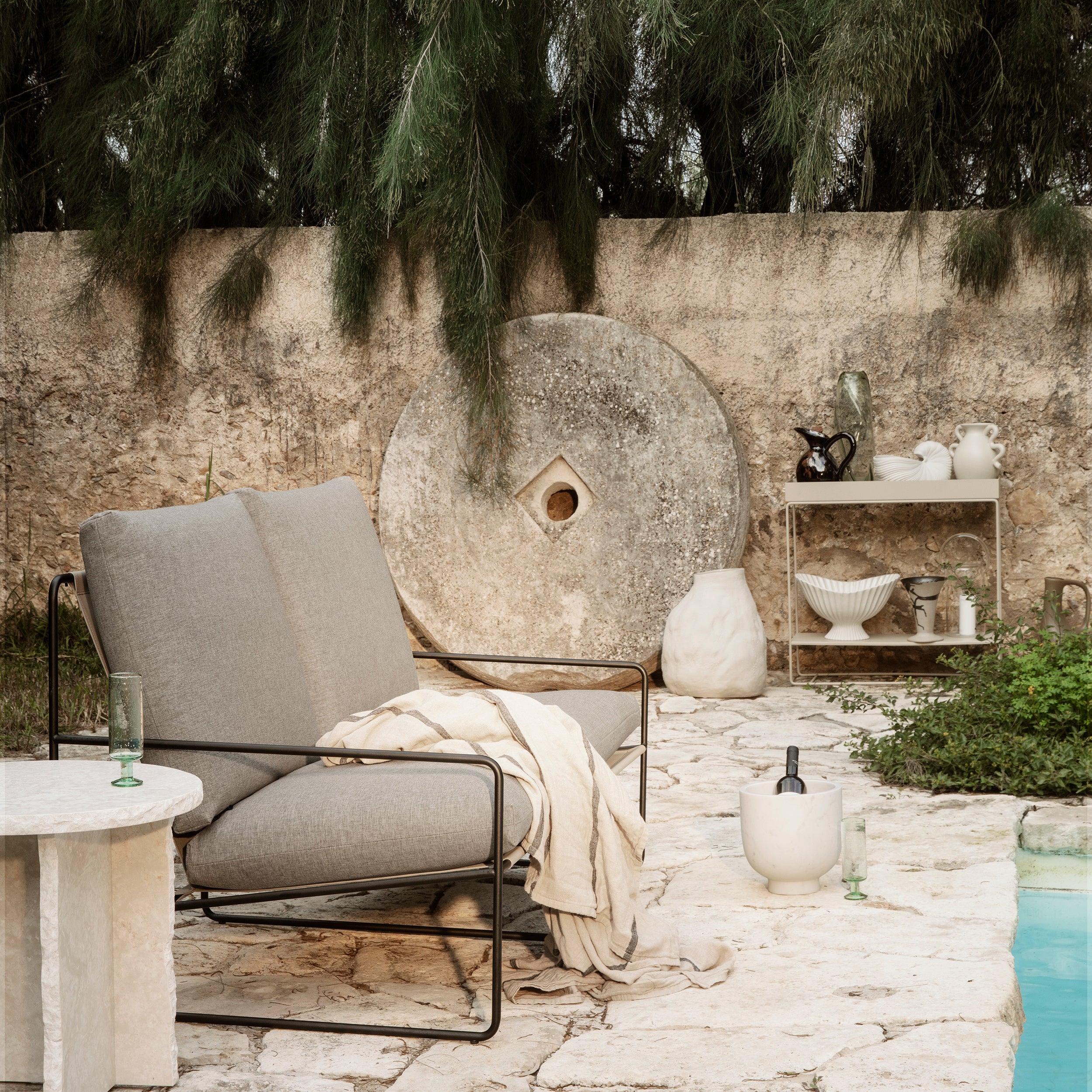 Ferm Living’s elevated approach to outdoor living brings a stylish air to its Desert seating range. For creating a amiable grouping for patio or terrace, the collection offers single seater, 2-seater and 3-seater options — complete with cozy sofa cushions covered in partially recycled material. Prior to the final powder-coated finish, the steel frame is electroplated to make it impervious to rust; inner cushion is water-resistant while the seat covers are water- and UV-resistant as well as stain-repellant.