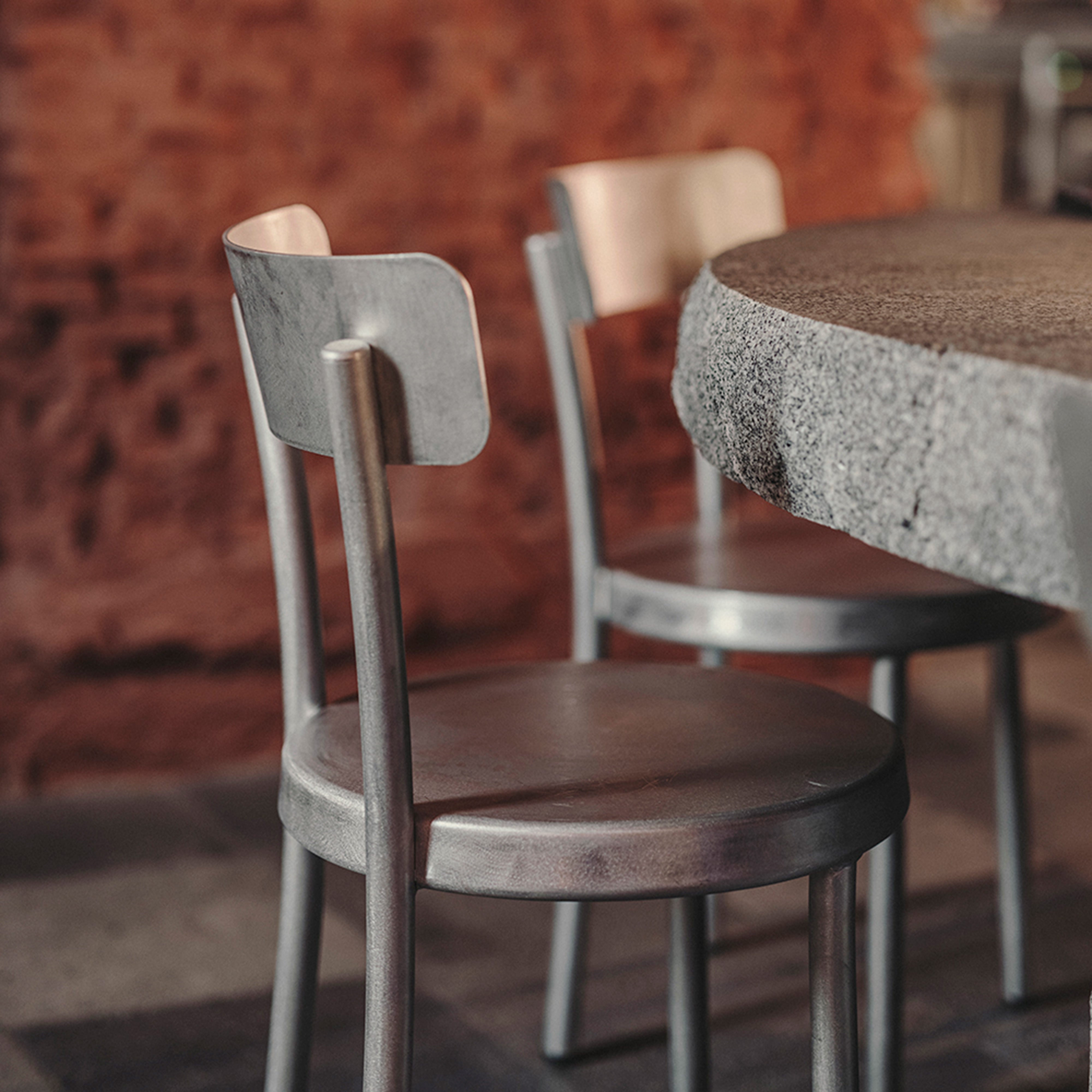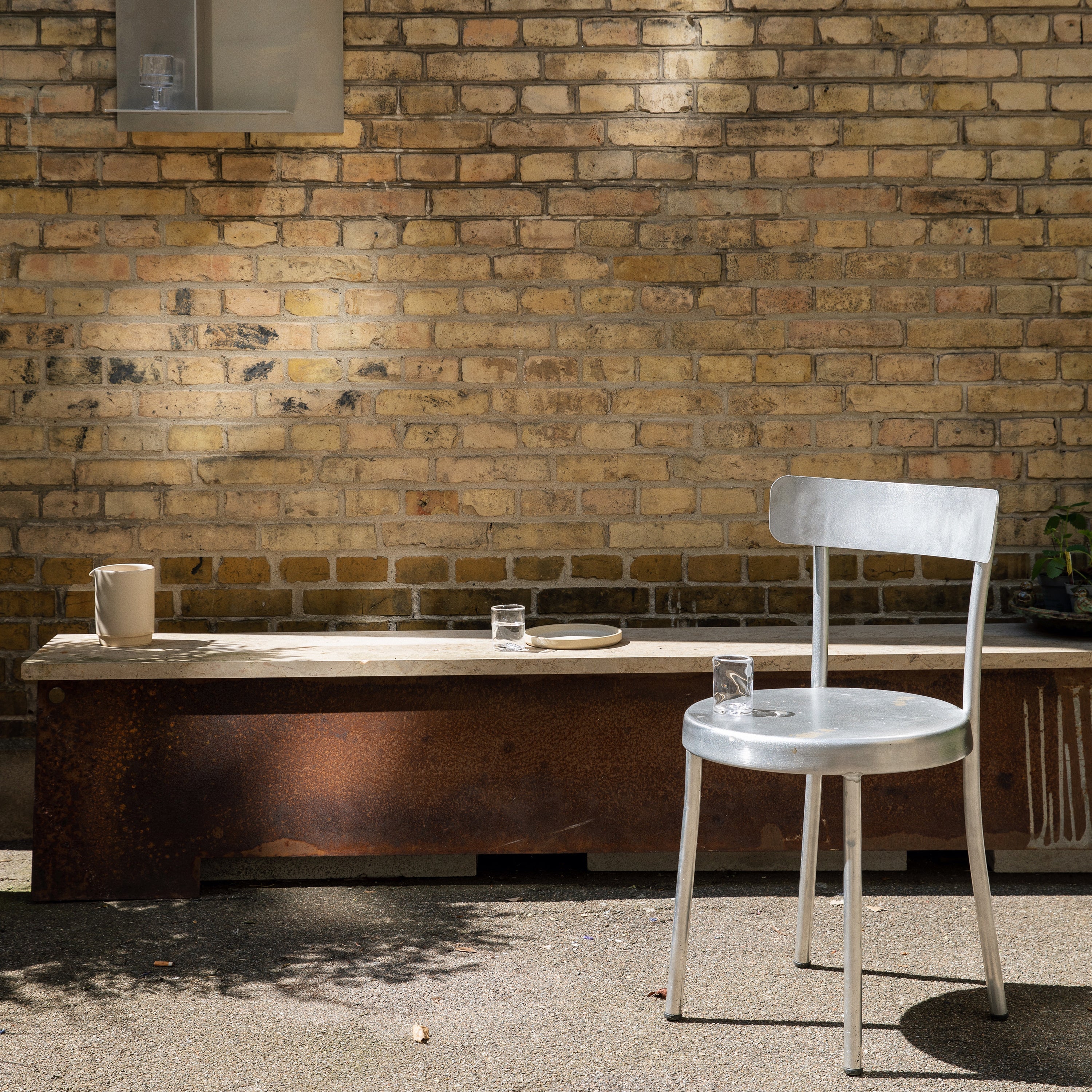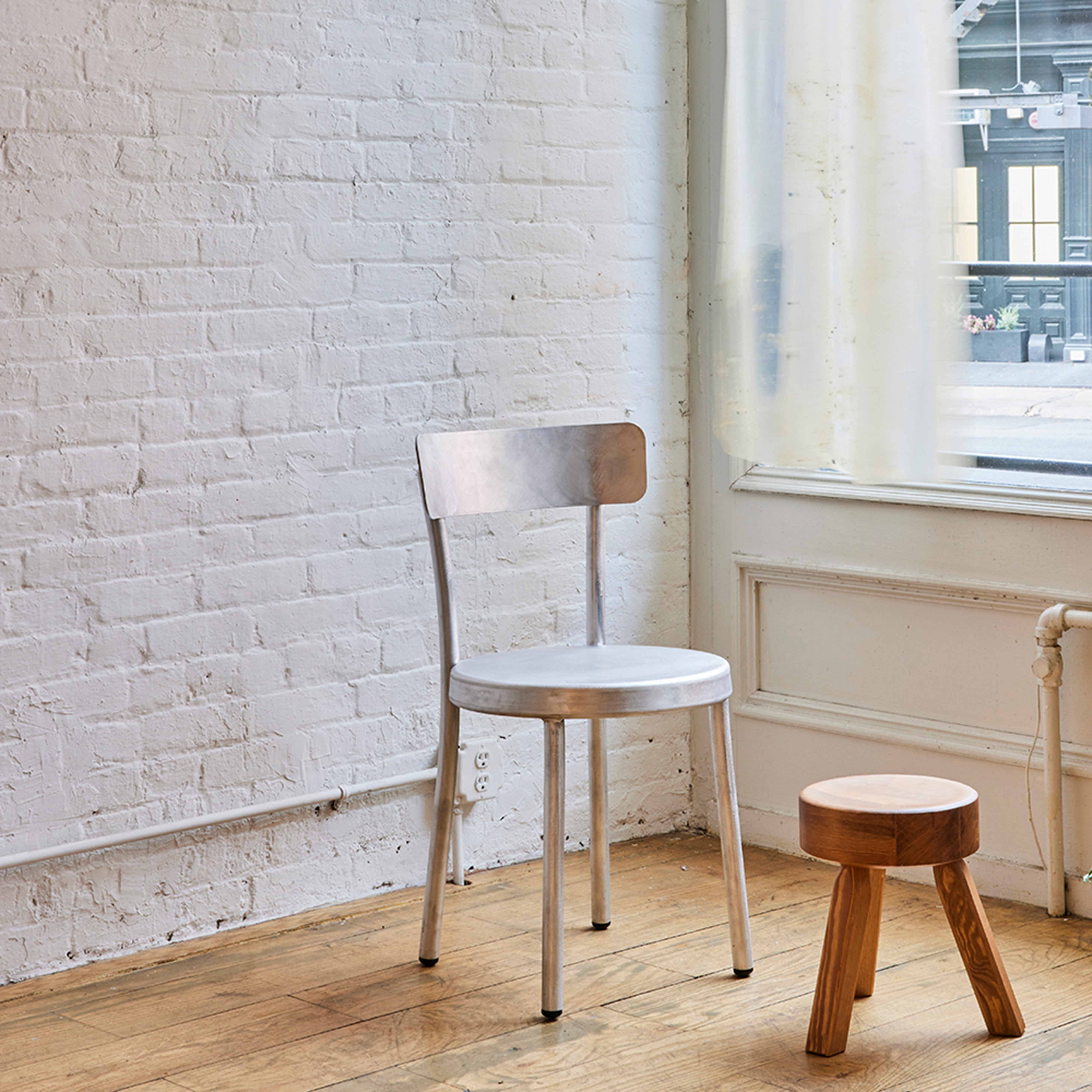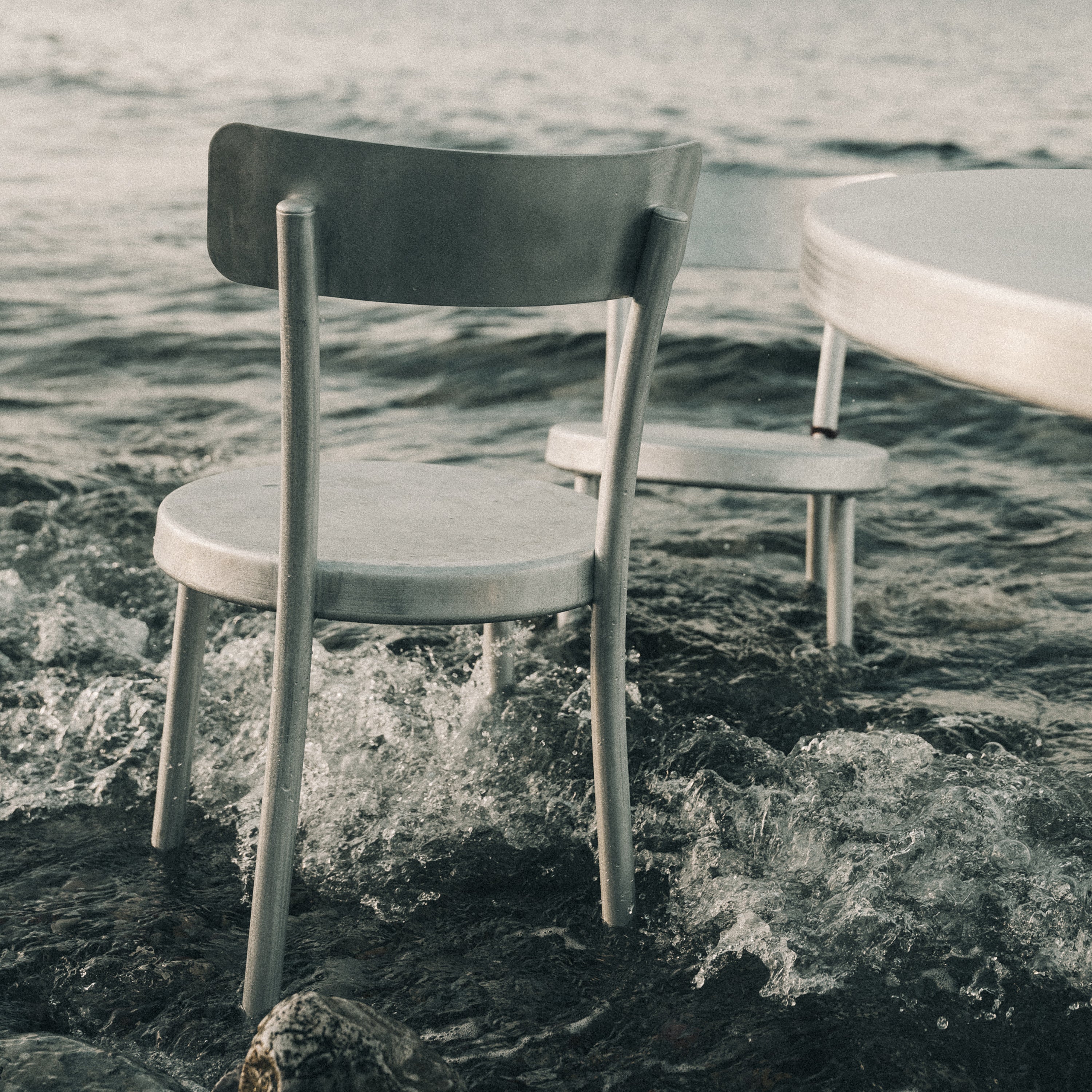 Inspired by the local taverns around Portugal called “tascas,” Pedro Sottomayor conceives an indoor-outdoor chair in natural raw aluminum. With a distinctive brushed finish done by hand, Tasca offers versatile minimalist seating that also embodies the qualities of traditional craftsmanship. A lightweight and durable choice with comfortable rounded proportions for extended sitting, its untreated surface will develop a mellow patina over time if left outdoors.