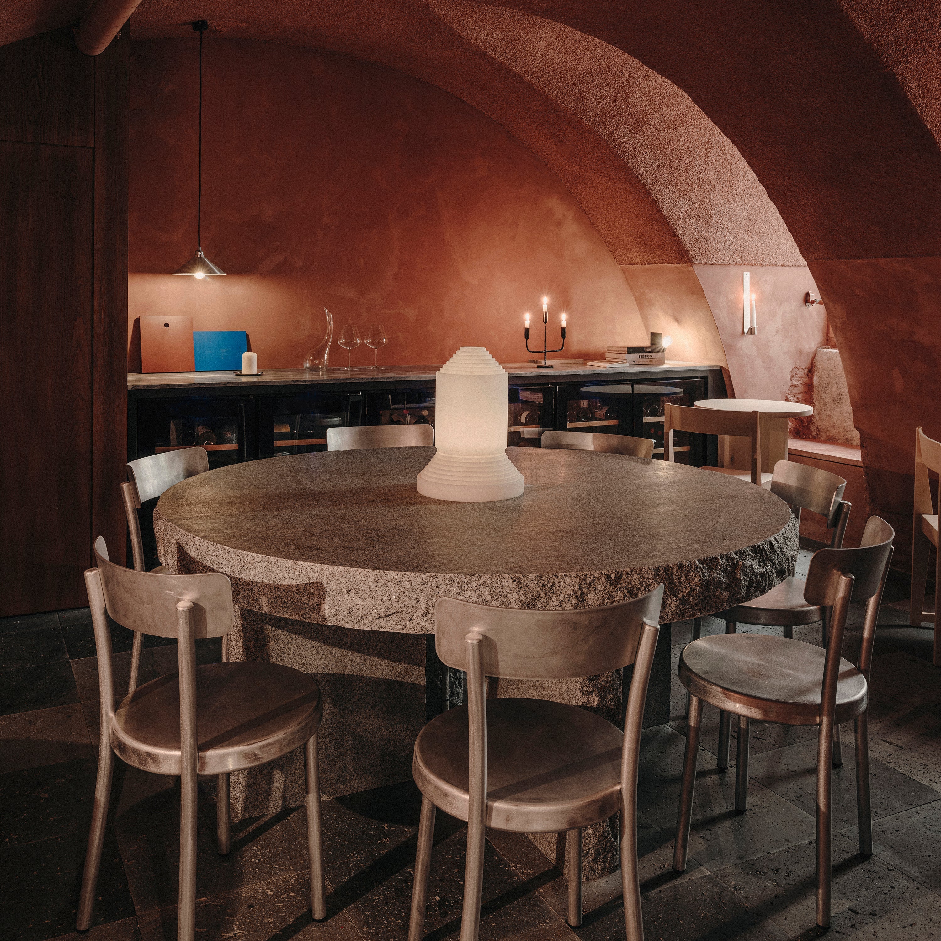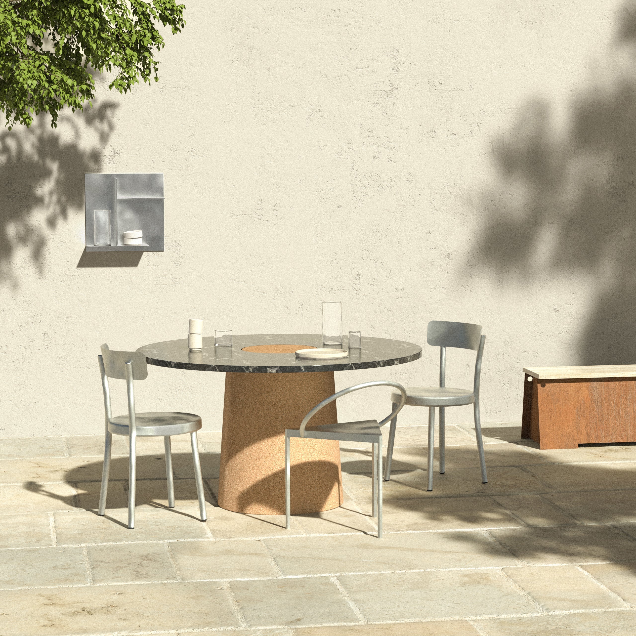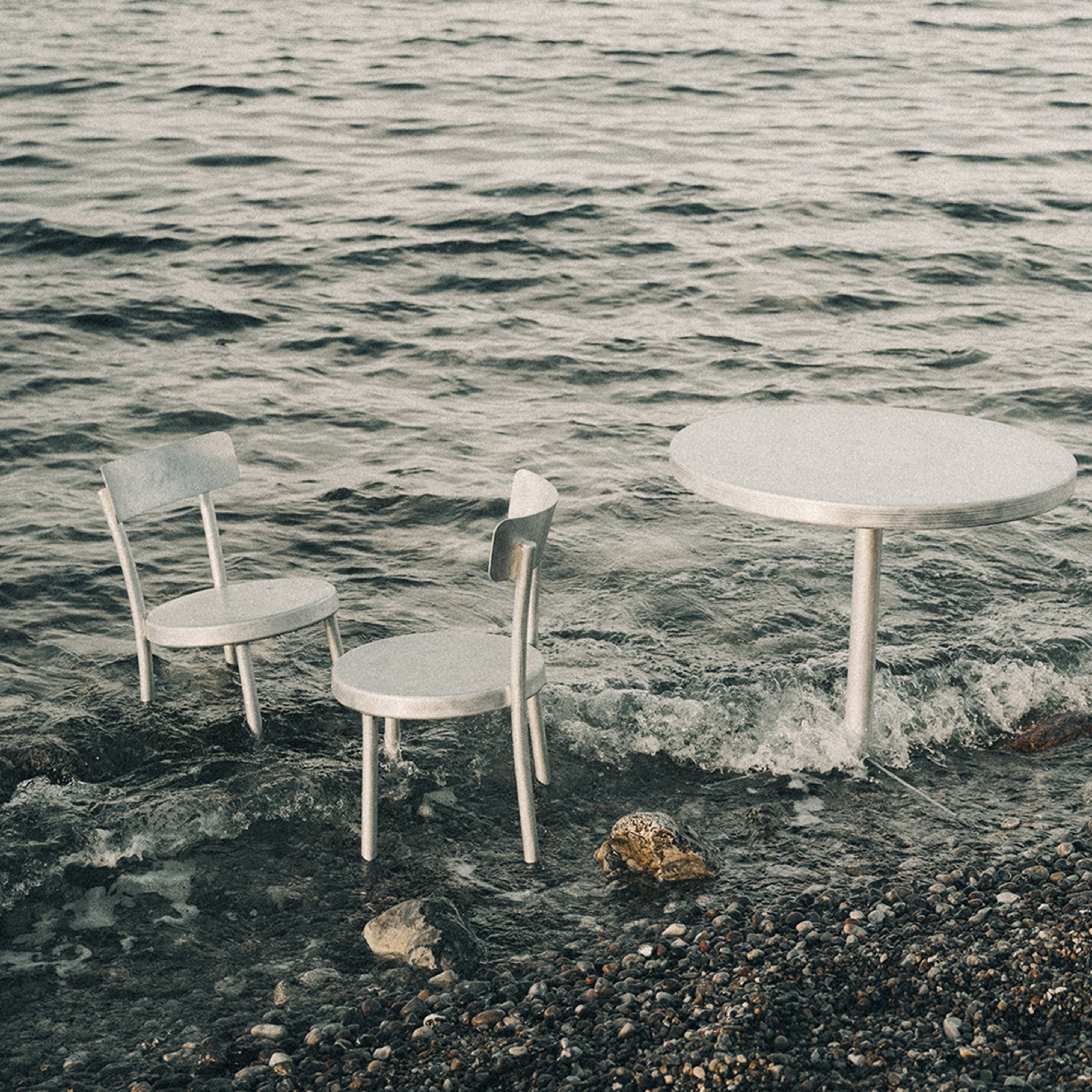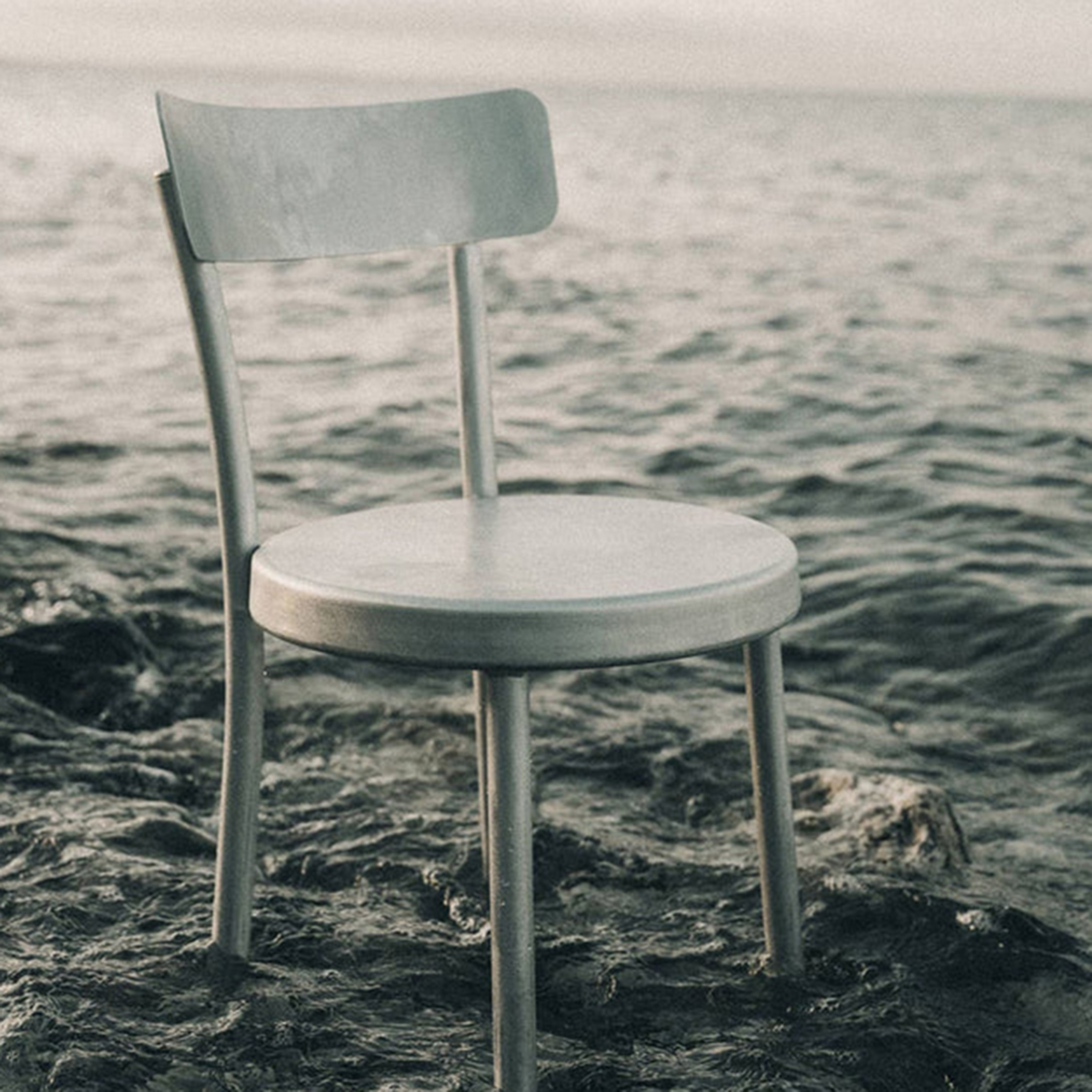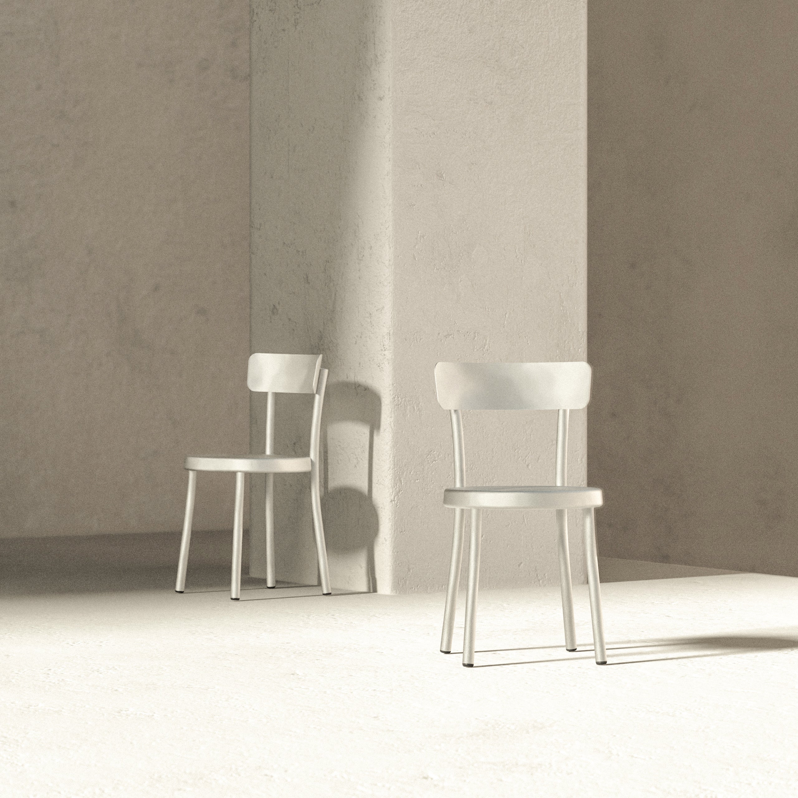 Inspired by the local taverns around Portugal called “tascas,” Pedro Sottomayor conceives an indoor-outdoor chair in natural raw aluminum. With a distinctive brushed finish done by hand, Tasca offers versatile minimalist seating that also embodies the qualities of traditional craftsmanship. A lightweight and durable choice with comfortable rounded proportions for extended sitting, its untreated surface will develop a mellow patina over time if left outdoors.