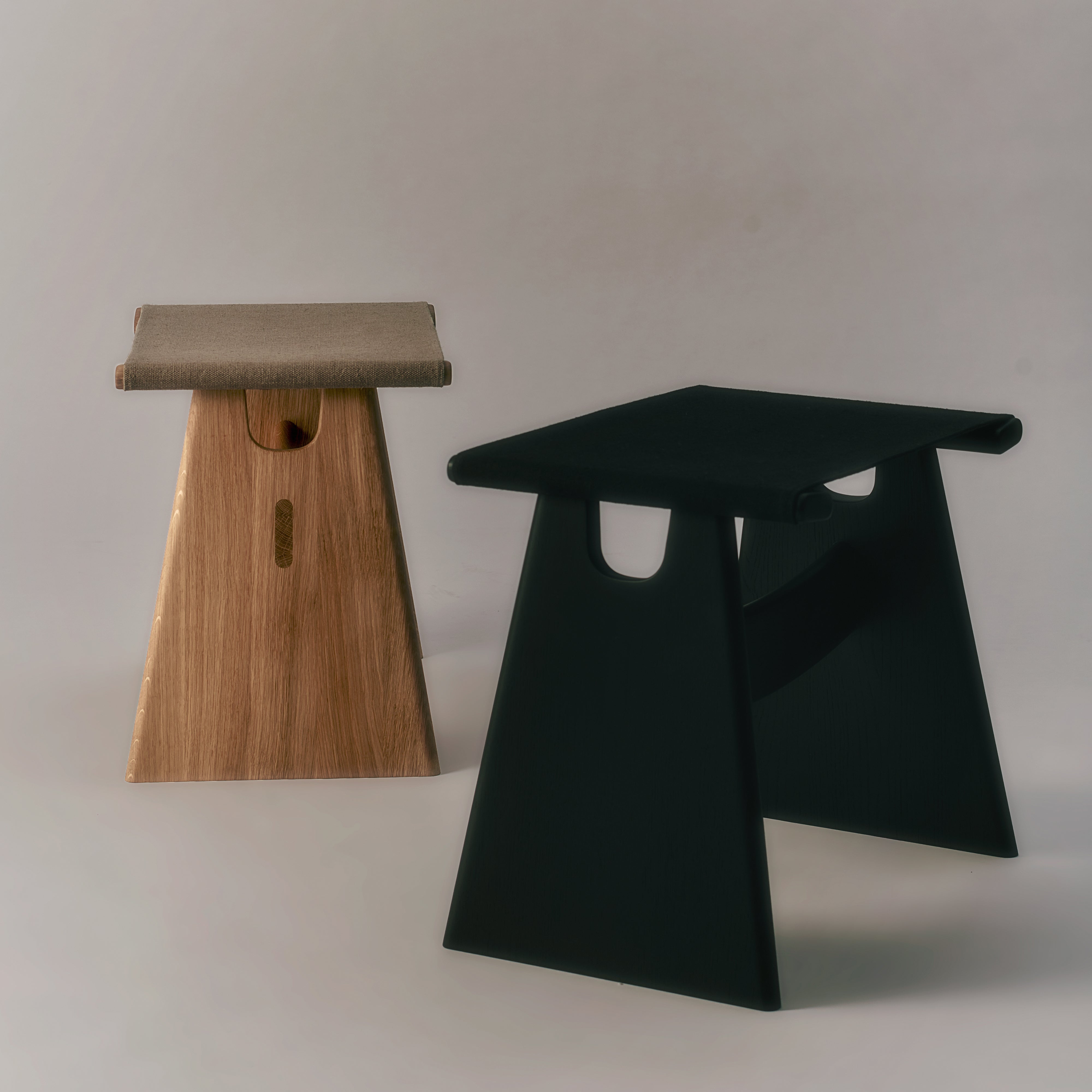 A gently curved canvas seat suspended over an H-shaped solid oak frame defines the Seto Stool’s distinctive silhouette. Designed by Keiji Takeuchi, the stool draws inspiration from Japan’s Seto Ōhashi bridge, with its structural form echoing the bridge’s graceful profile. Takeuchi, a Japanese-born, Milan-based designer, integrates Scandinavian and Japanese craft traditions, reflecting his global design perspective. The stool is available in two variants: light oiled oak with natural canvas and black lacquered oak with black canvas. Each piece is crafted from FSC-certified wood and features a fixed canvas seat secured with a leather cord.