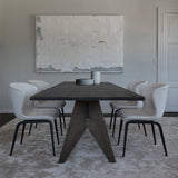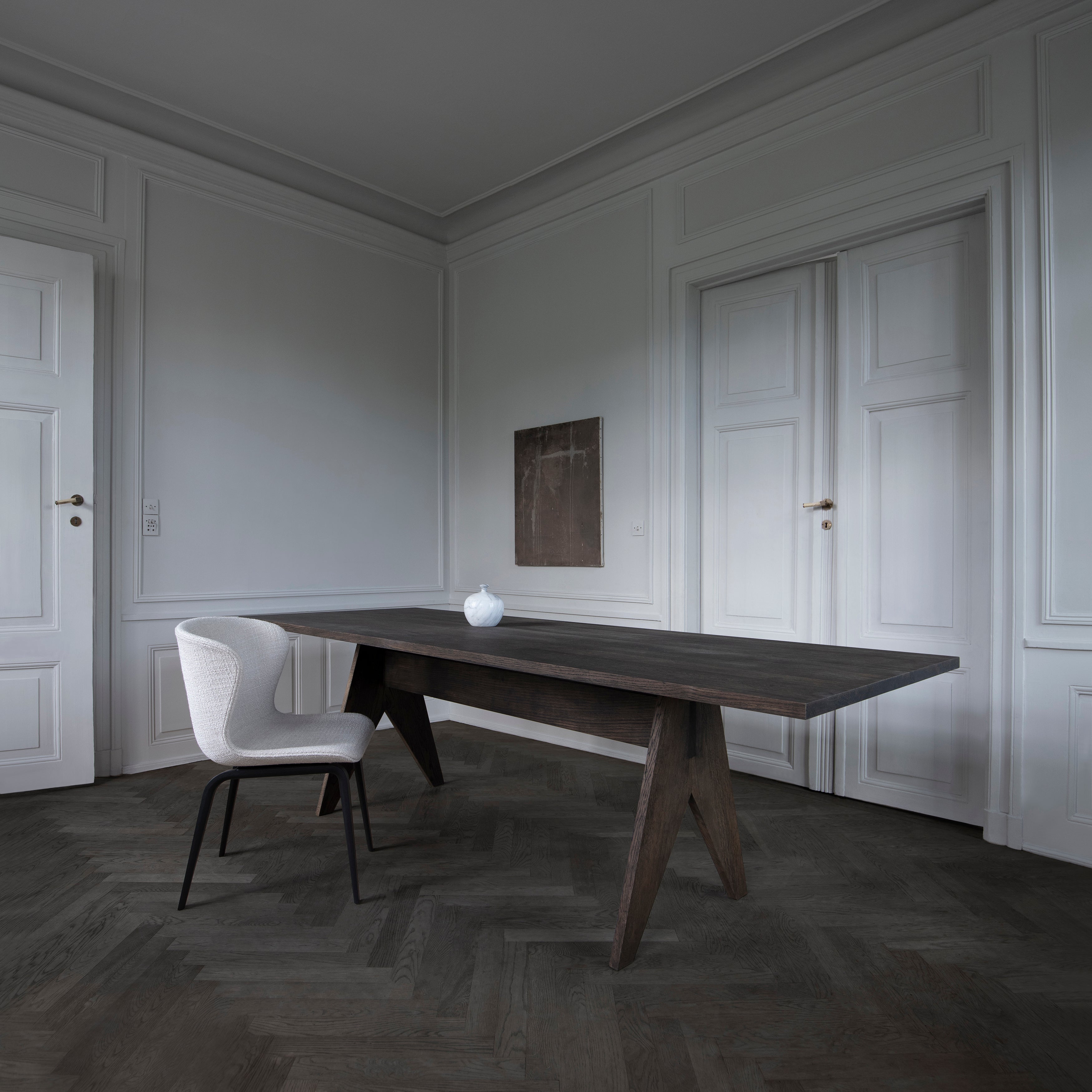 True to Scandinavian tradition, this version of Pipe features the sculpted, fully-upholstered seat resting on an elegant, timeless base of wood in a vision of fine craftsmanship. The outside of the legs have a distinct, sharp edge while the inside is rounded, emphasizing an organic aesthetic that allows for a sturdy design without additional reinforcement.