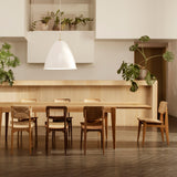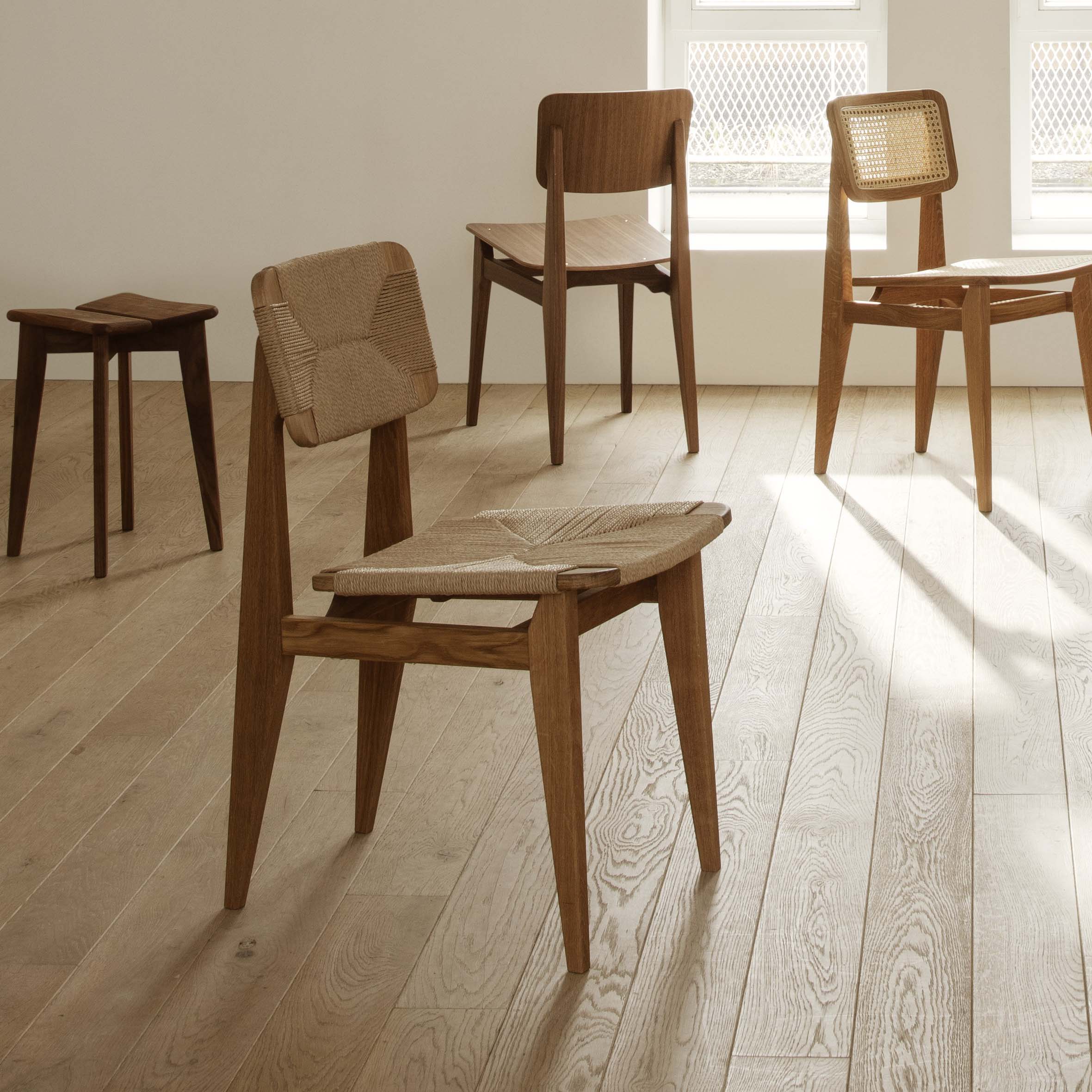 A hand-woven seat and backrest complement the midcentury style of this version of Marcel Gascoin’s iconic 1947 C-Chair. As relevant today as when originally designed, it became the familiar presence in post-war French households. Now faithfully reissued by Gubi, the versatile dining chair endures as a model of unerring craftsmanship and refined utilitarian aesthetics.