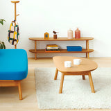 The Cobrina Coffee Table is a compact and lightweight piece designed to maximize space in smaller interiors. Made from solid white oak, it features a unique, asymmetrical top that adds a distinctive touch to any room. The low height of the table helps create an open and spacious feel in your living area.