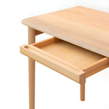 The Rodan Desk Sangyo features a compact design that fits easily into living rooms, bedrooms, or other spaces. Available in beech, the desk includes practical features like a two-socket power outlet, a round cord hole on the tabletop, and a rear space for cable management, helping to maintain an organized workspace.