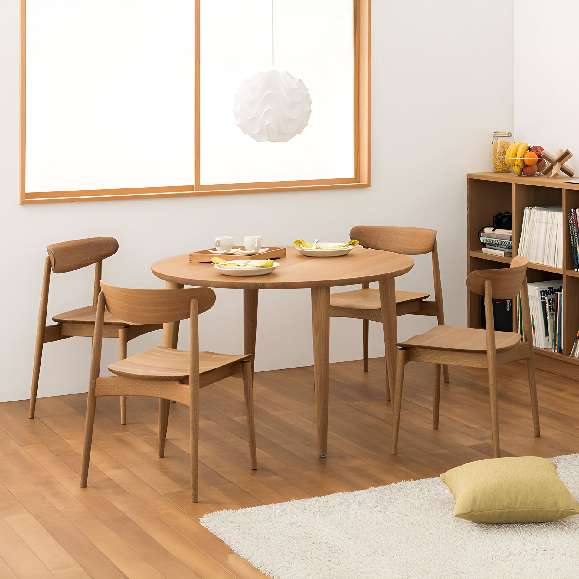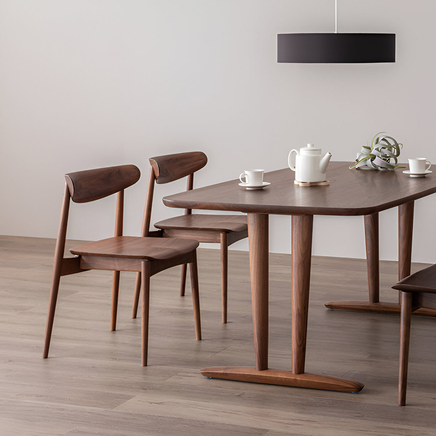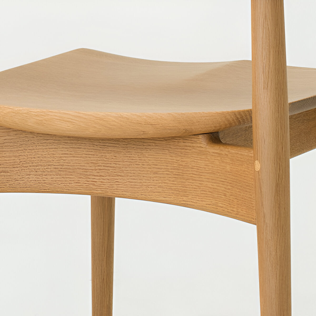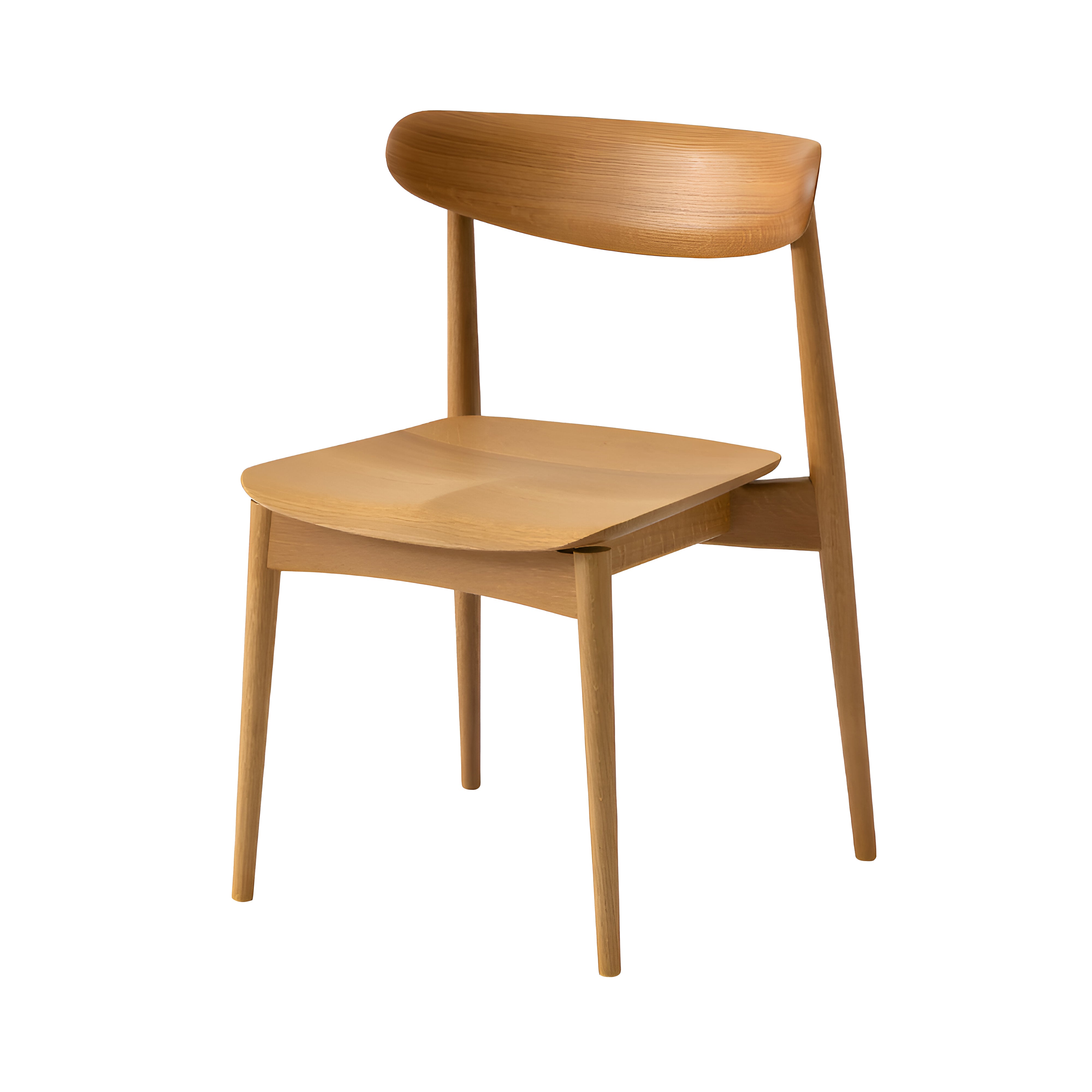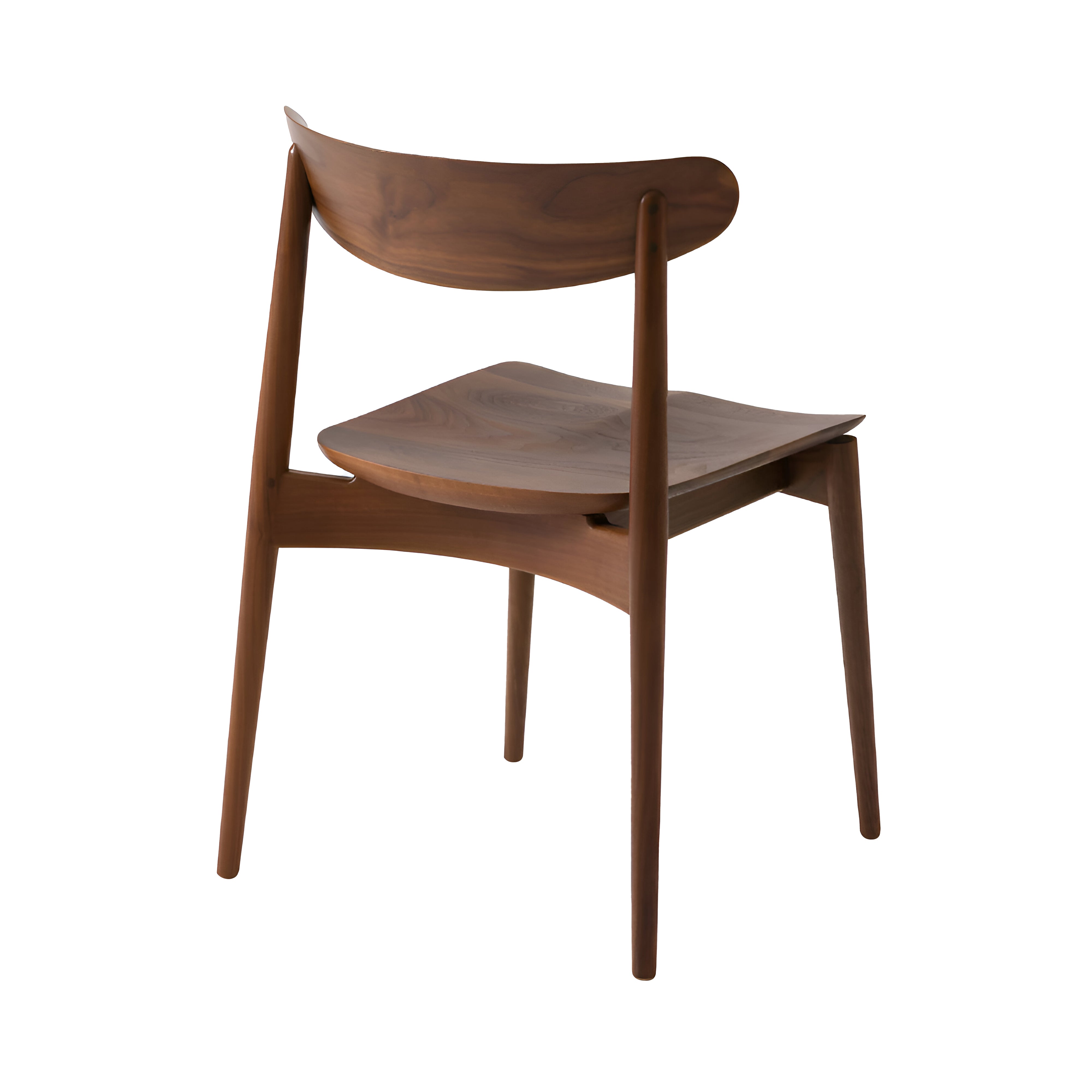 The Seoto Side Chair's backrest seamlessly flows into the rear legs, creating a smooth, unified design. Available in oak or walnut, each wood type is finished with a polyurethane resin coating for durability. The Seoto series is known for its focus on quality and comfort.