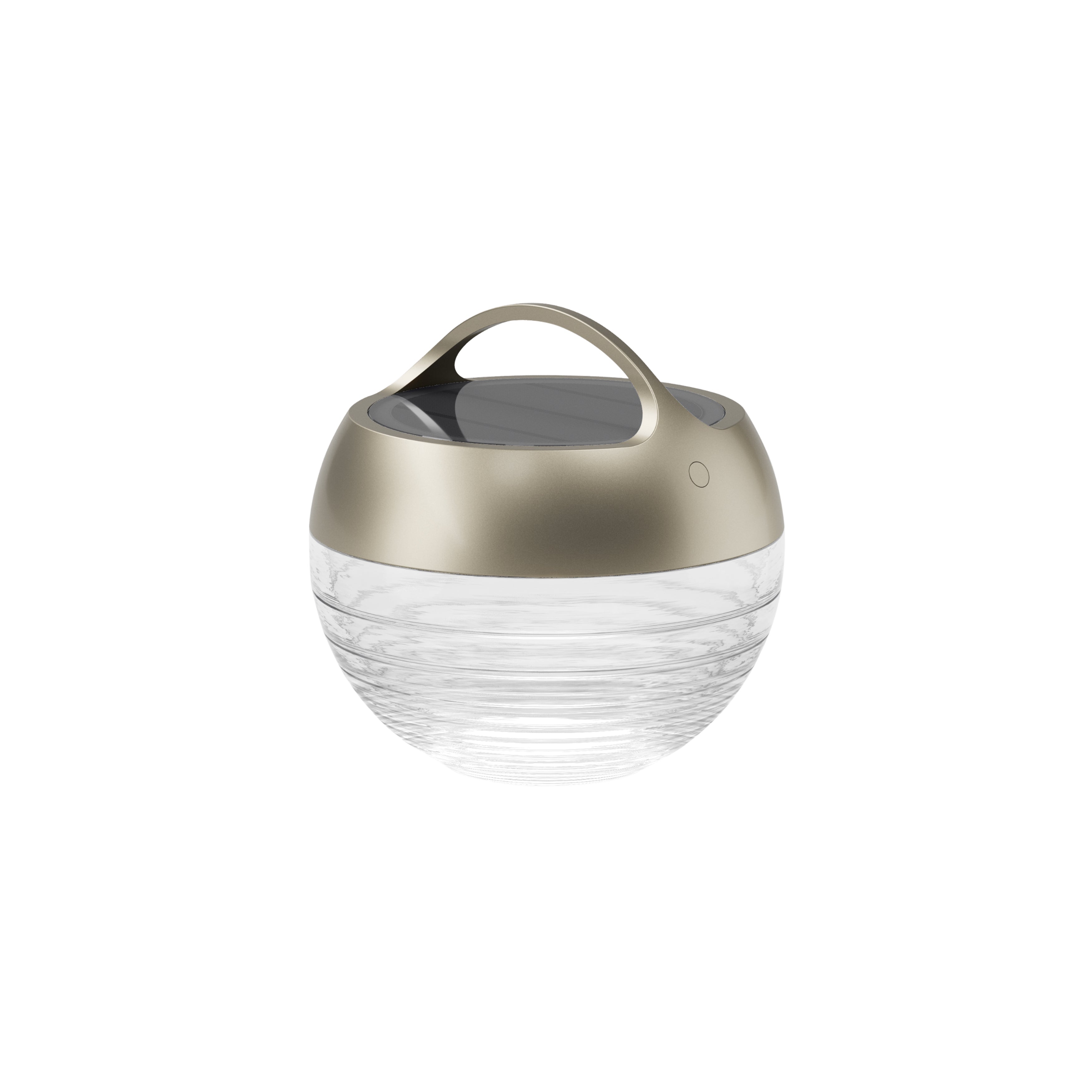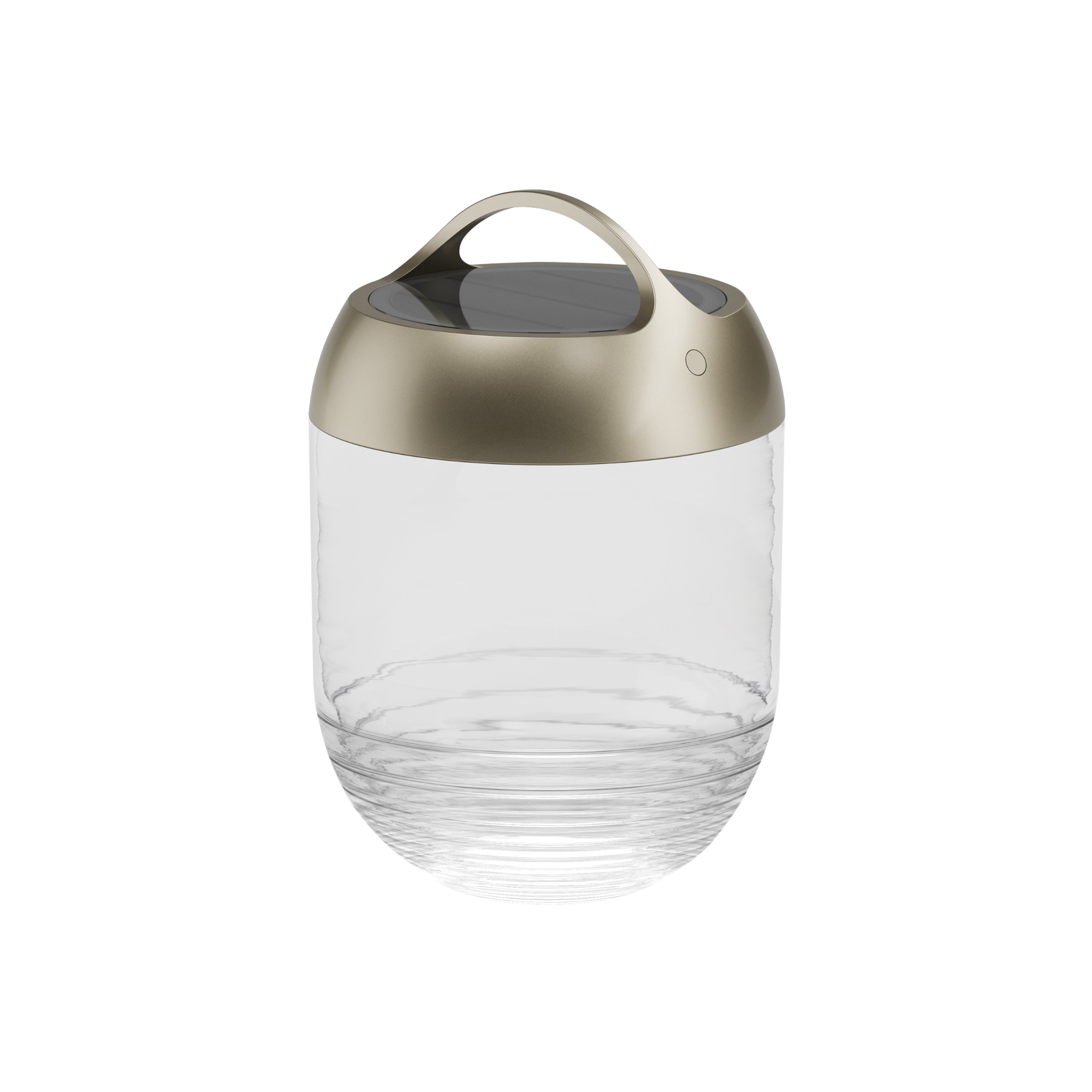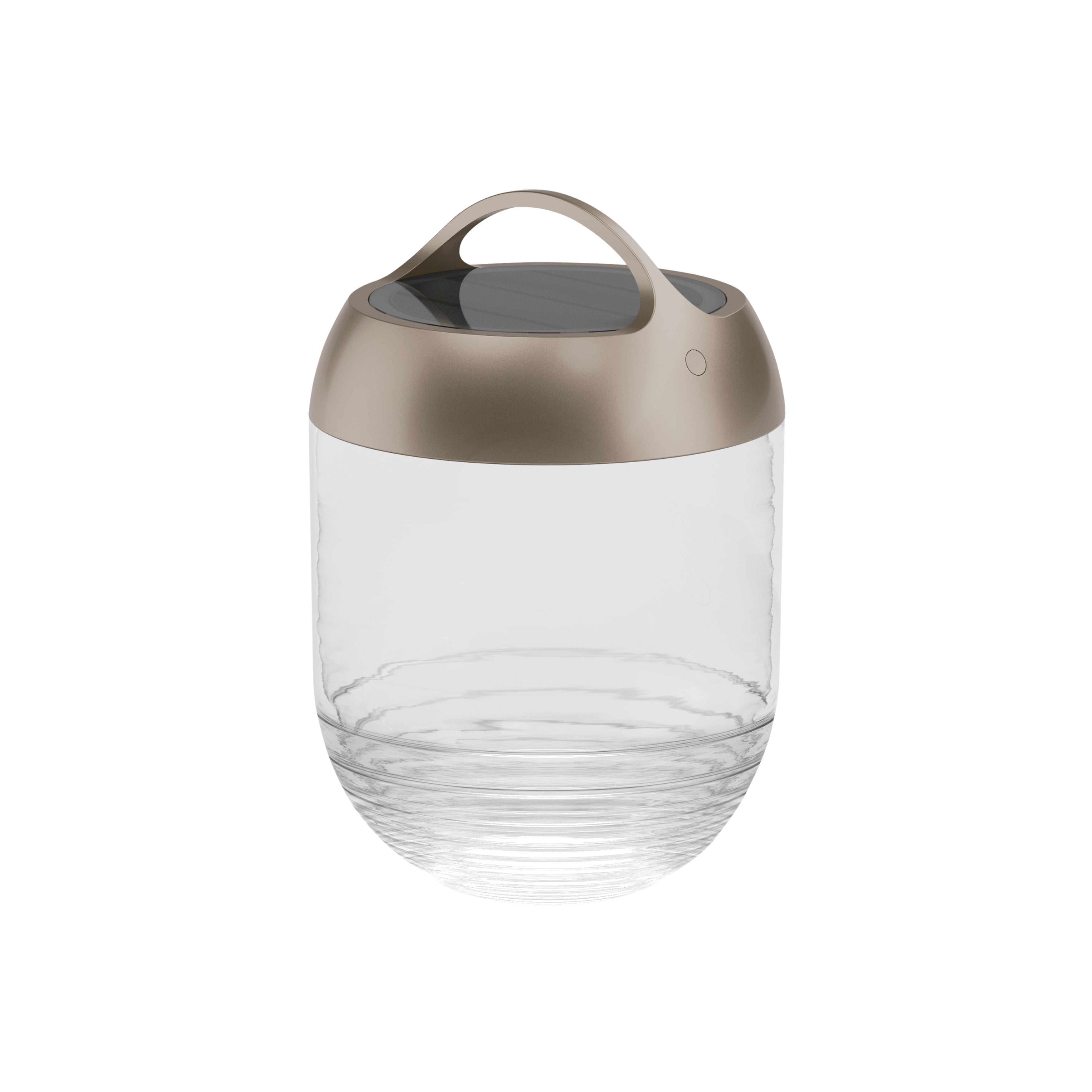 The Aqu Portable Lamp is a durable outdoor lighting solution designed for portability and flexibility. Its rechargeable NiMH battery can be charged either via a USB-C cable or through an integrated solar panel, providing up to 24 hours of illumination depending on the selected brightness level. With three dimming settings and a light temperature of 2700K, the lamp is perfect for creating a warm ambiance. Built from powder-coated aluminum and mouth-blown crystal glass, it holds an IP65 rating, ensuring resistance to water and dust, suitable for outdoor use even in harsh conditions. Available in 2 sizes and 4 finshes.