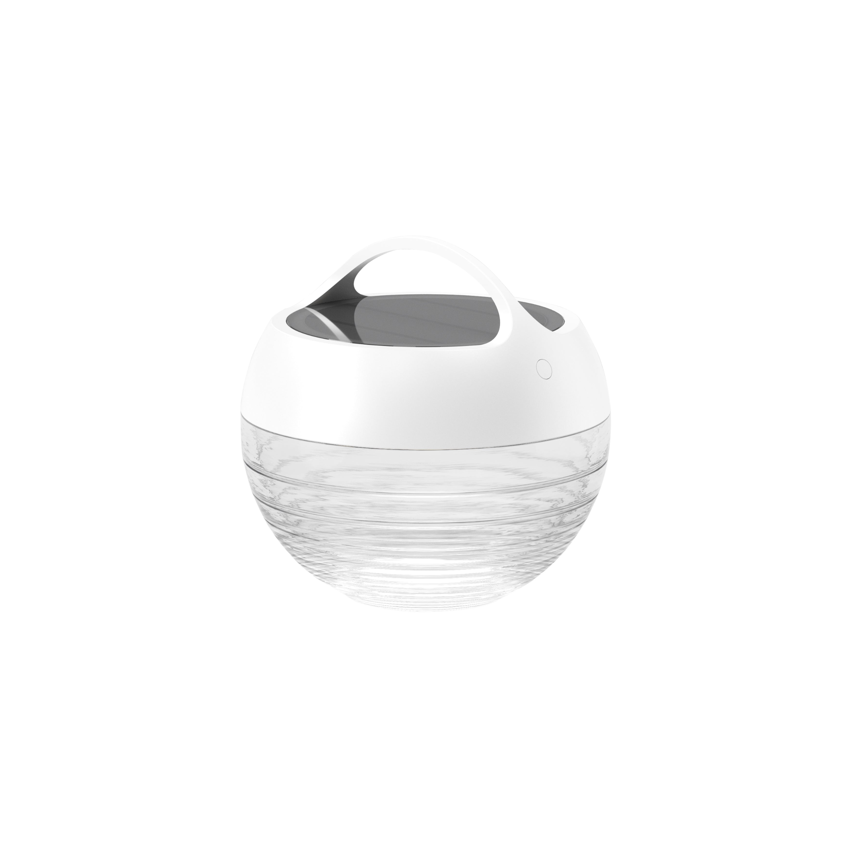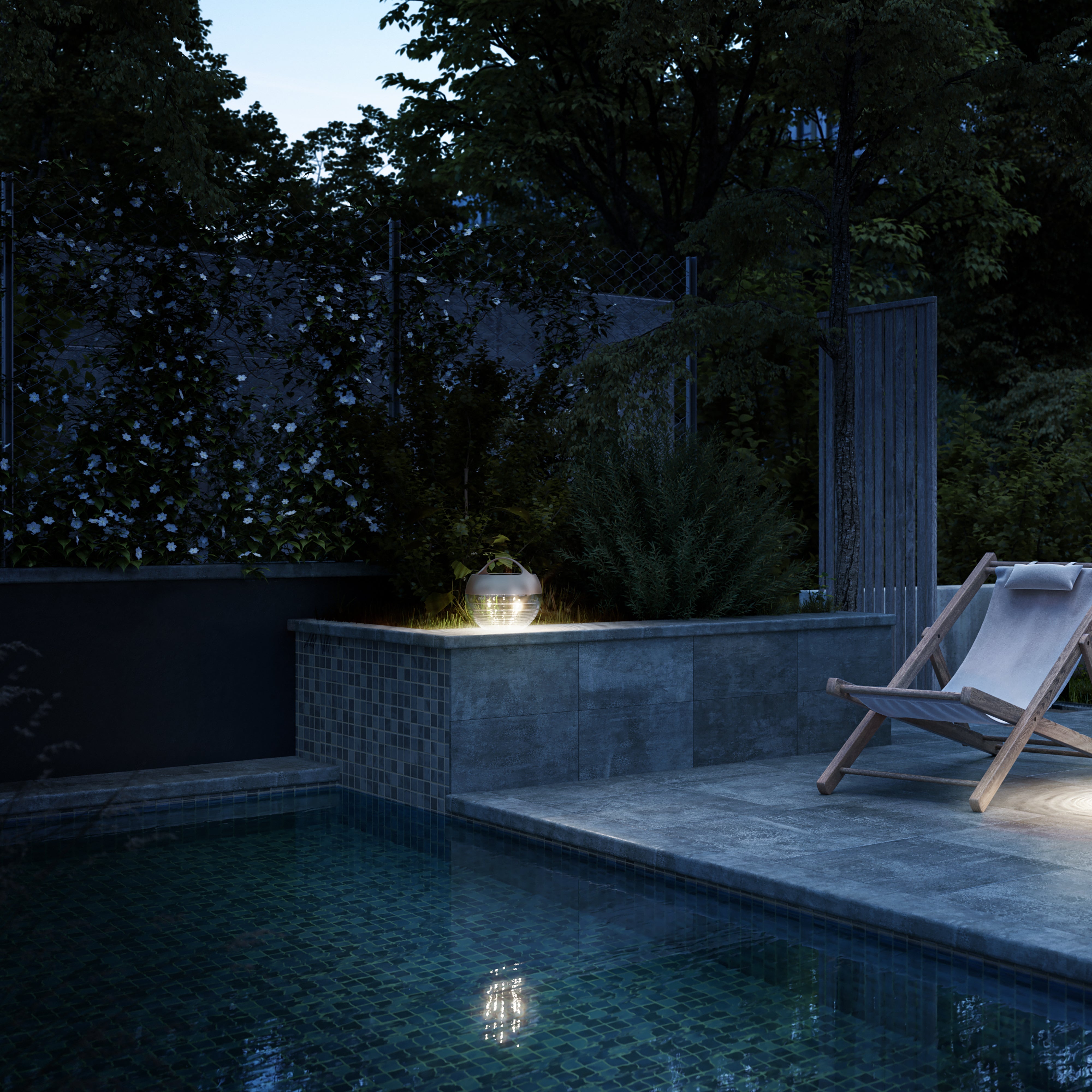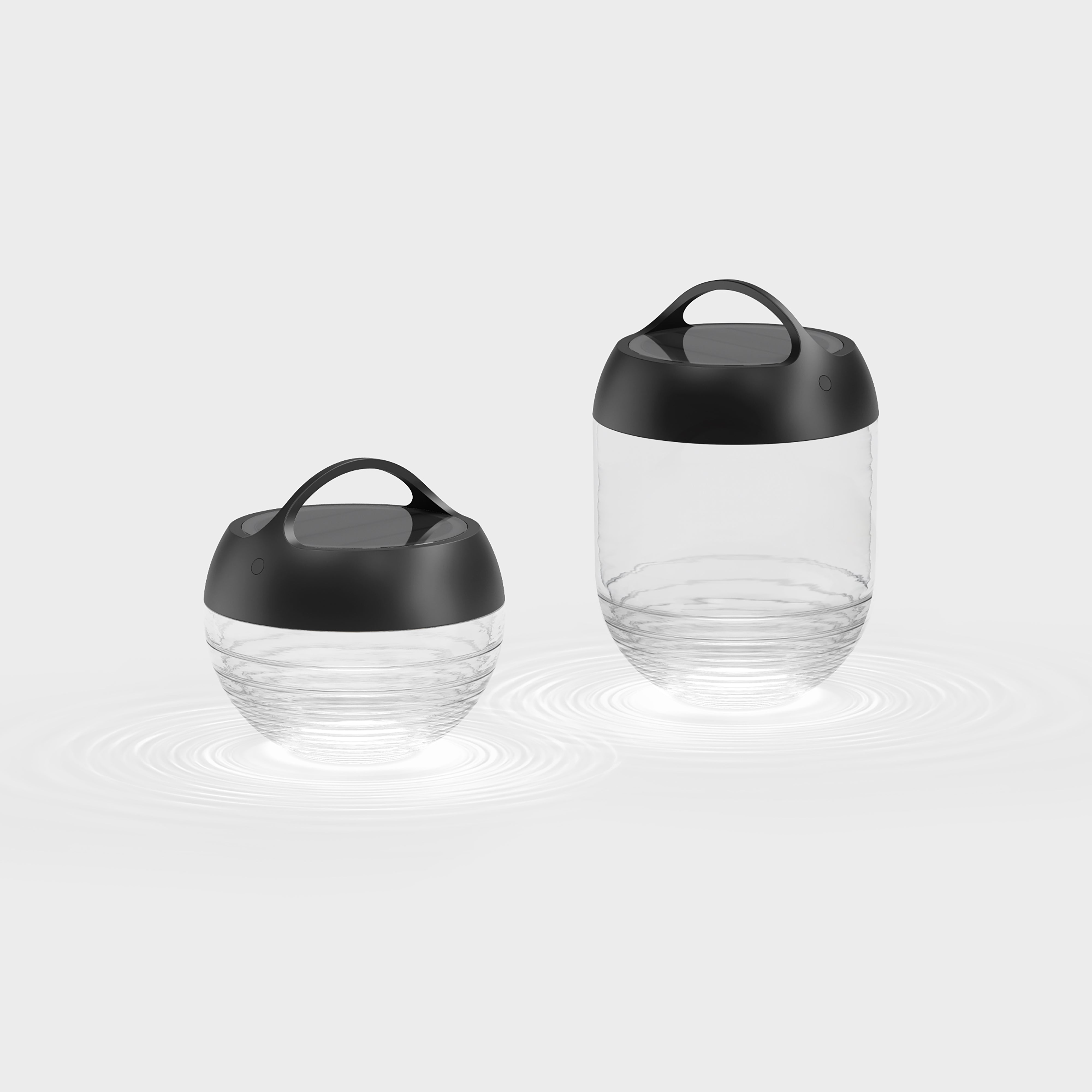 The Aqu Portable Lamp is a durable outdoor lighting solution designed for portability and flexibility. Its rechargeable NiMH battery can be charged either via a USB-C cable or through an integrated solar panel, providing up to 24 hours of illumination depending on the selected brightness level. With three dimming settings and a light temperature of 2700K, the lamp is perfect for creating a warm ambiance. Built from powder-coated aluminum and mouth-blown crystal glass, it holds an IP65 rating, ensuring resistance to water and dust, suitable for outdoor use even in harsh conditions. Available in 2 sizes and 4 finshes.