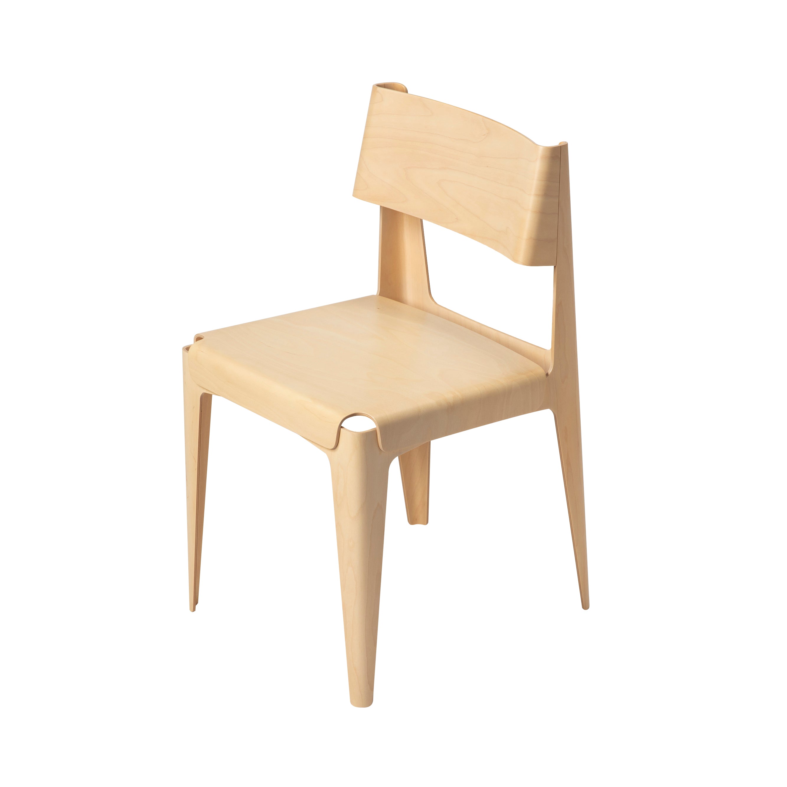 Continuing designers Barber & Osgerby’s exploration of creating a structural form from folded sheet material, Shell Chair delivers not only on strength but on comfort. A companion to Isokon’s sister dining table (also at A+R), the seating is completely fashioned in whisper-thin birch veneer in a choice of a natural or blue-stained lacquer finish.