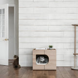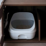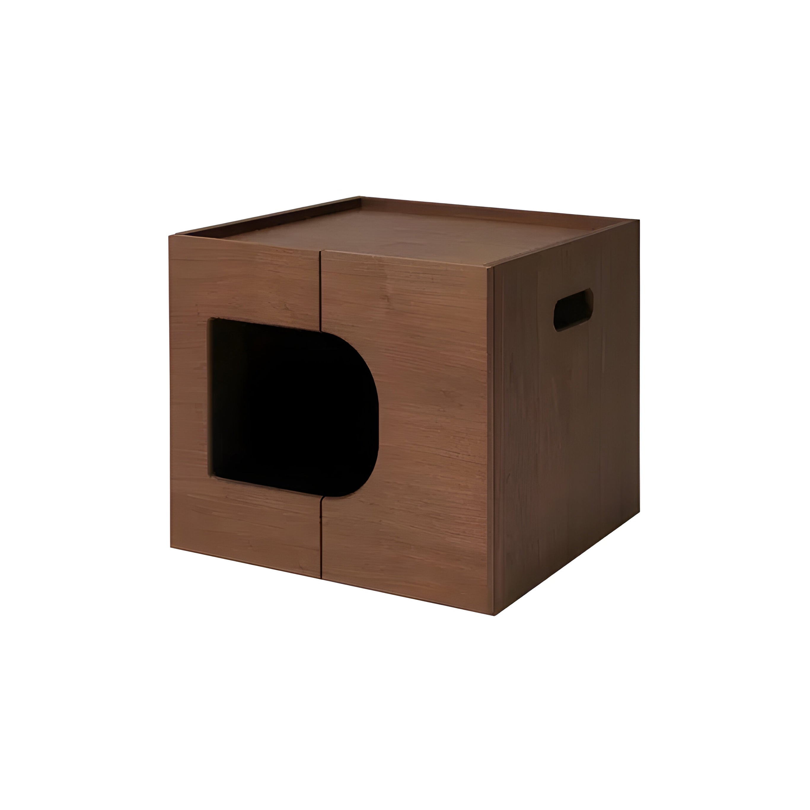 Crafted with precision in Japan, the Karimoku Cat Box offers an elegant solution for discreetly housing a cat's litter area. Made from premium oak or walnut wood, it ensures long-lasting durability and stability. The spacious interior comfortably accommodates one cat, while a separate compartment provides convenient storage for cleaning tools.