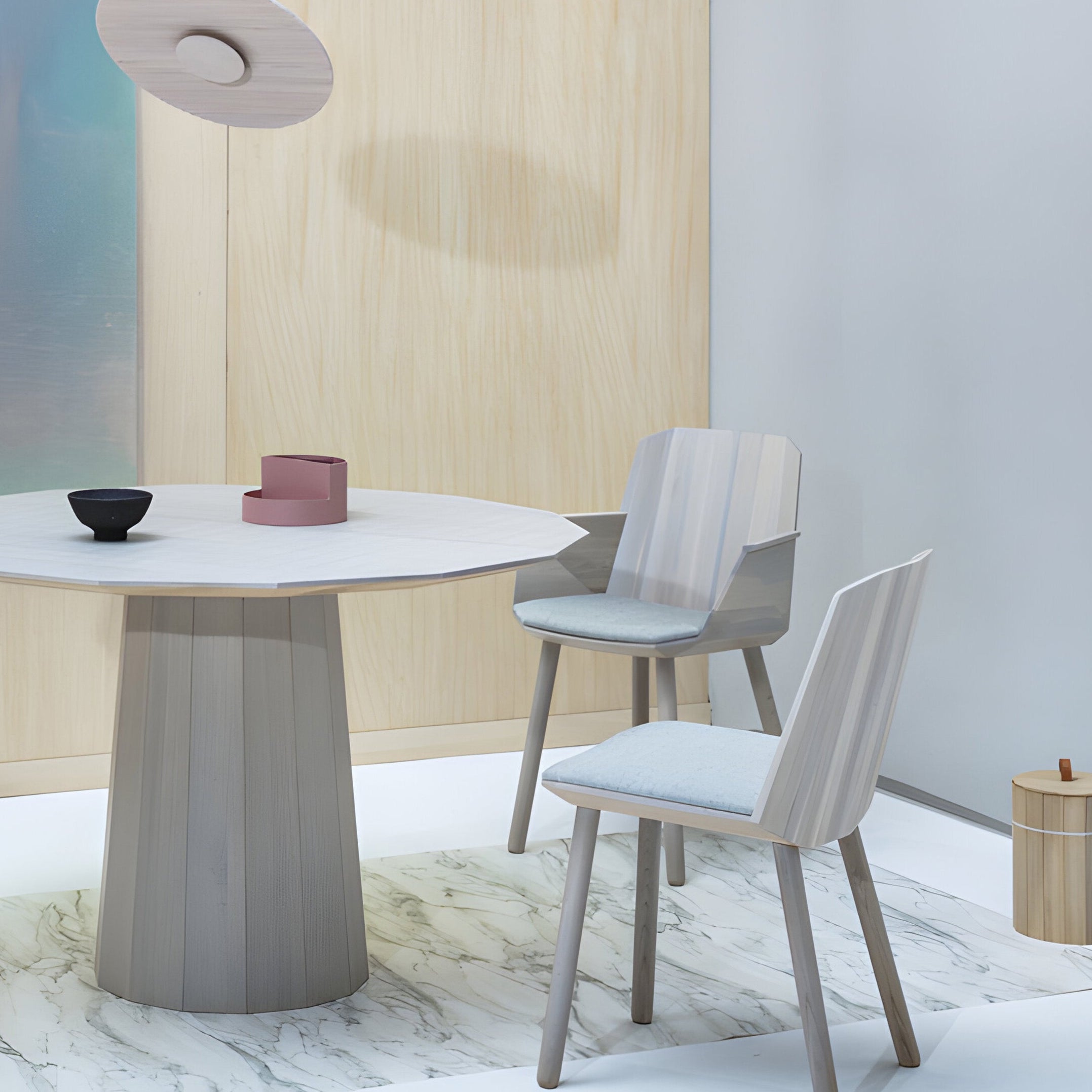 Designers Scholten & Baijings extend their popular Colour collection for Karimoku New Standard with a complementary armchair fashioned along the same refined lines. With sustainability in mind, the seating is defined by the use of low-diameter thinning timber, forming the wooden shell seat from small laths or strips of oak via the genius of the Japanese company's expert woodcraft. Adaptable to both residential and contract settings, the chair features a seat cushion clad in a tonal Kvadrat fabric designed by Herzog & de Meuron for the ultimate in comfortable seating.