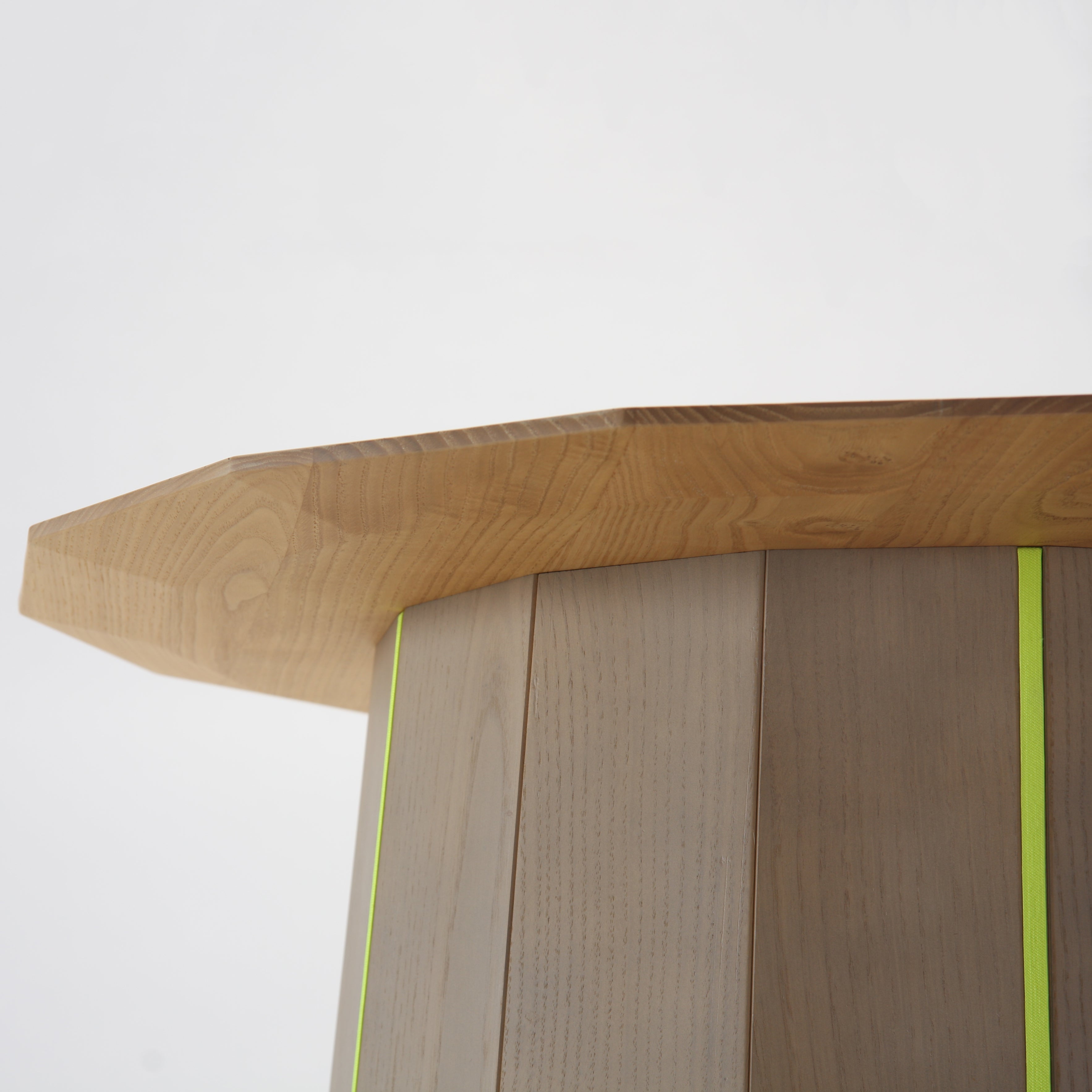 Go with one or cluster them all. However these color tables are used, they manage to serenely transform a space in part due to their muted colors, retrained pattern work and geometric shape. As major fans of Scholten & Baijings, we were over the moon at their collaboration with Japanese heritage brand Karimoku New Standard. The Amsterdam duo are only among the latest to join the KNS. Some 70 years into producing quality furniture with a MidCentury sensibility, Japanese brand Karimoku decided in 2009 to write a new chapter in design by engaging in collaboration with a young crop of international talent and rechristening itself as Karimoku New Standard. Solid Japanese hardwoods such as maple, chestnut and oak are the basis of a line informed by a cultural understanding of craftsmanship coupled with innovative technologies in terms of manufacturing and sustainability. To preserve and revitalize Japanese forests, the hardwood used is from low-diameter trees, long underused. Made of chestnut, the Colour Wood Collection includes these tables and the Colour Wood Bins (oversized canisters also at A+R). Each piece is distinguished by the soft pastels to fluourescent pink that are a trademark colorway of Scholten & Baijings. The lines and patterns are layered on these pieces for a modern take on traditional Japanese shapes and techniques.
